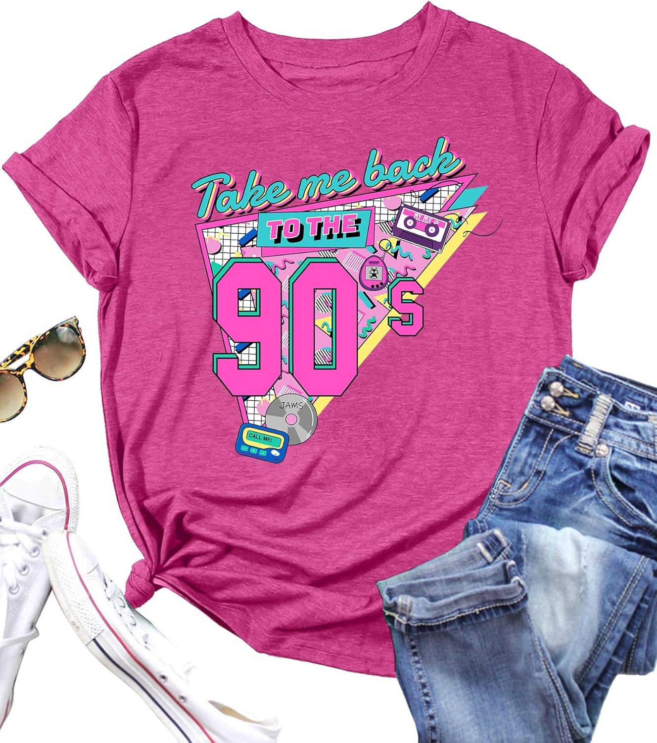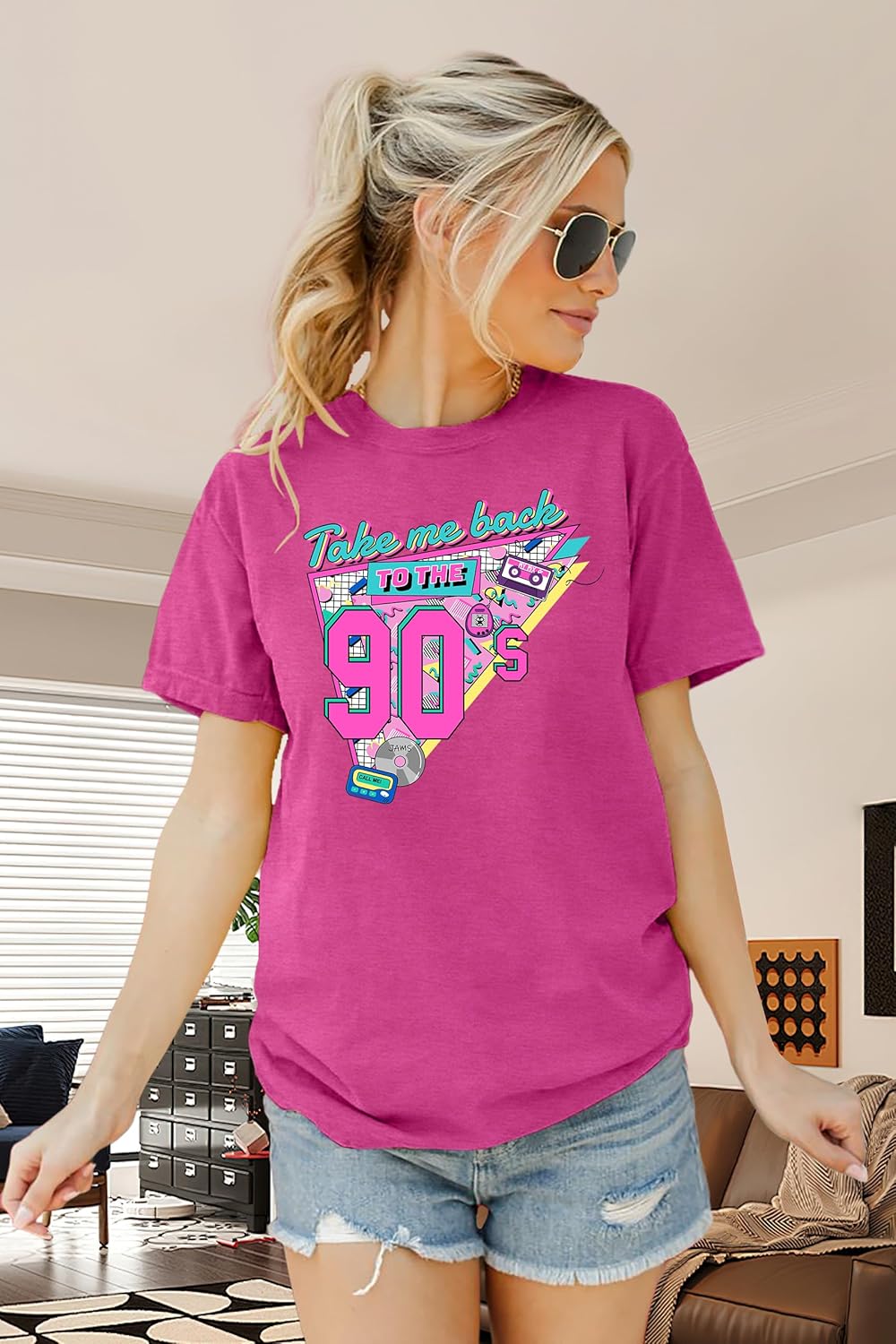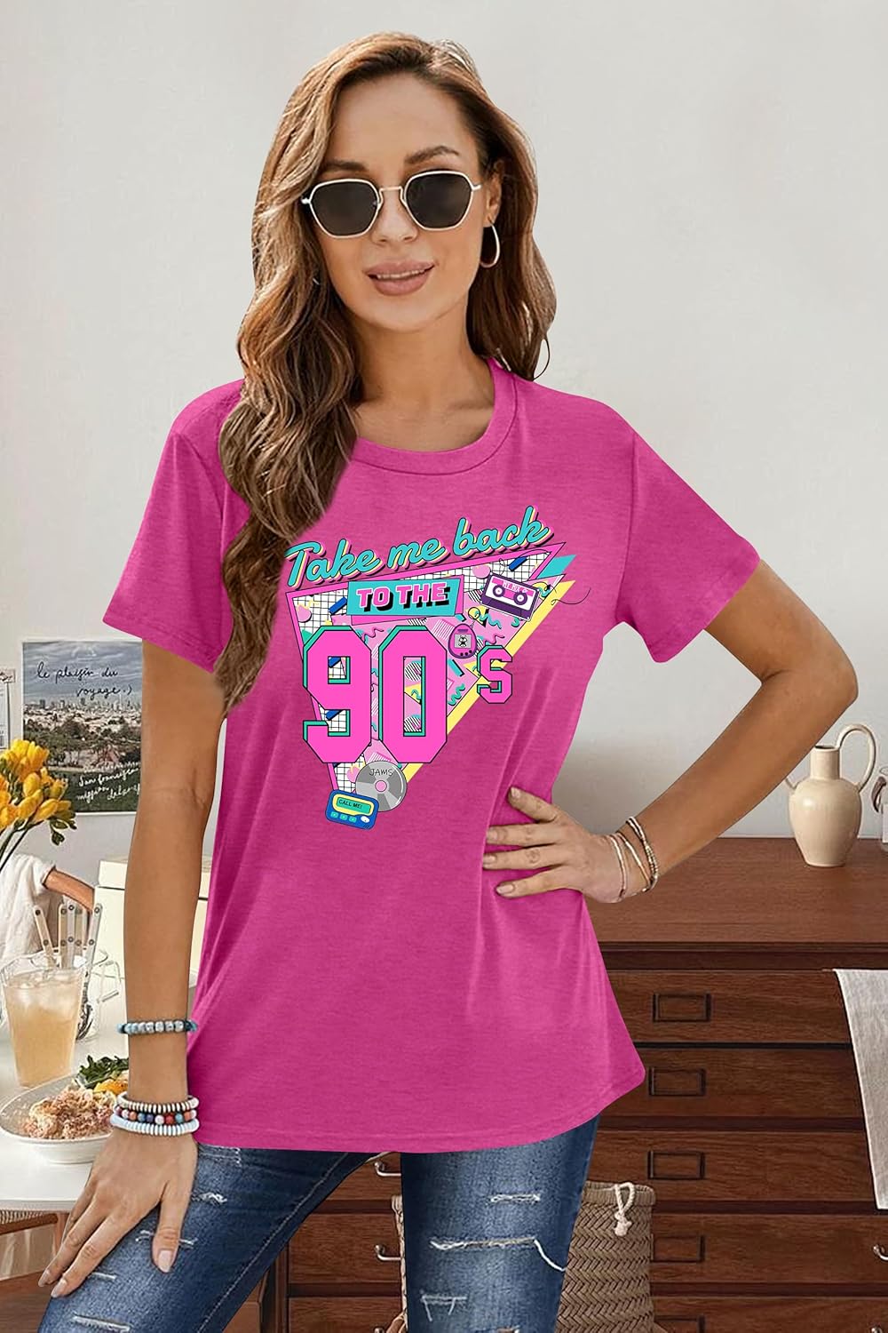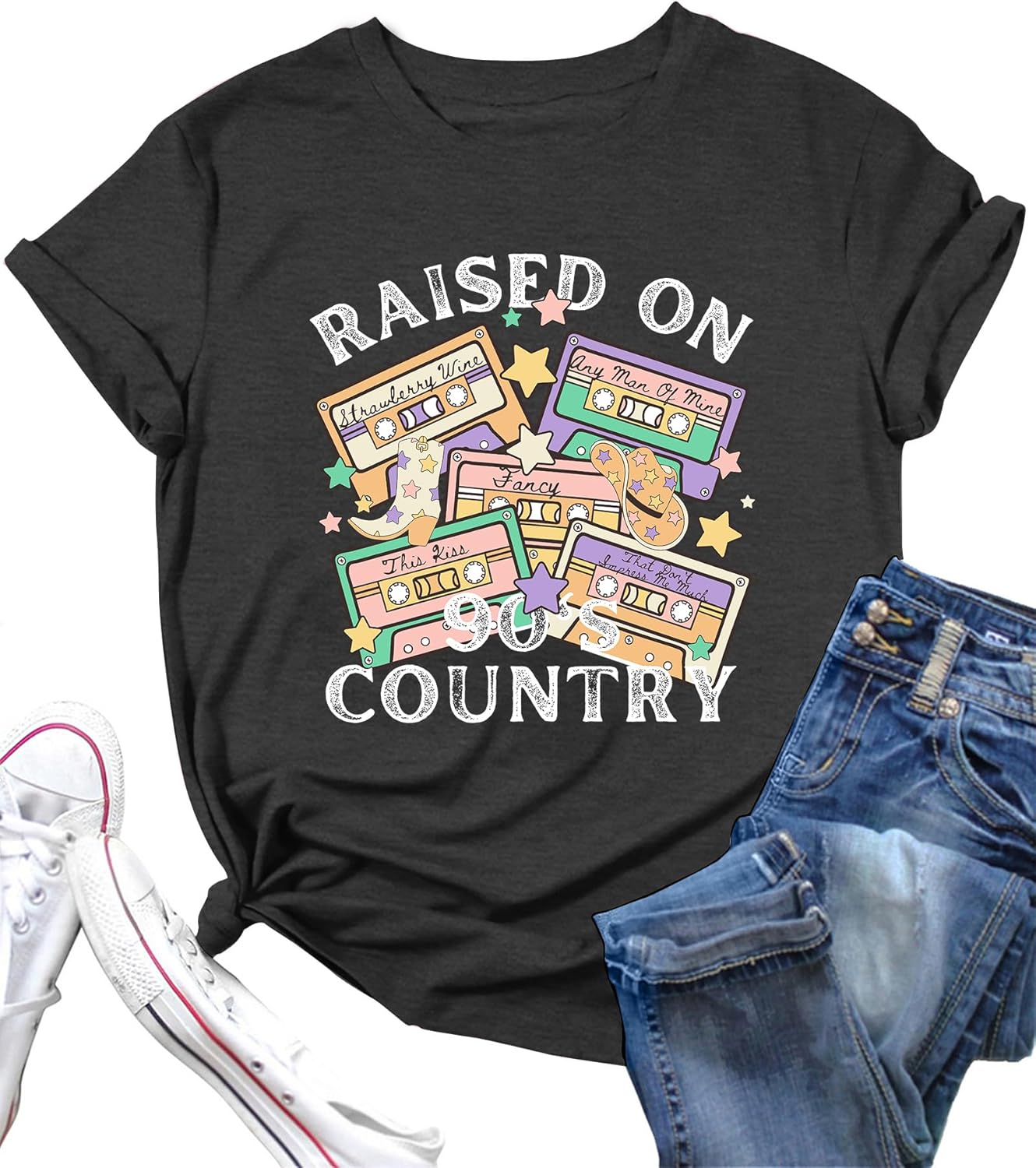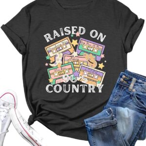 LAZYCHILD 90s Shirt for Women: 90\u2019s Outfit T-Shirt Vintage Neon Raised on 90s Country Music Rock Band Tops