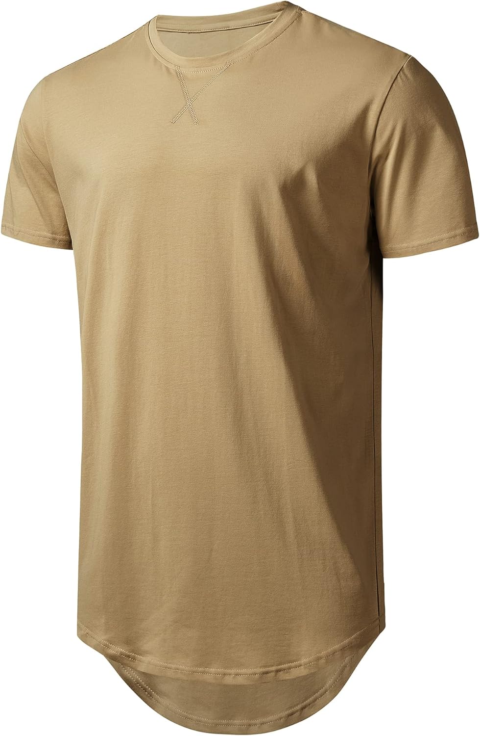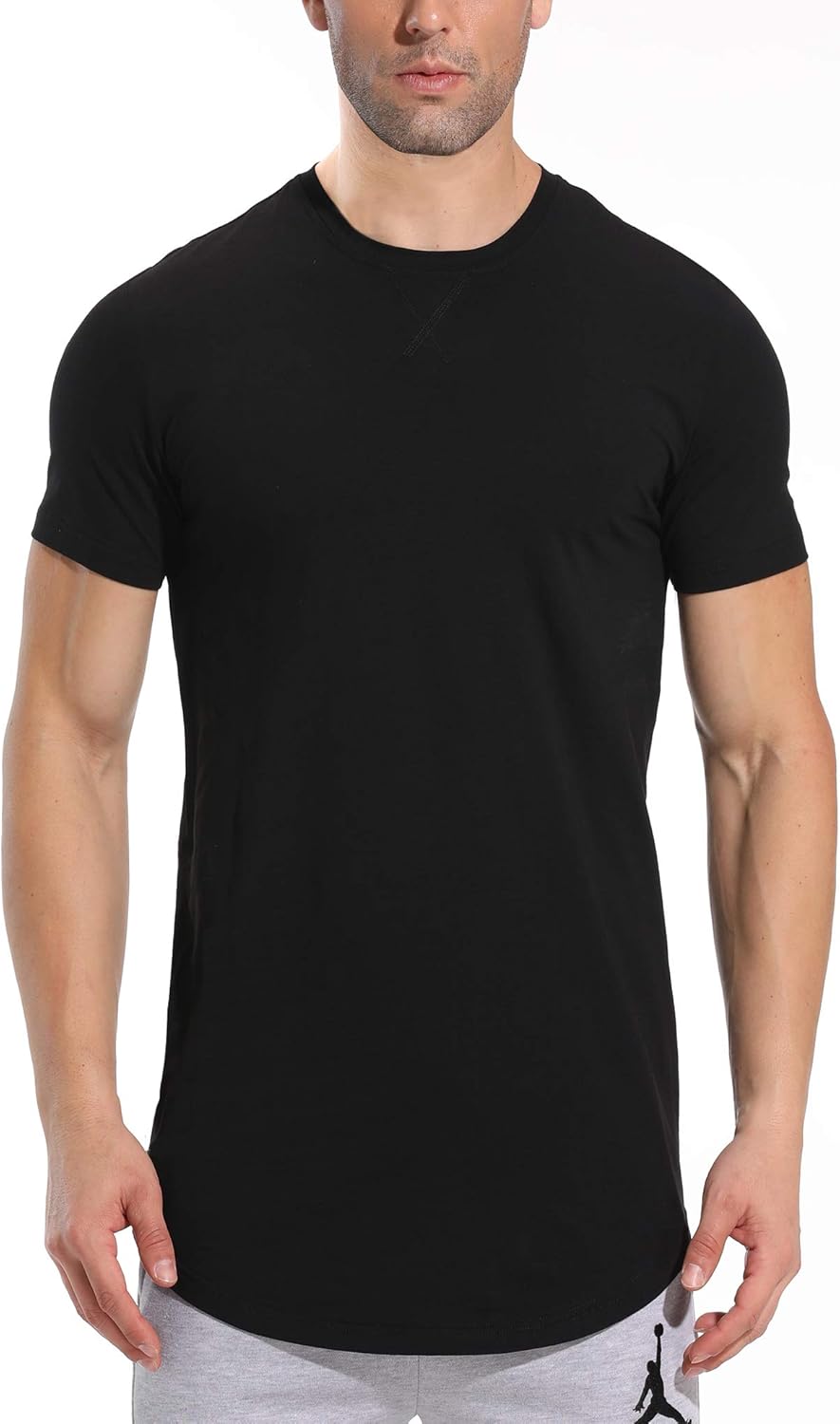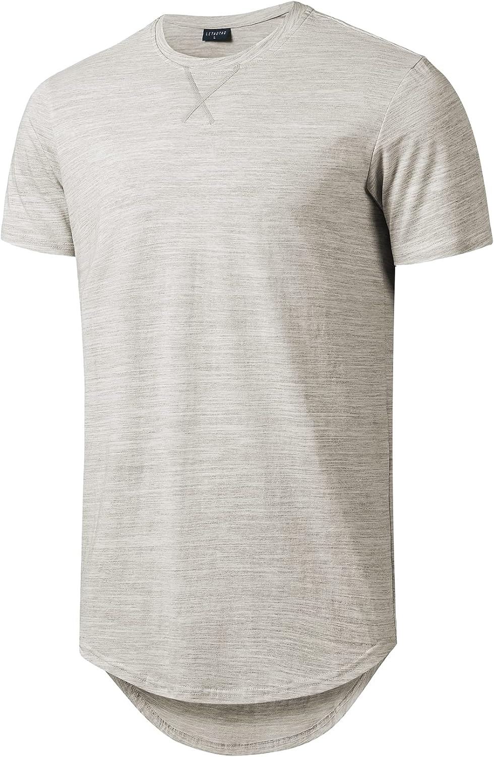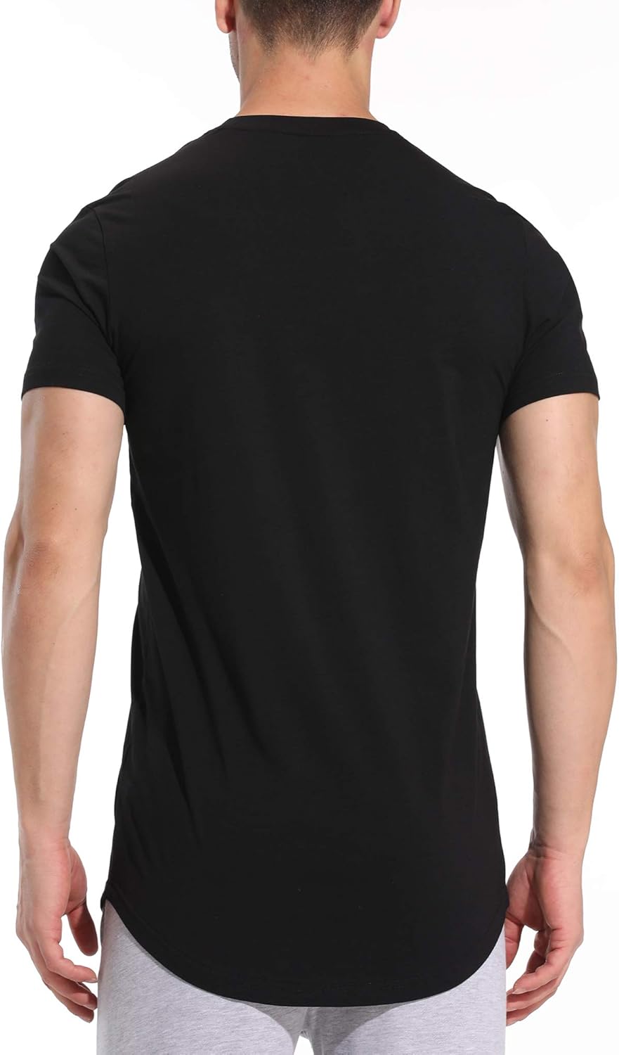LETAOTAO Mens Hipster Longline T-Shirt Drop Cut Scallop Long Tail Slim Fit Bodybuilding Gym Muscle Workout Tee