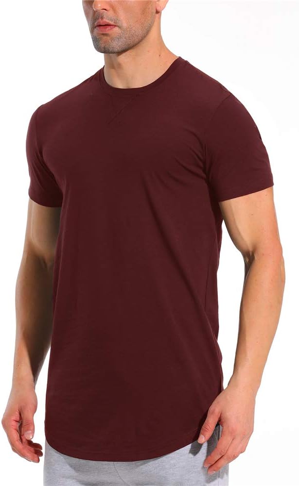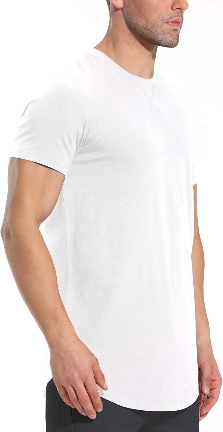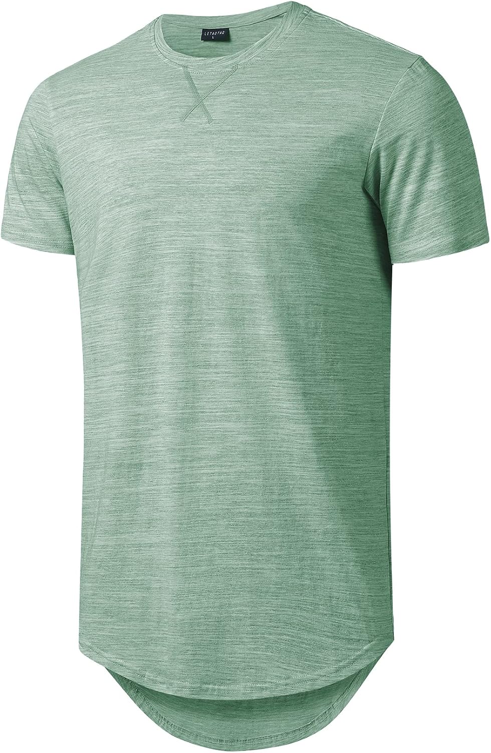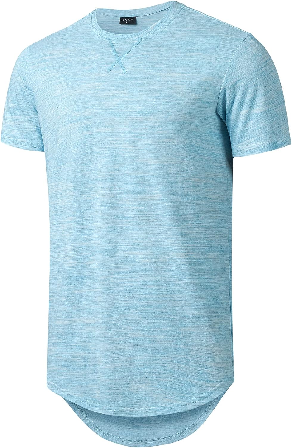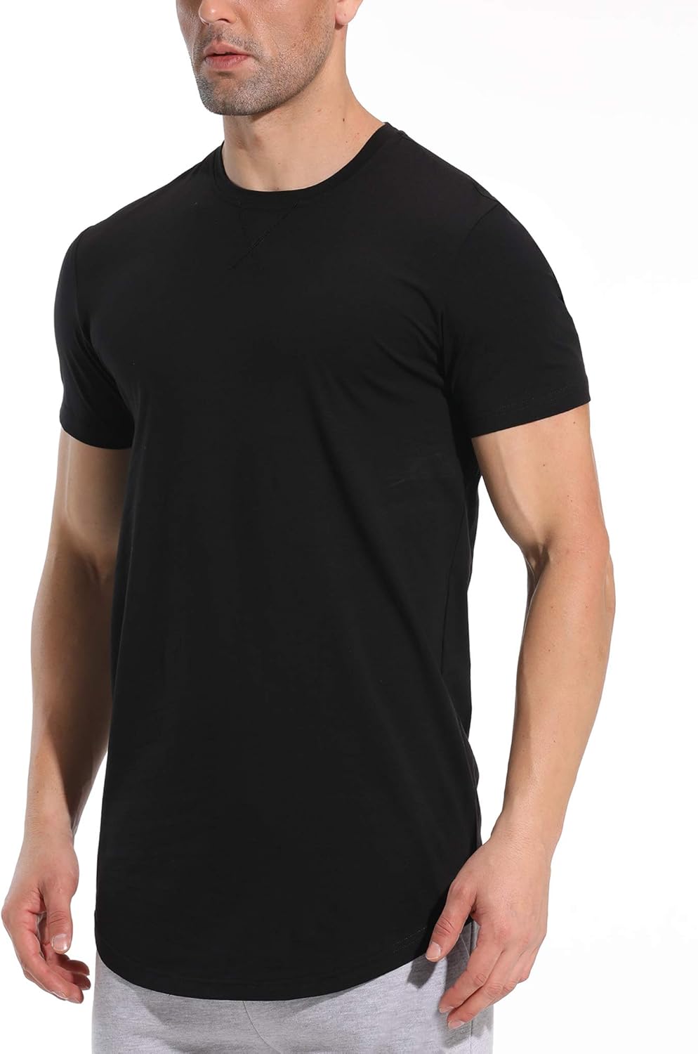 LETAOTAO Mens Hipster Longline T-Shirt Drop Cut Scallop Long Tail Slim Fit Bodybuilding Gym Muscle Workout Tee