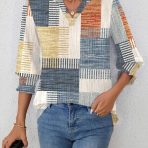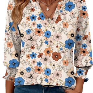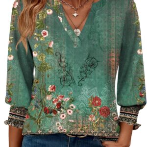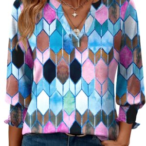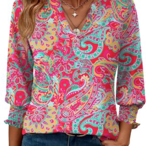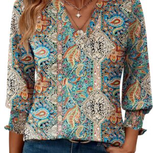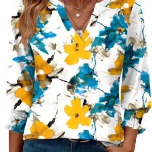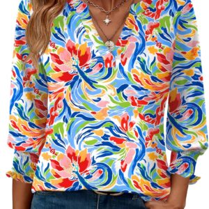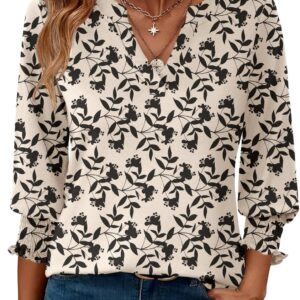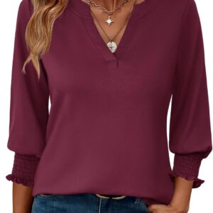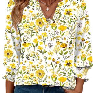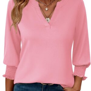 Women's V Neck 3/4 Sleeve Tops Casual Tee Shirts 2025