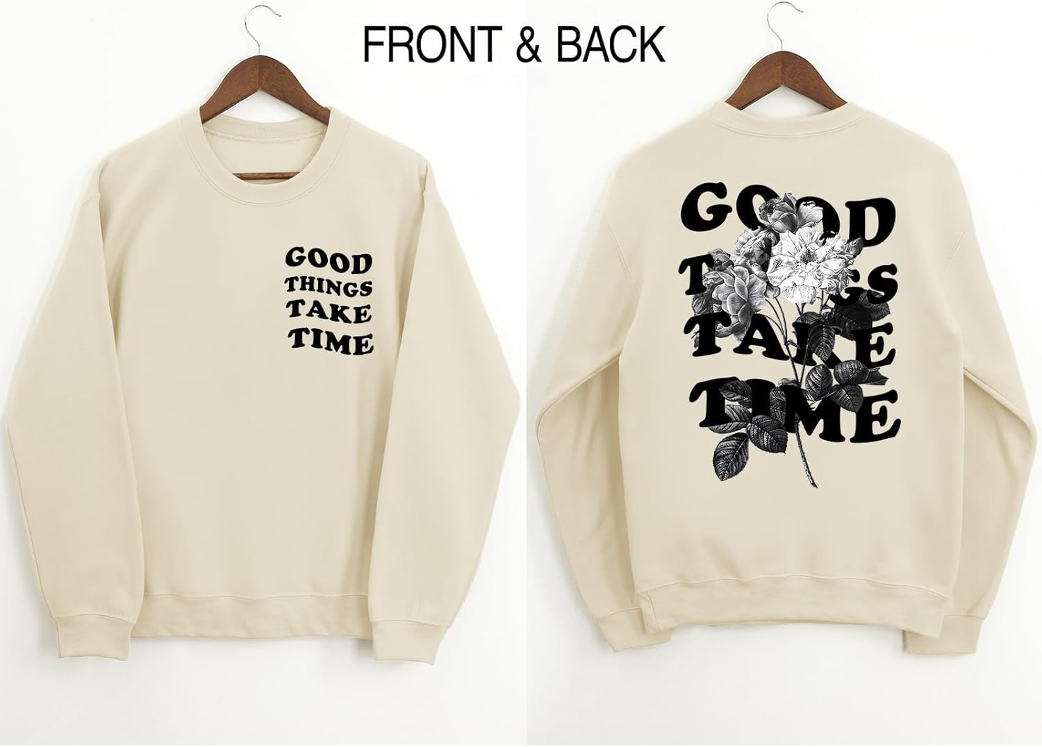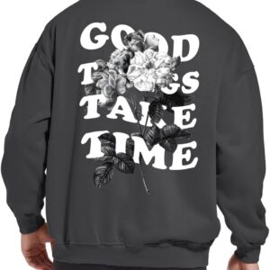 Lytiarul Floral Letter Print Hoodie Casual Loose Fit Retro Crewneck Pullover
