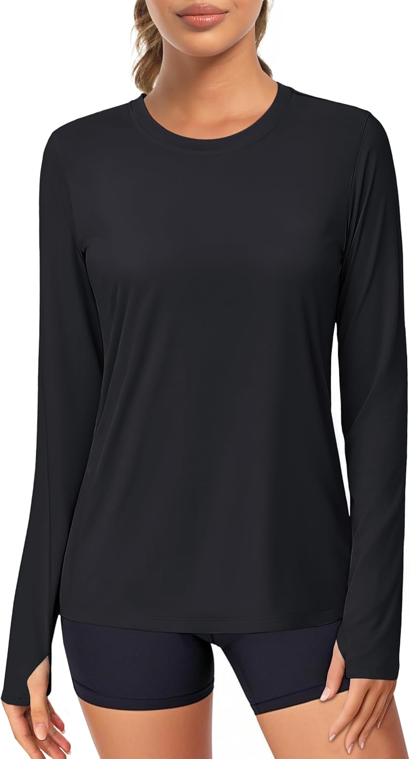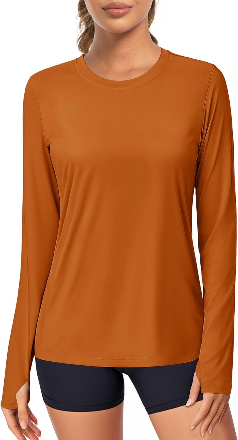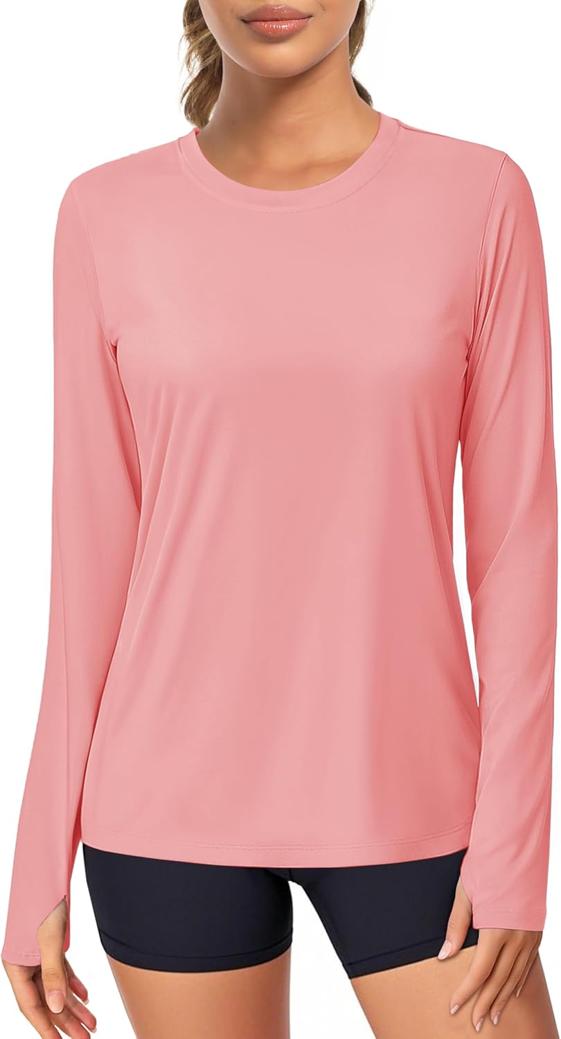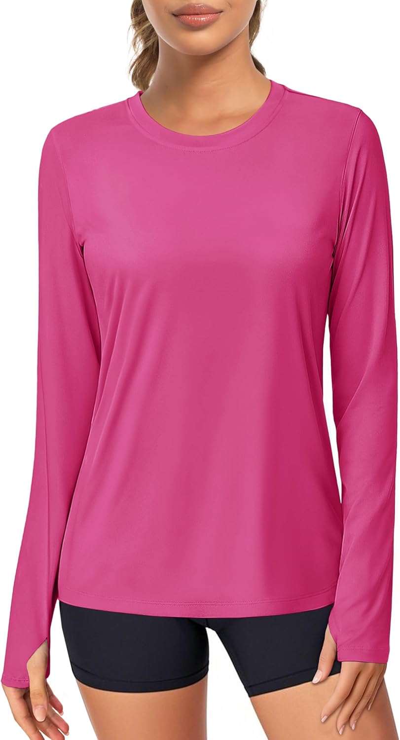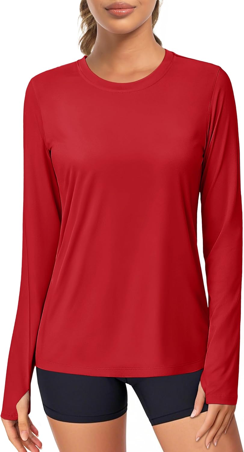 MAGCOMSEN Women\u2019s Long Sleeve Shirts UPF 80+ Quick Dry Athletic Workout Tee Shirts with Thumb Holes Rash Guard Swim Tops