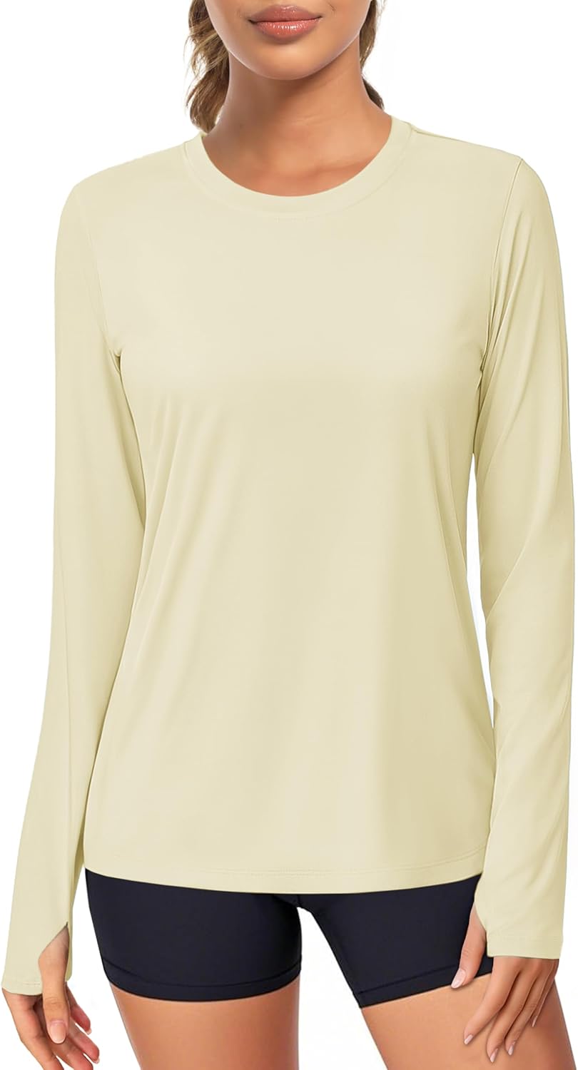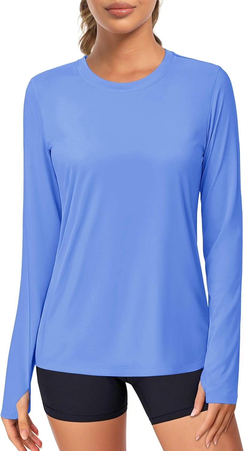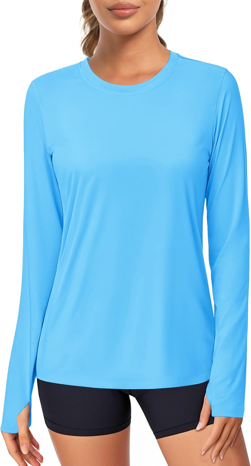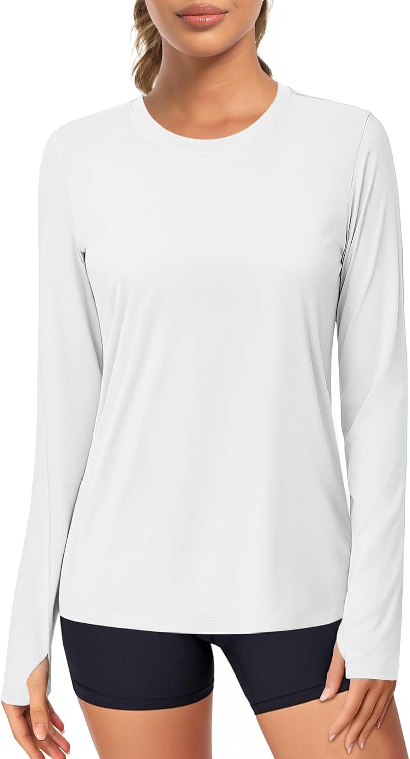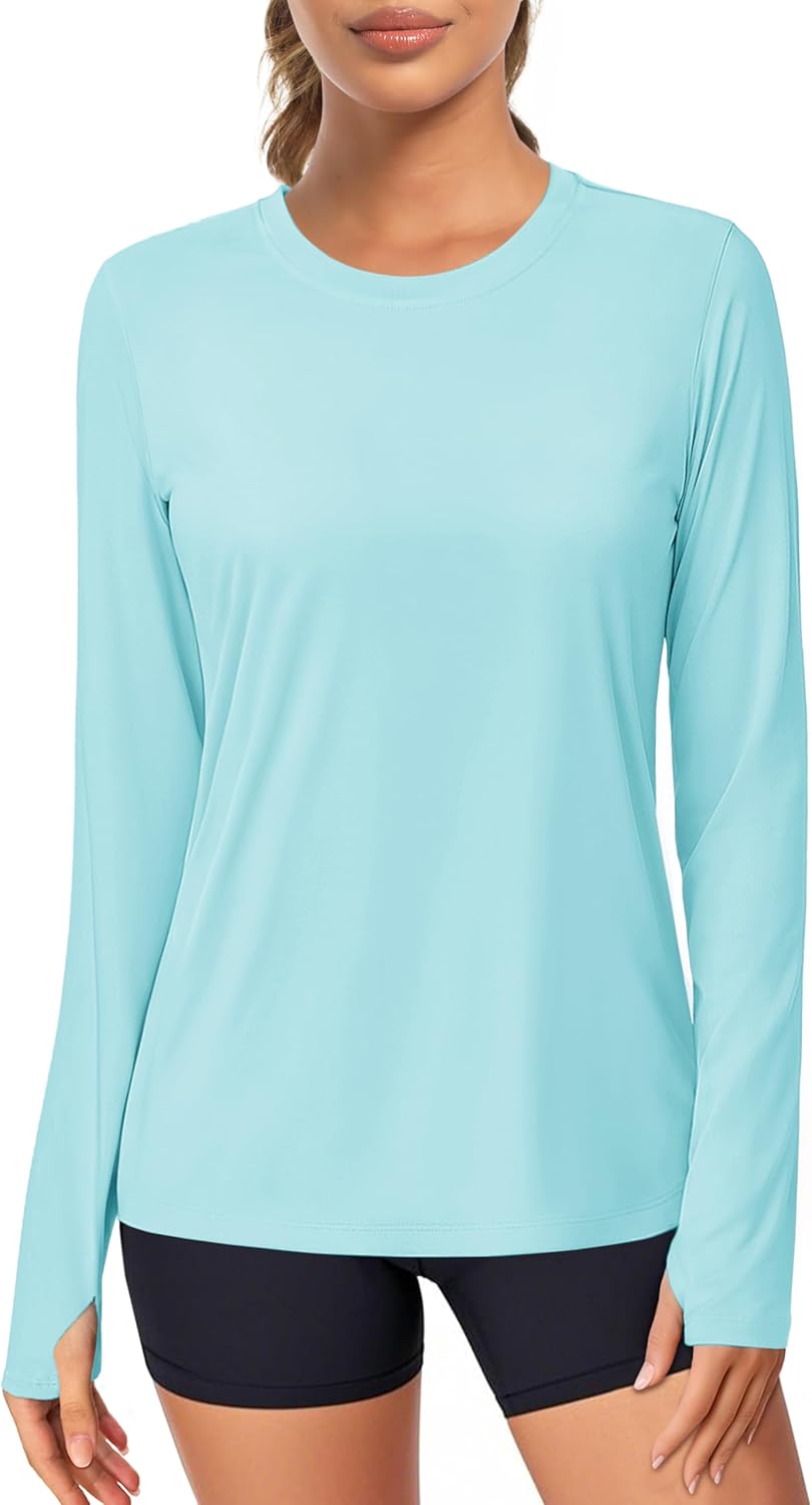 MAGCOMSEN Women\u2019s Long Sleeve Shirts UPF 80+ Quick Dry Athletic Workout Tee Shirts with Thumb Holes Rash Guard Swim Tops
