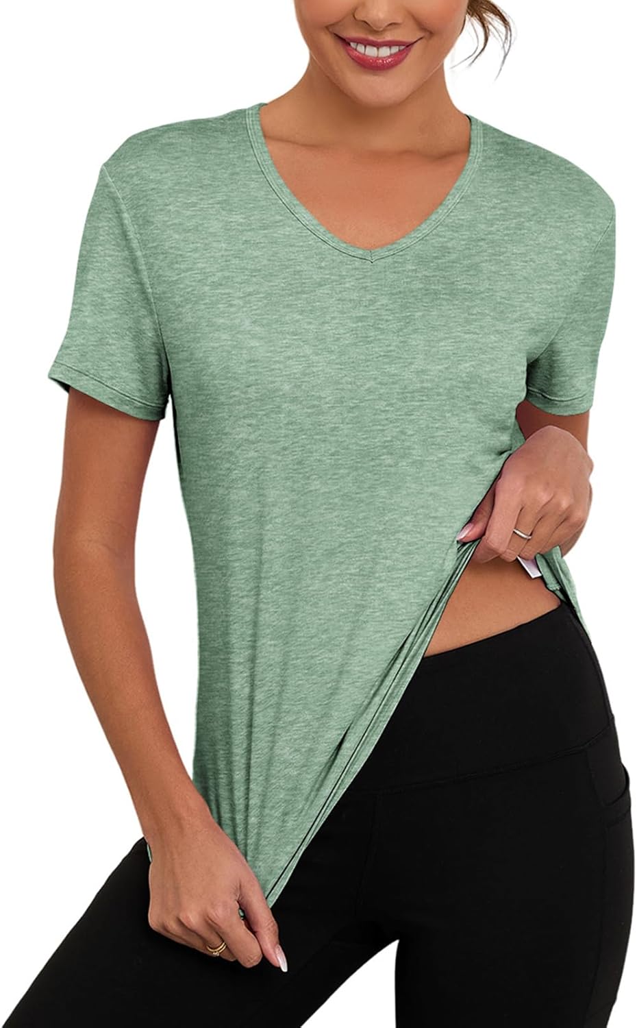 - Features: Womens workout tops, short sleeve, v neck, solid color, loose fit, maximum comfort during your outdoor and indoor workouts.