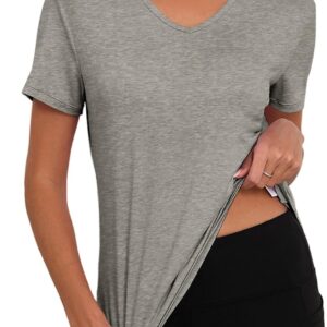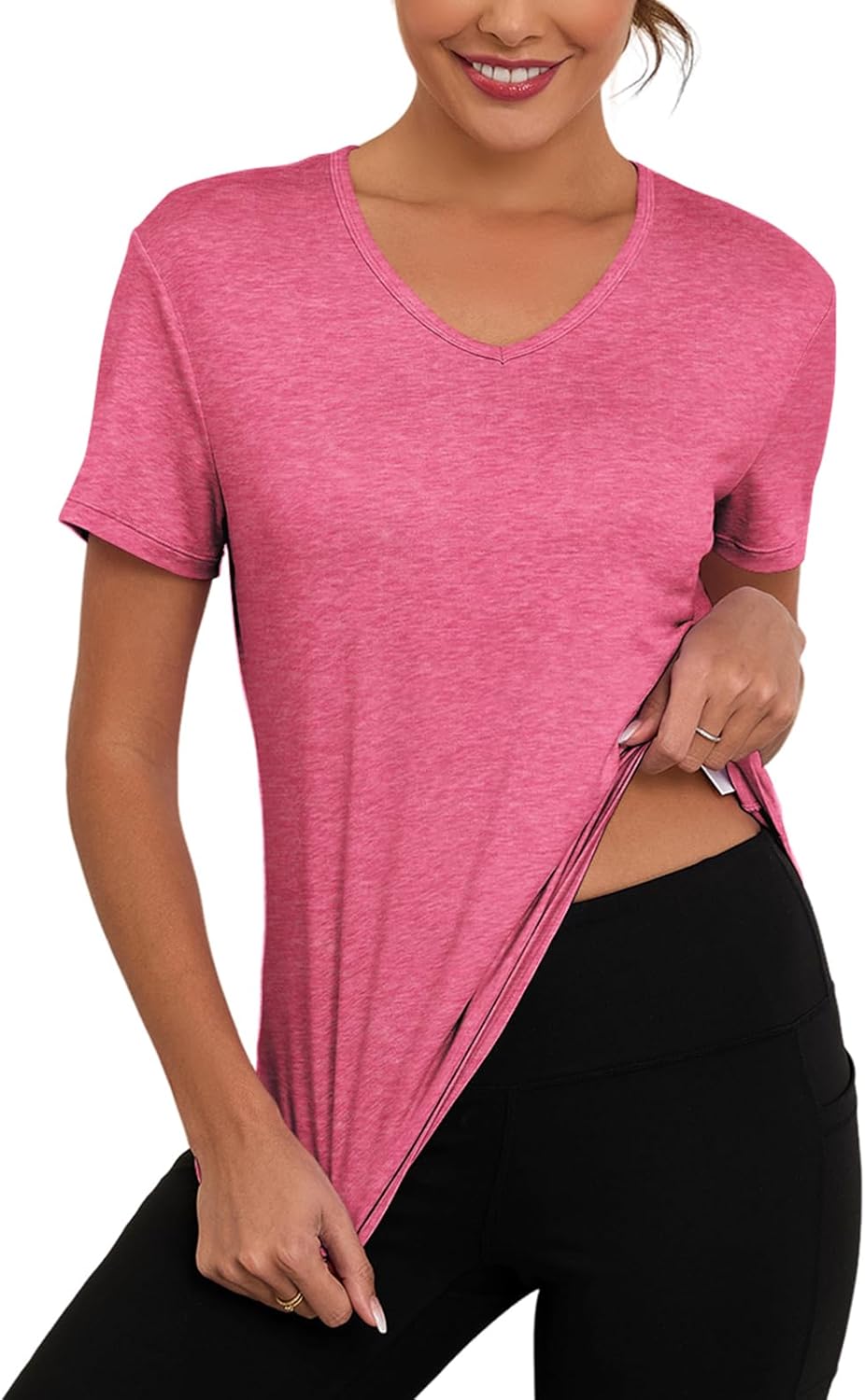 Mazulun V Neck Workout Tops for Women UPF 50+ Breathable Loose Fit Short Sleeve Tee Shirt Yoga Gym Basic T Shirts