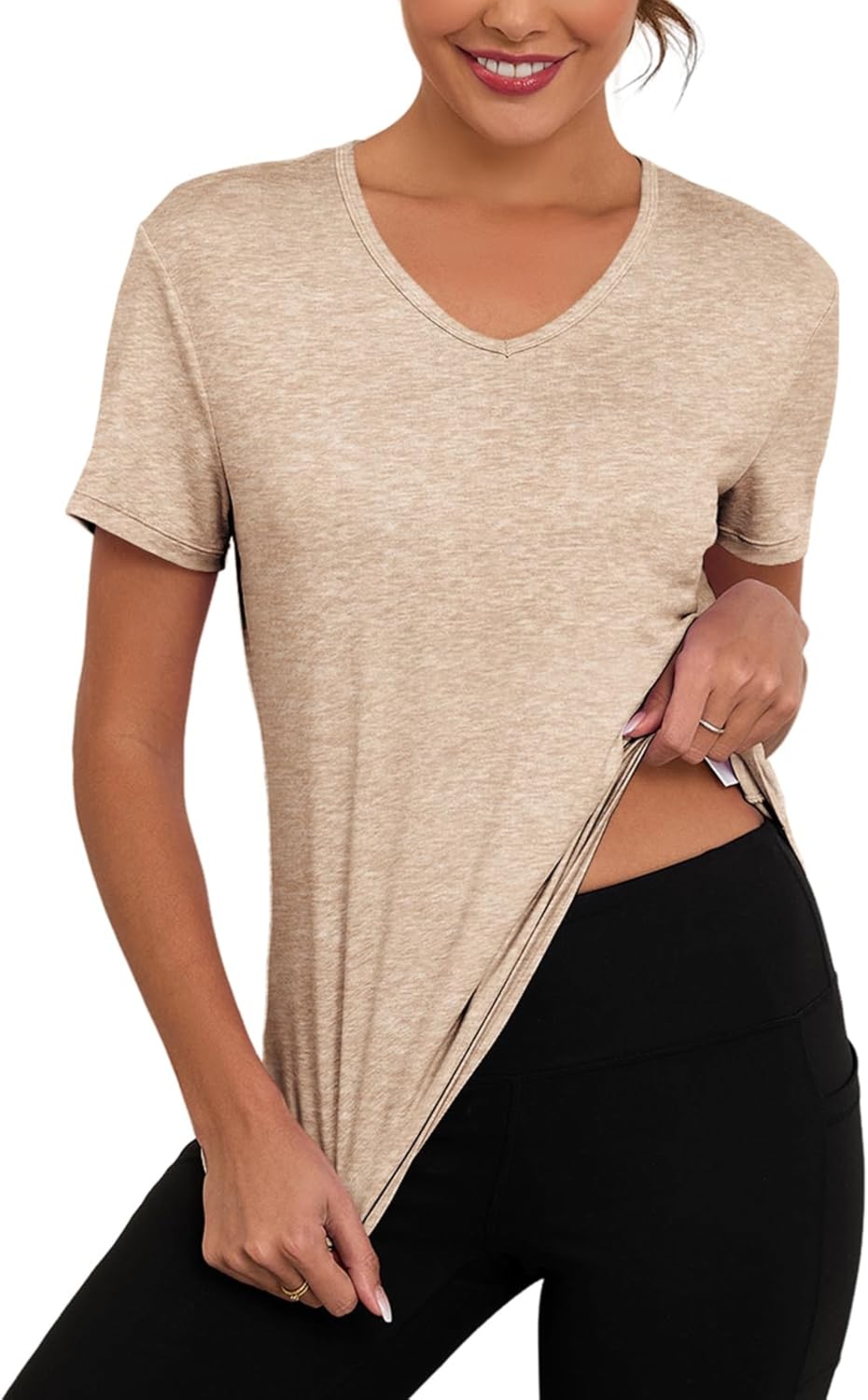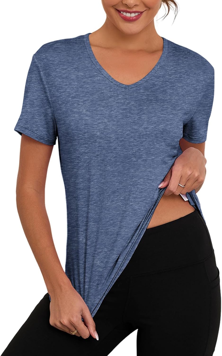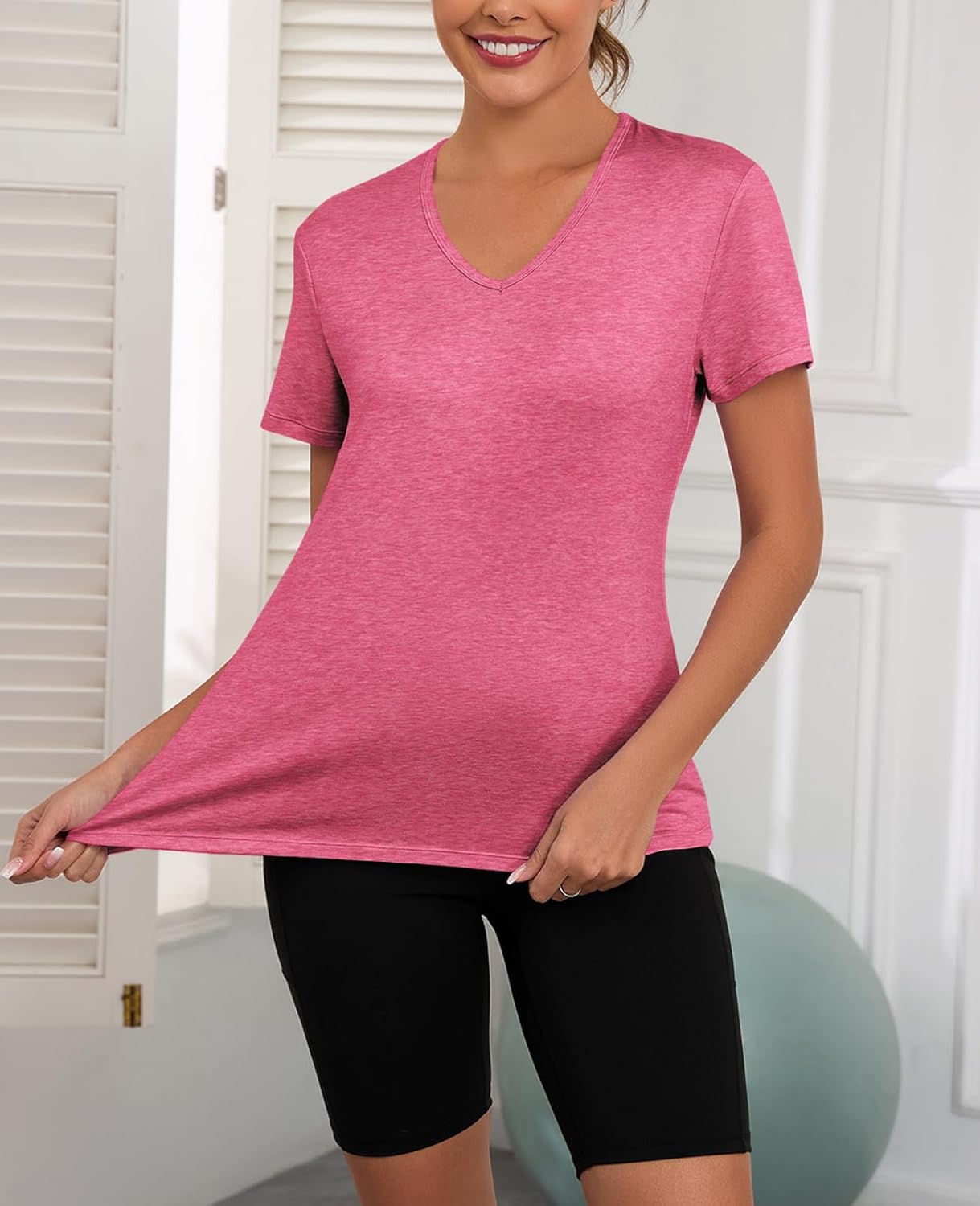Mazulun V Neck Workout Tops for Women UPF 50+ Breathable Loose Fit Short Sleeve Tee Shirt Yoga Gym Basic T Shirts quantity