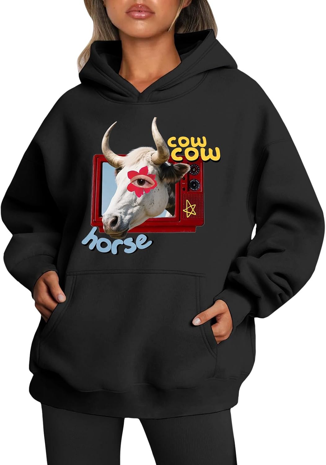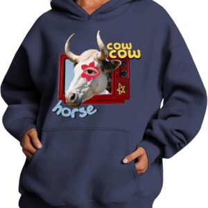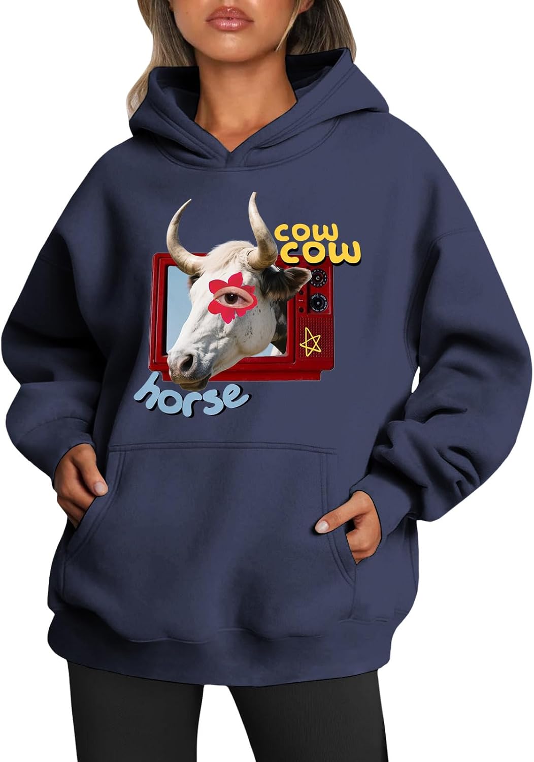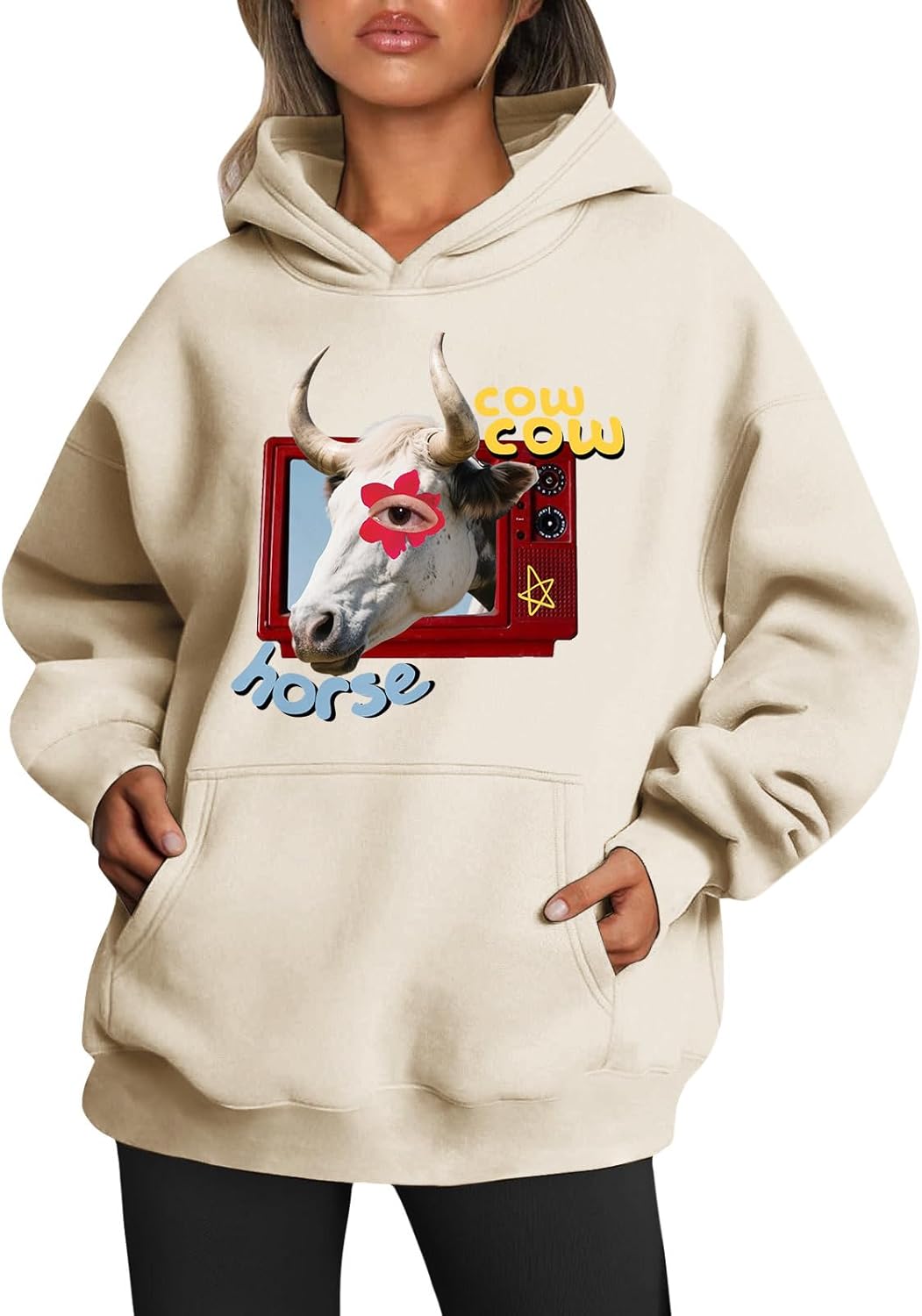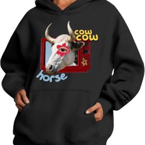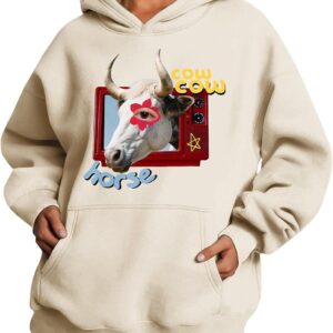 Medlor Unisex Graphic Hoodie Novelty Streetwear Cotton Blend Pullover Loose Fit White Sweatshirt With Funny Animal Design