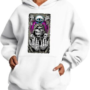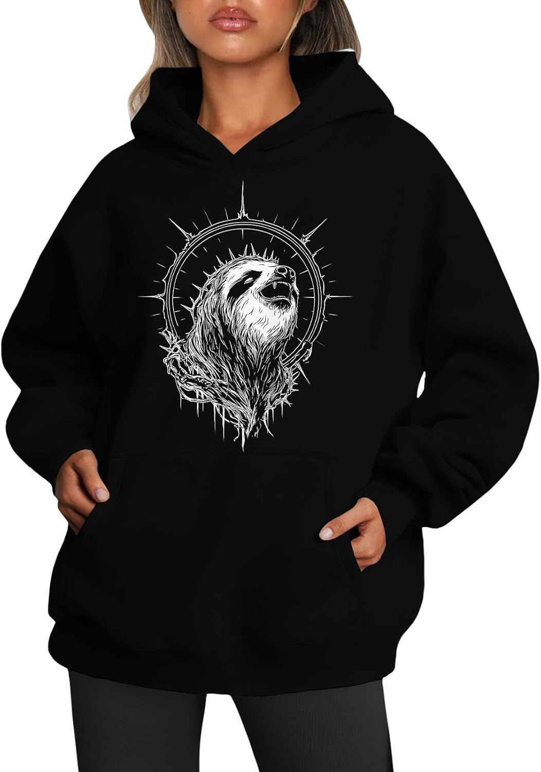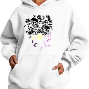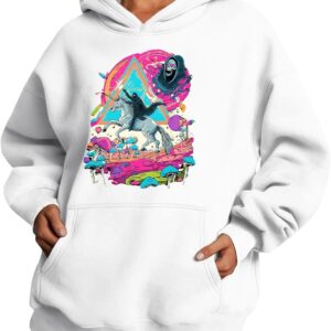 - MATCH: Pair with jeans joggers or leggings for a laid-back look. Layer under denim jackets or coats for extra warmth and style. Accessorize with sneakers or simple jewelry to highlight the quirky graphic. Also works as a fun statement piece for themed events.
