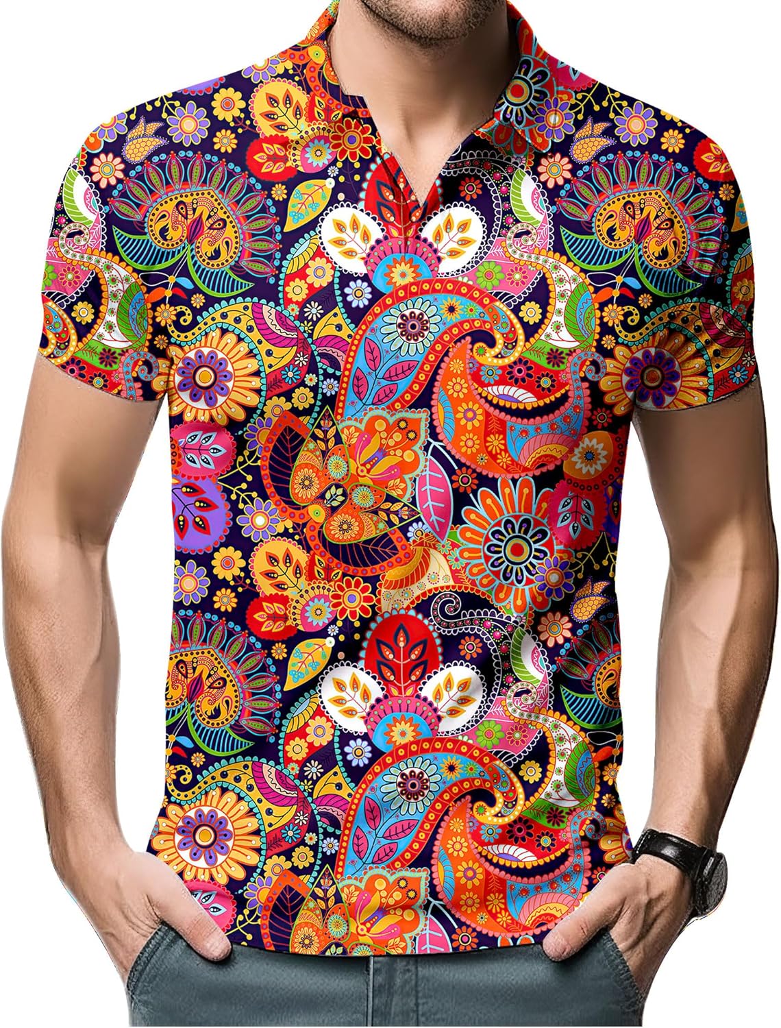 - 【70 s Costume Outfit for Men】70s shirt Can be easily paired with casual shorts, casual pants, jeans, etc. to create a fashionable and dazzling summer look.