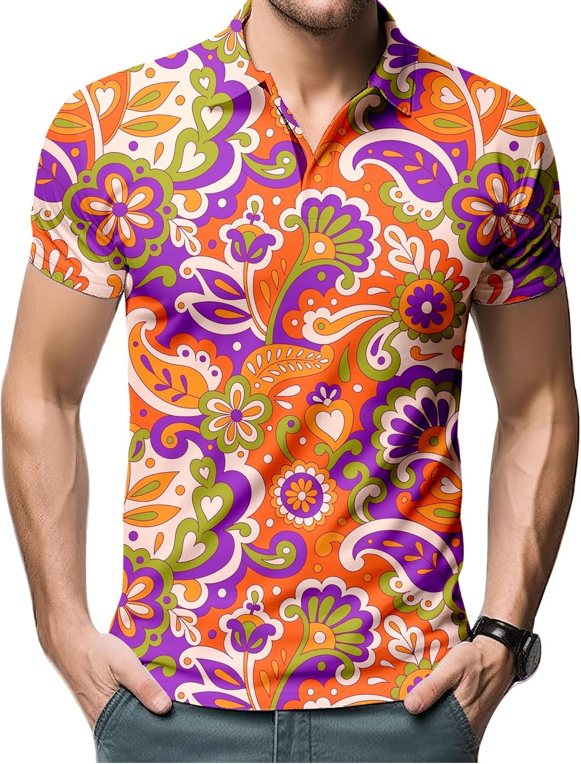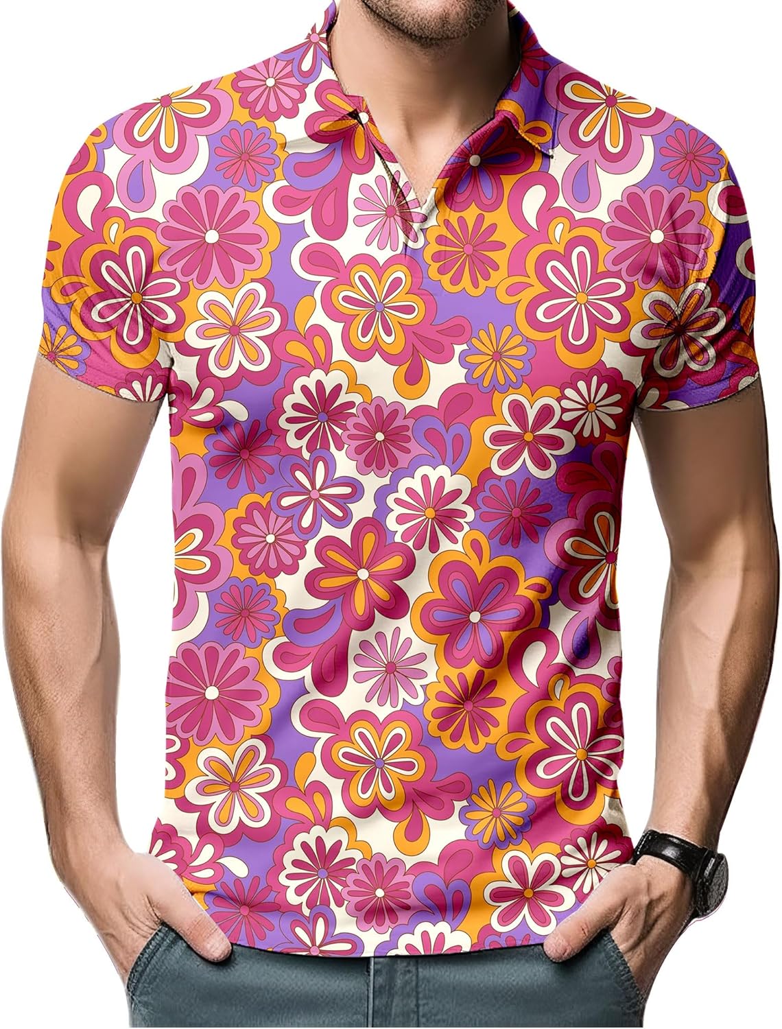 Mens 70s Golf Shirts for Men,Funny Golf Shirts for Men Short Sleeve,Mens 70s Shirt 70s Outfits for Men