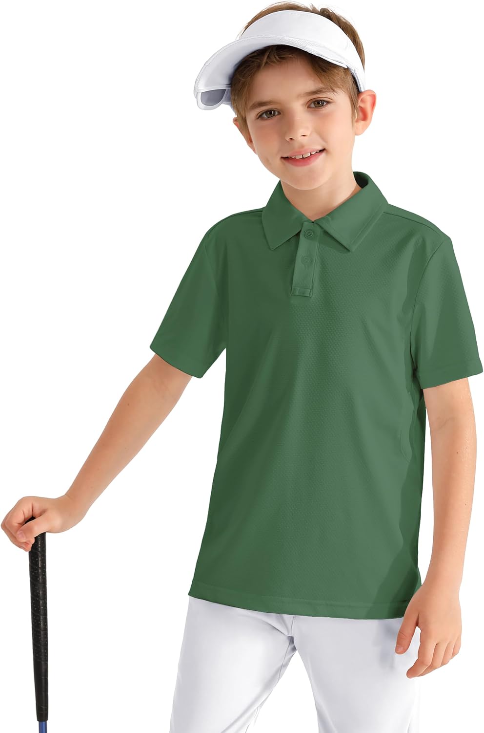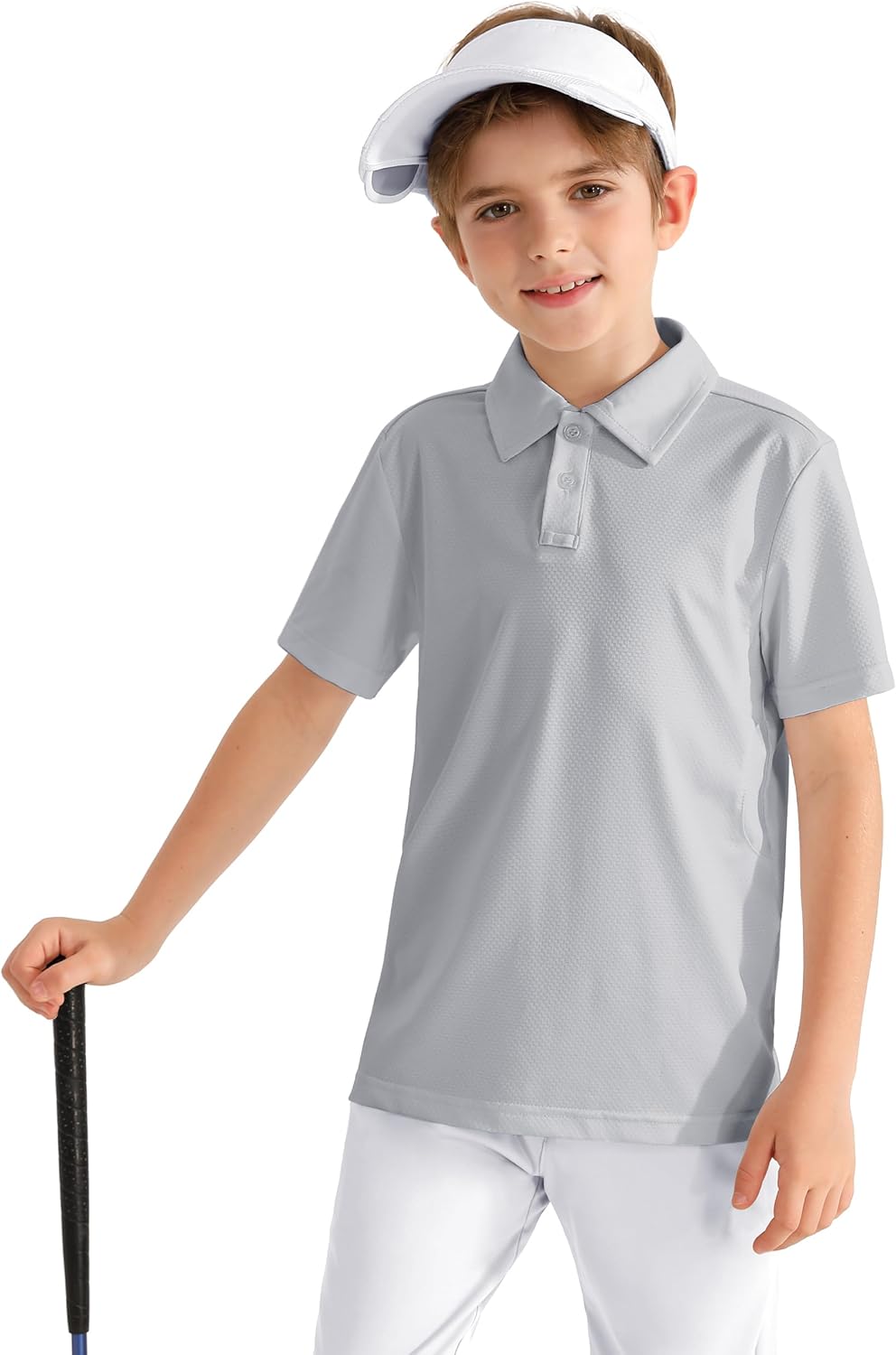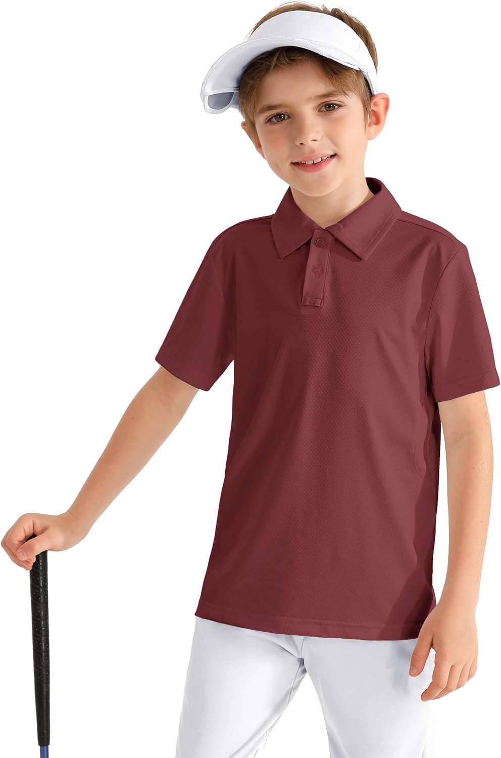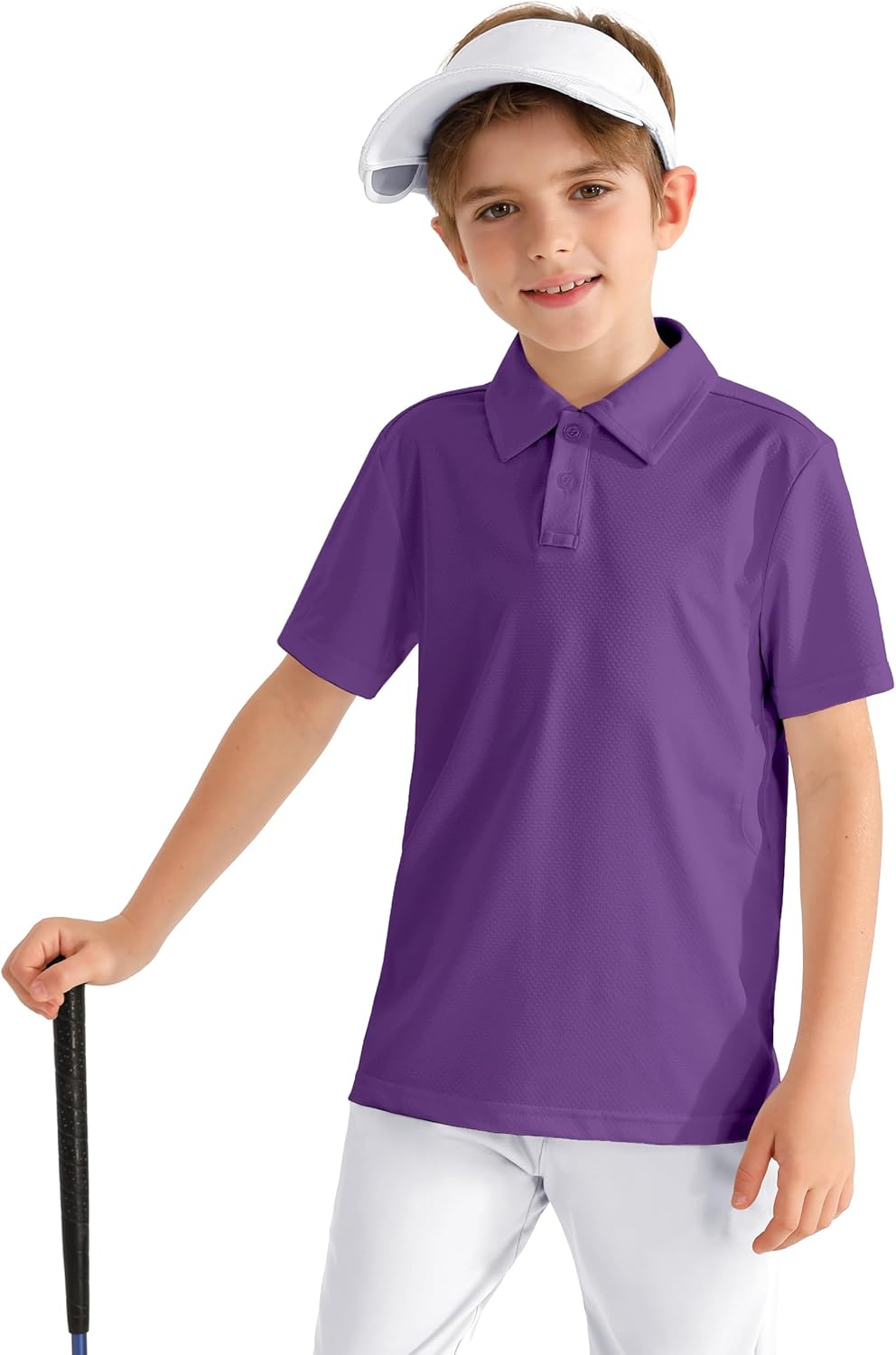 MIVEI Boys’ Performance Polo Shirt – Golf Grid Short Sleeve Collar Shirts Youth Stretch Quick Dry Lightweight Athletic UPF50+