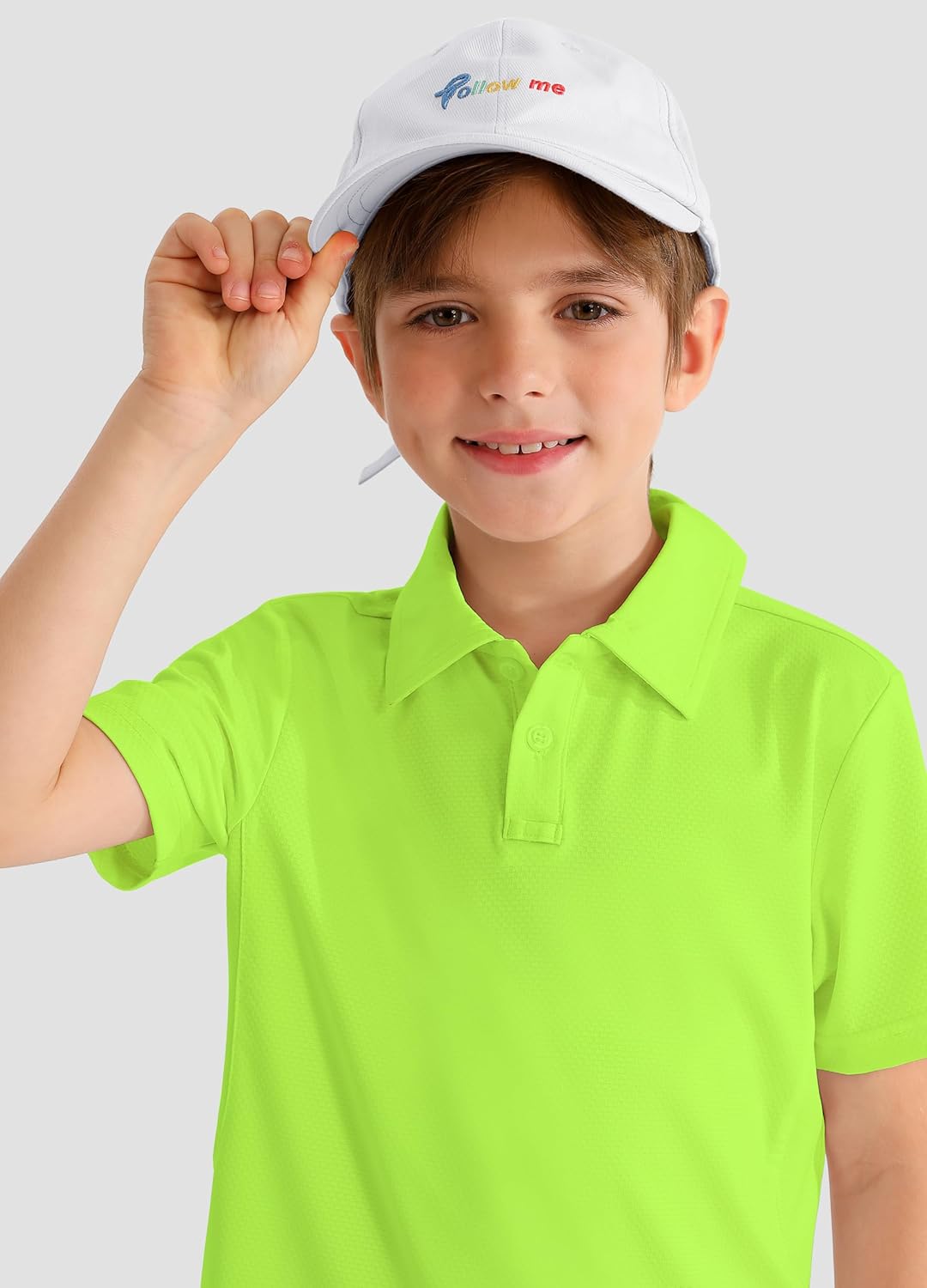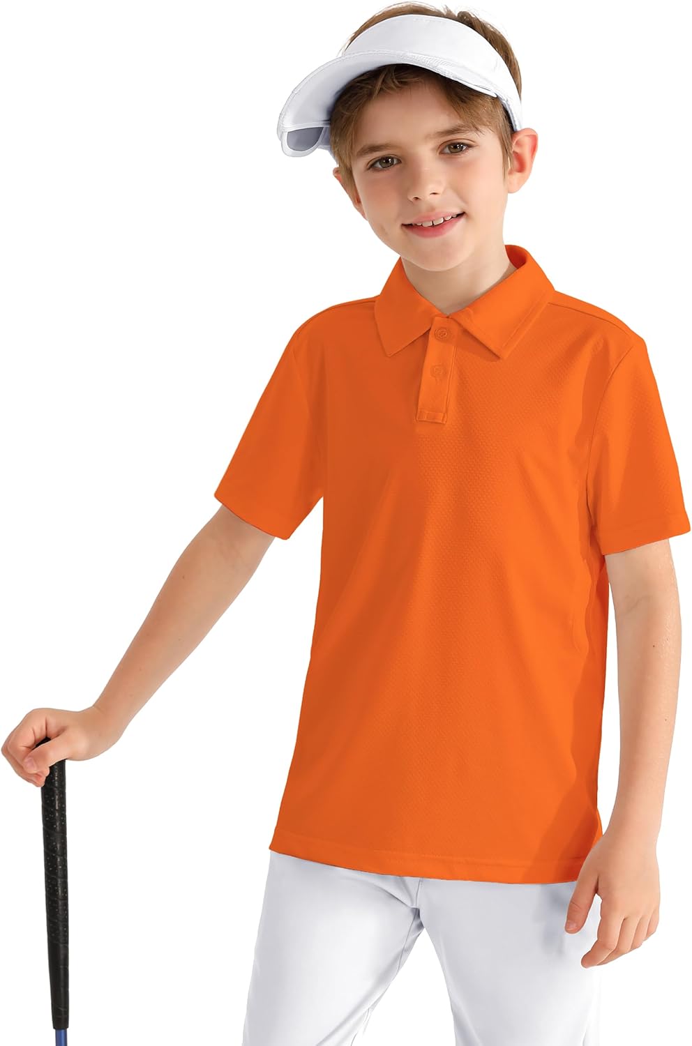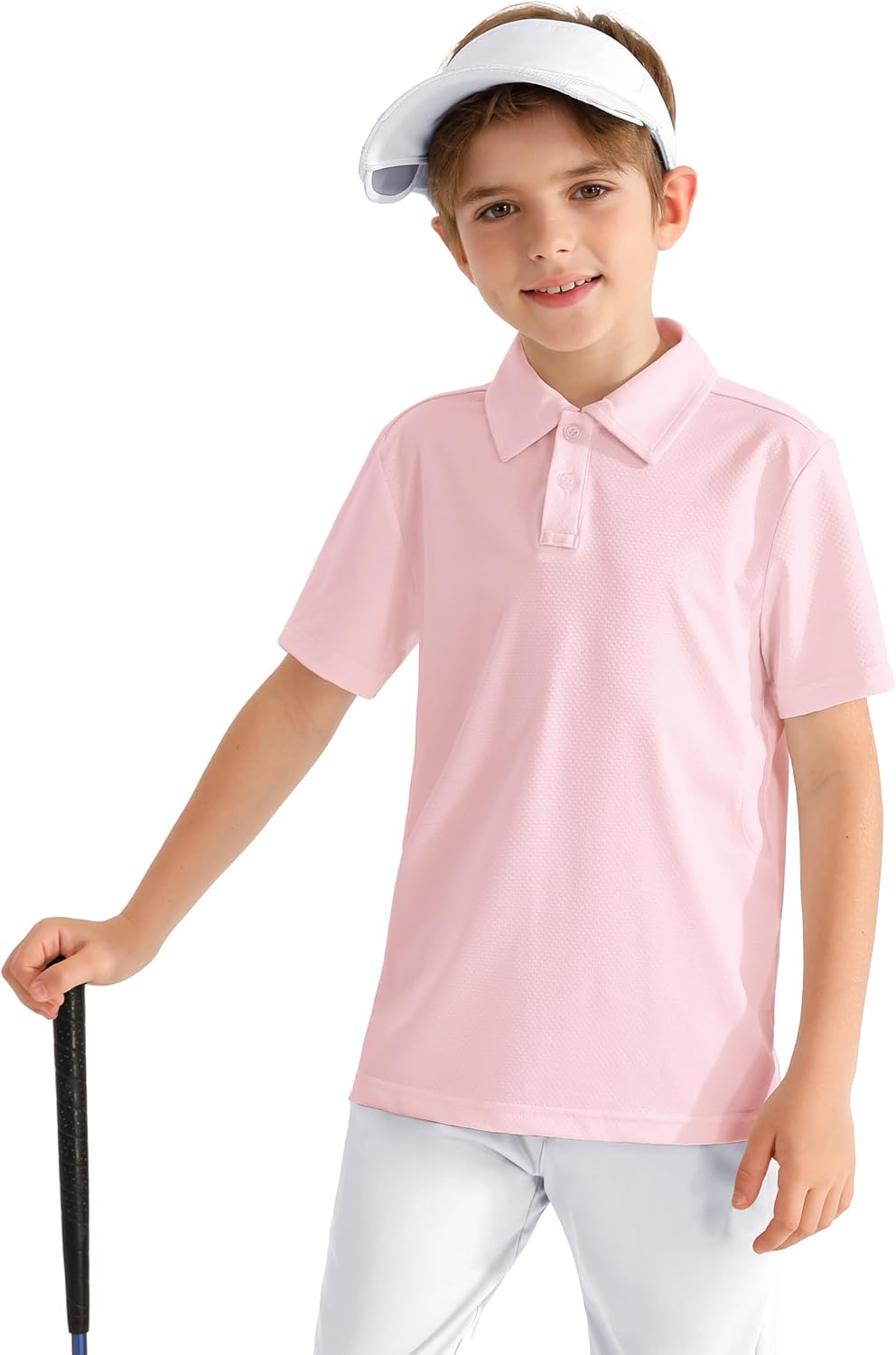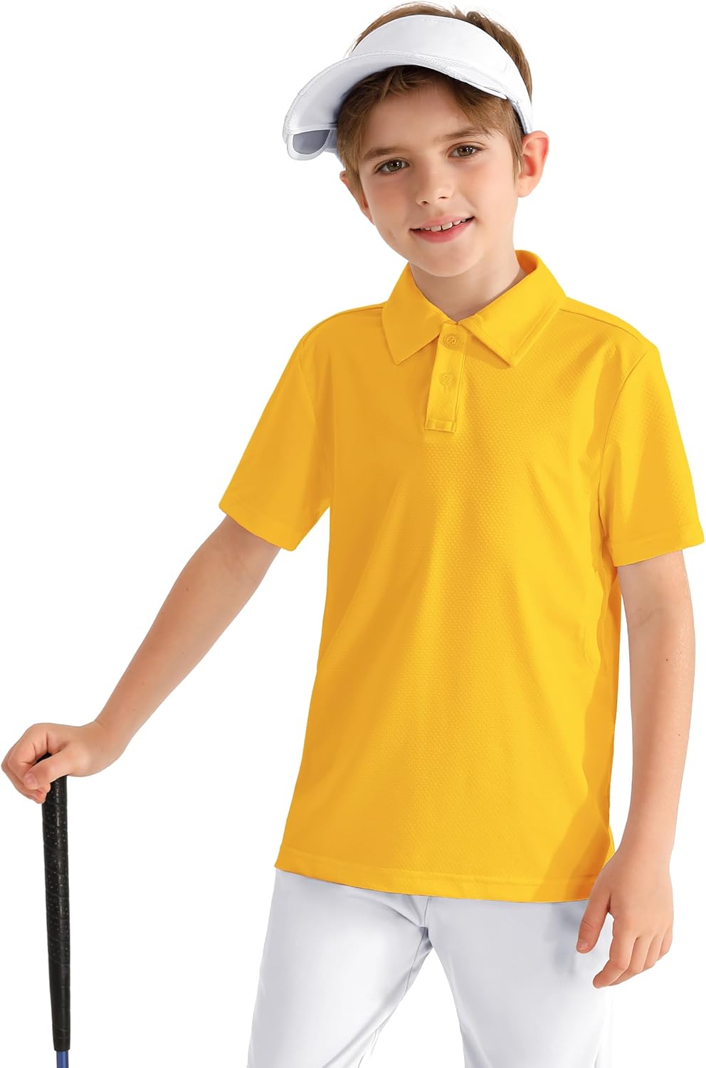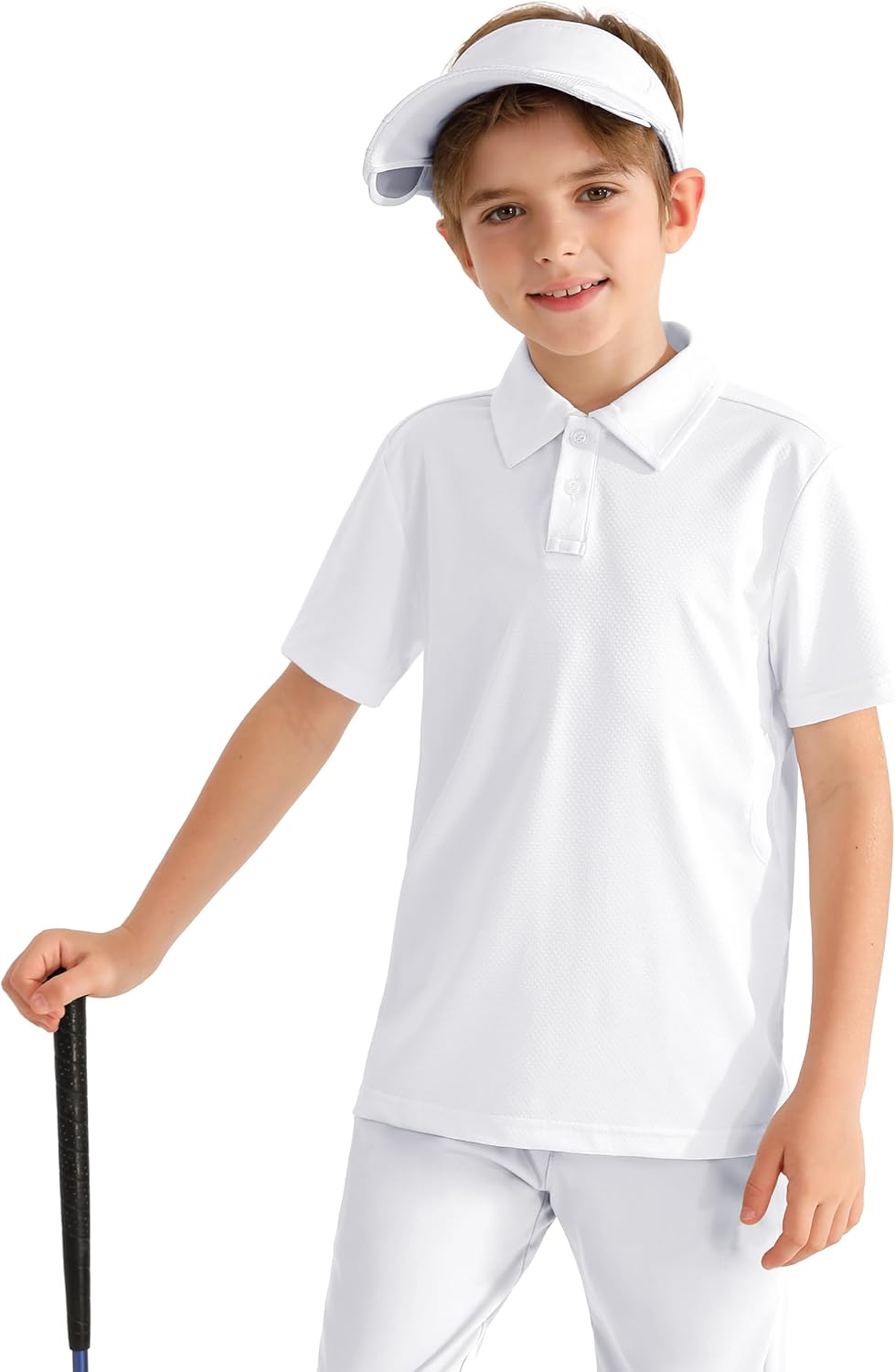 MIVEI Boys’ Performance Polo Shirt – Golf Grid Short Sleeve Collar Shirts Youth Stretch Quick Dry Lightweight Athletic UPF50+
