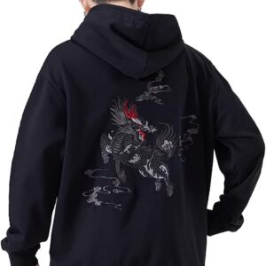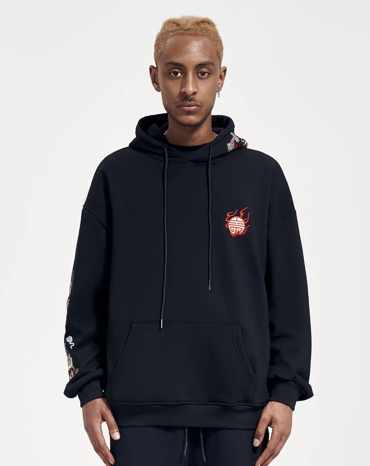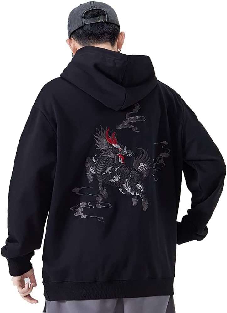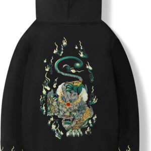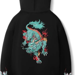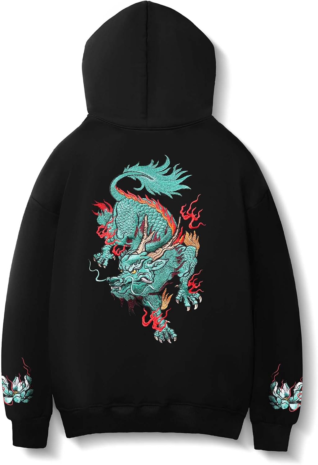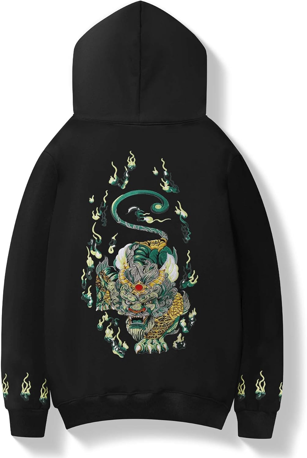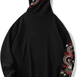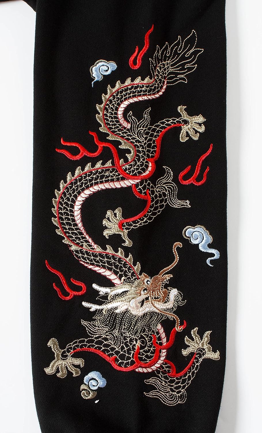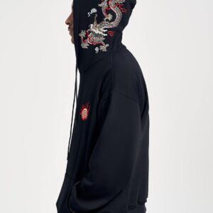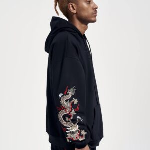 The left side of the hoodie is covered in full embroidery dragon design with high quality stitching to ensure comfort with no loose strings on bumps.