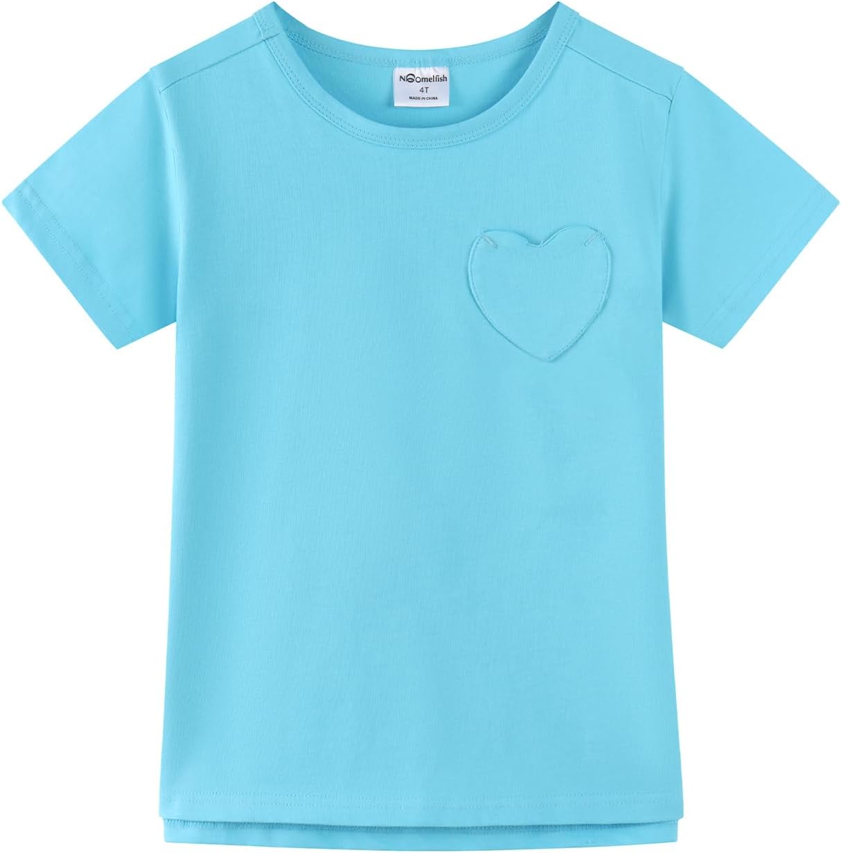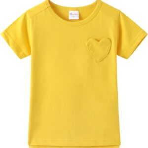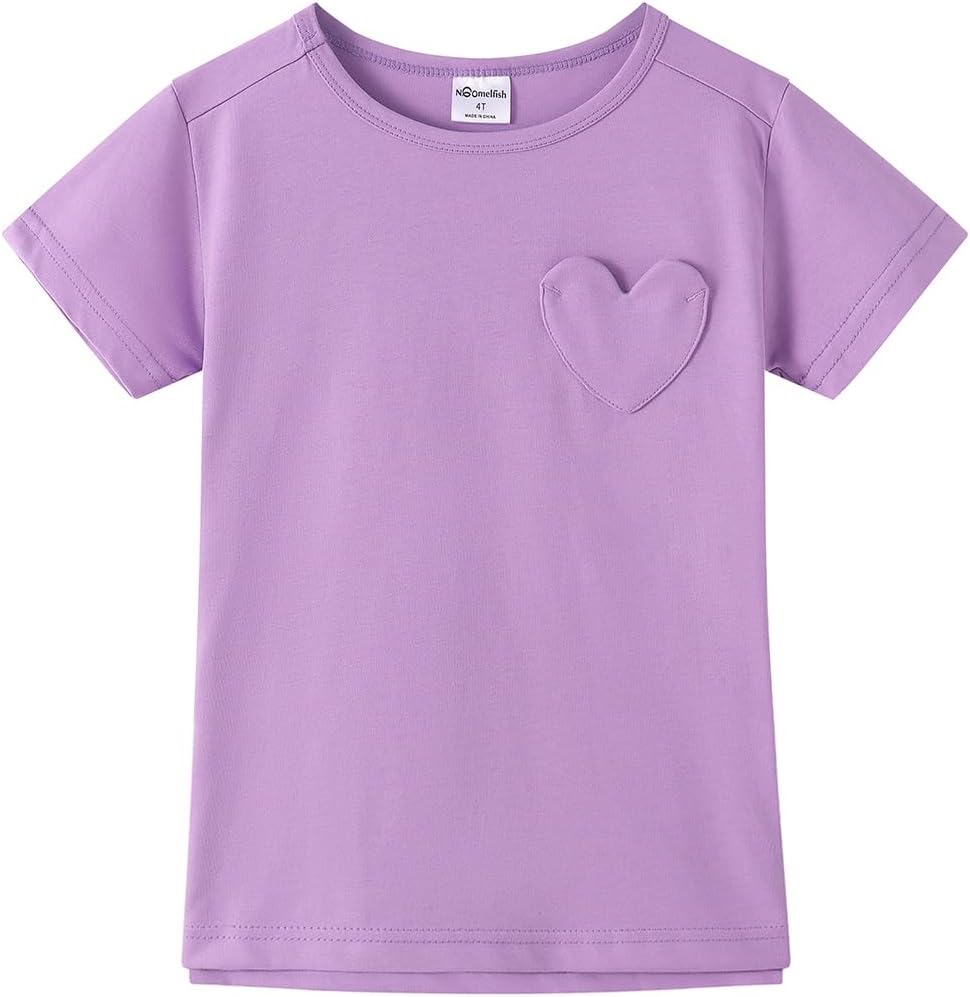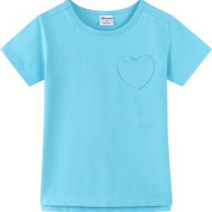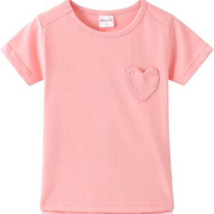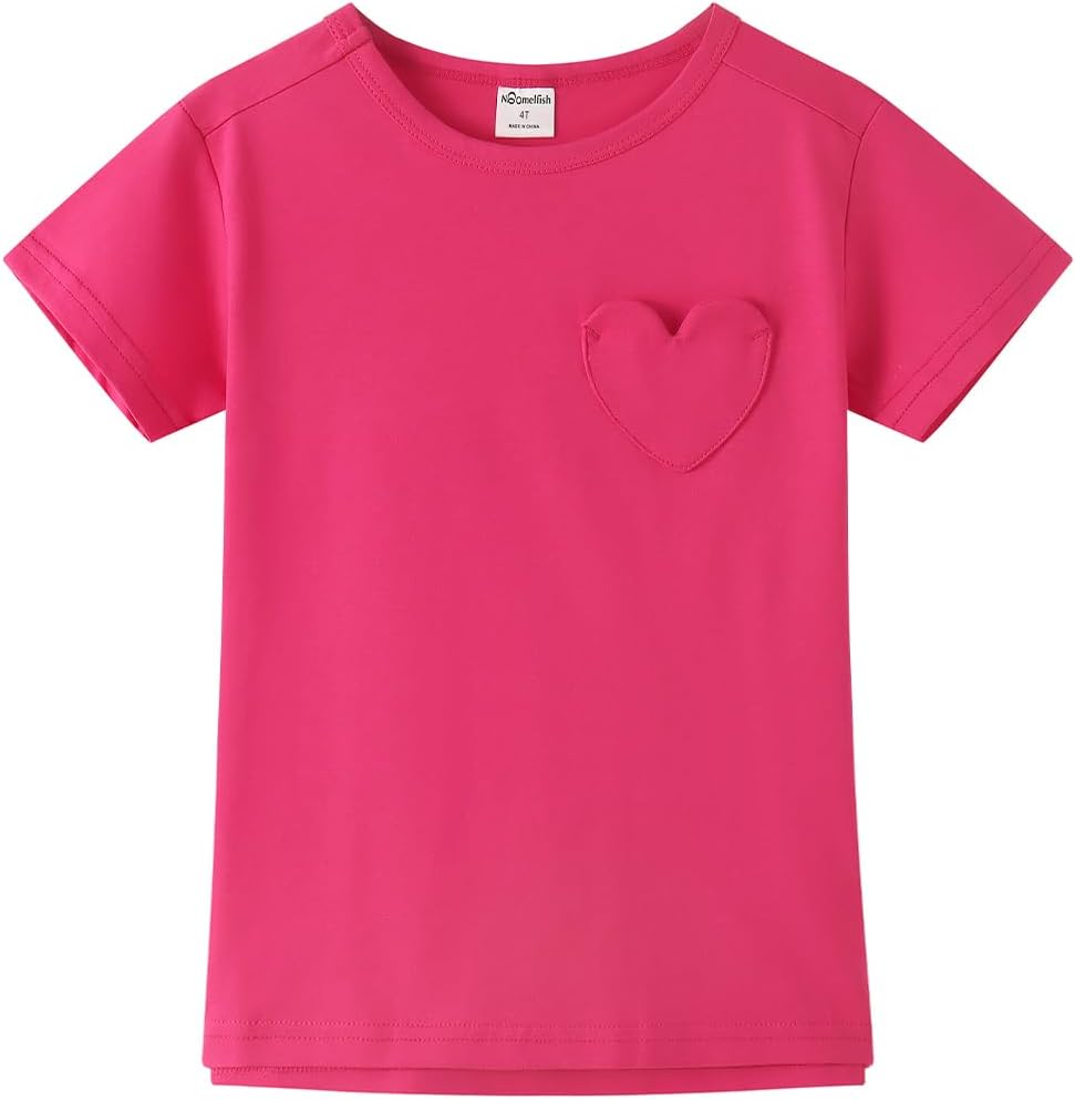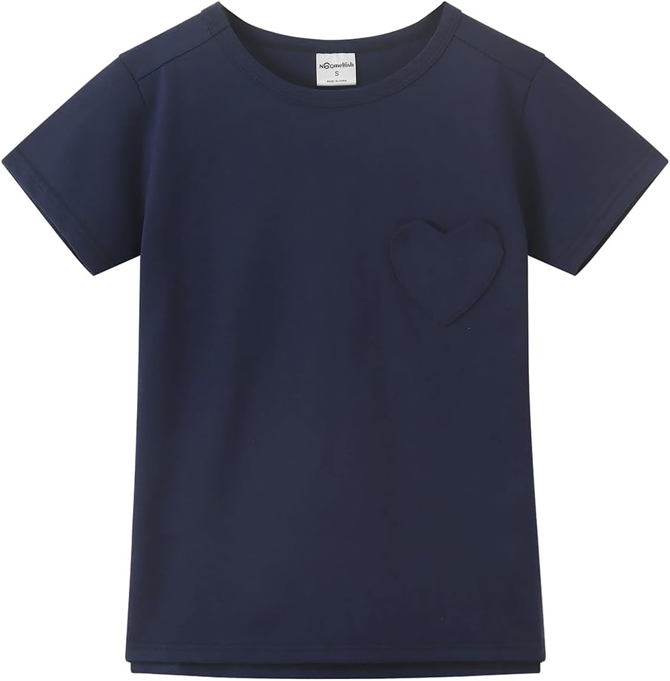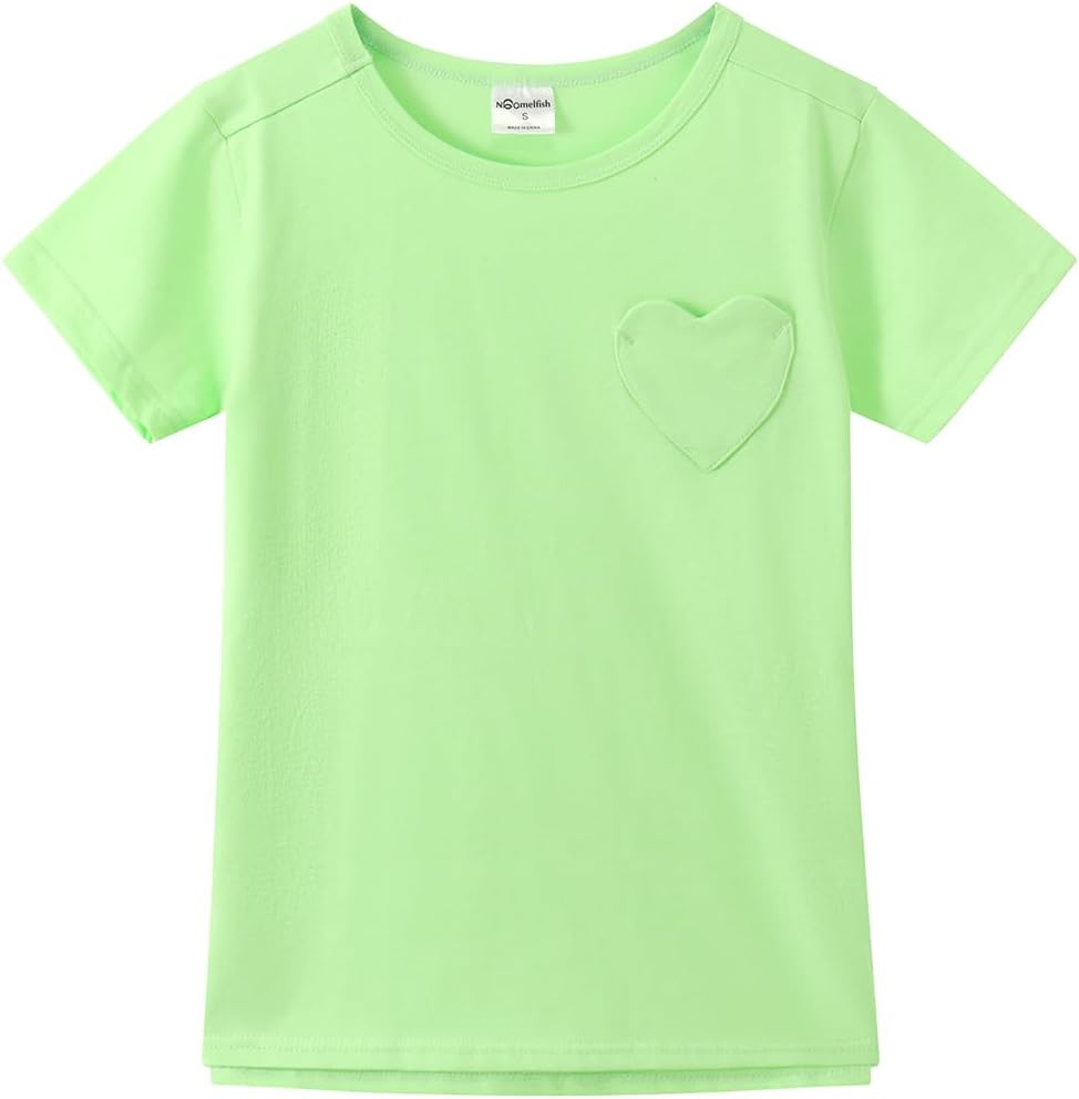 Noomelfish Girls Short Sleeve Heart Pocket T-Shirts Casual Cotton Tee Tops Blouse (5-12 Years)