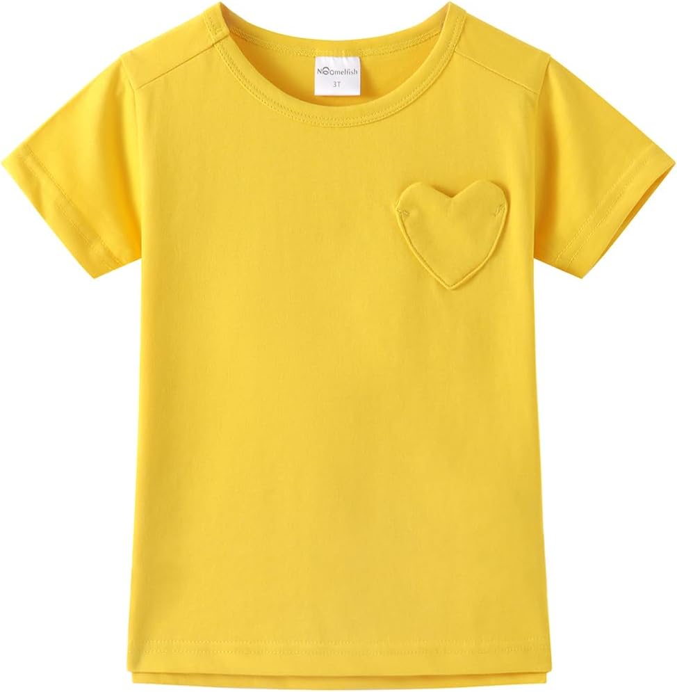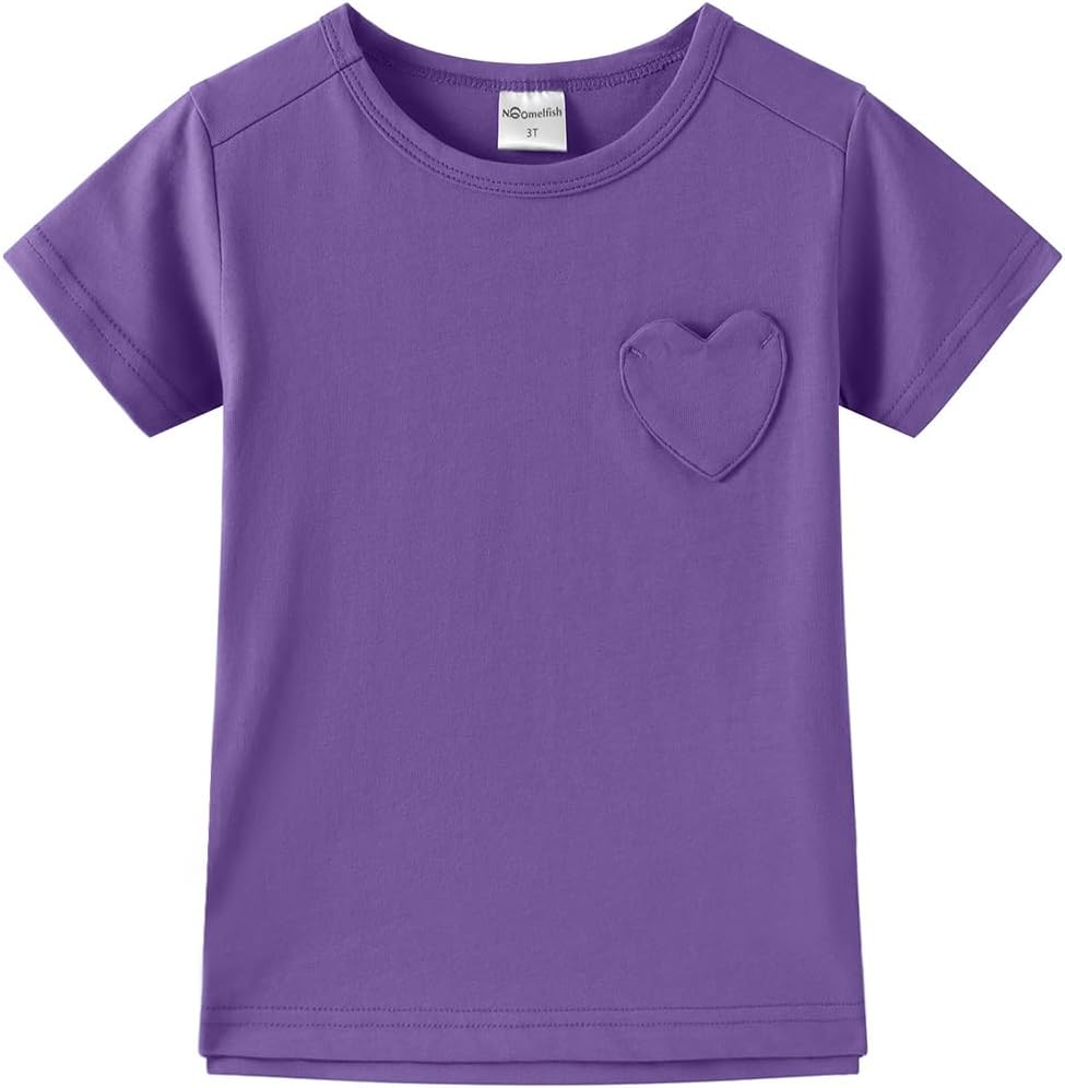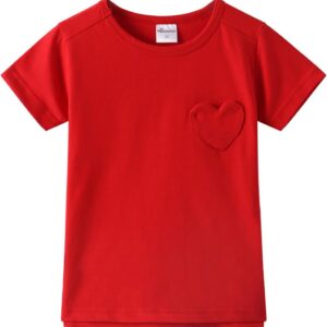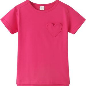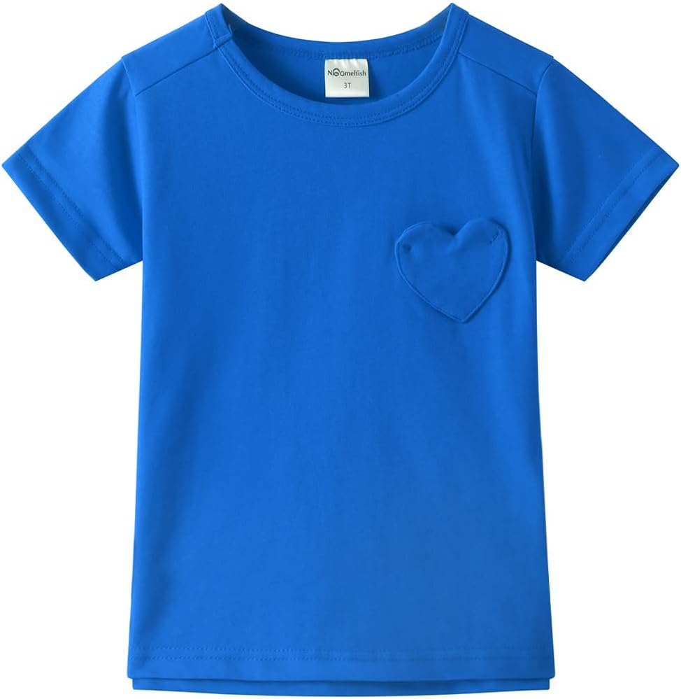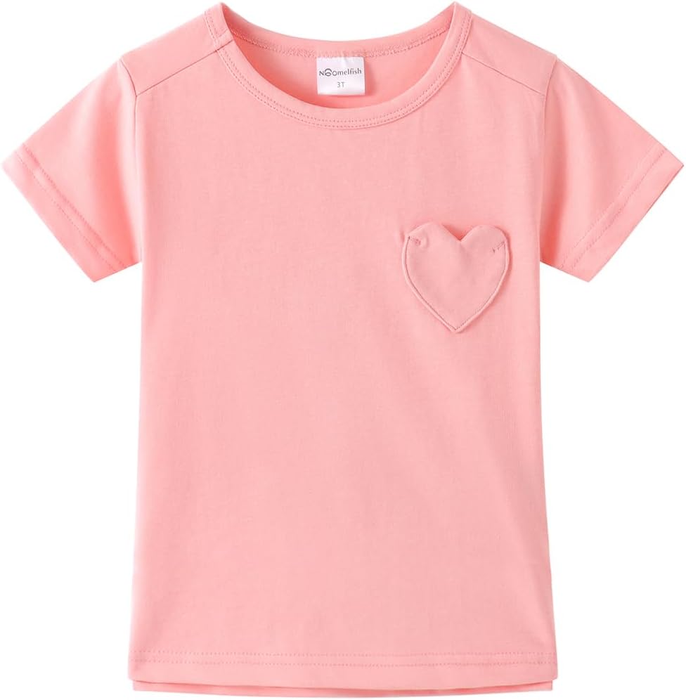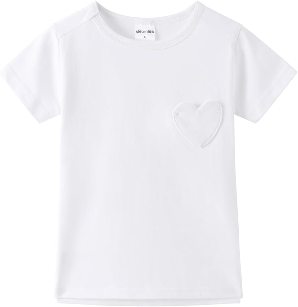 Noomelfish Girls Short Sleeve Heart Pocket T-Shirts Casual Cotton Tee Tops Blouse (5-12 Years)