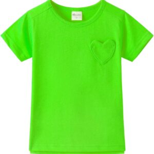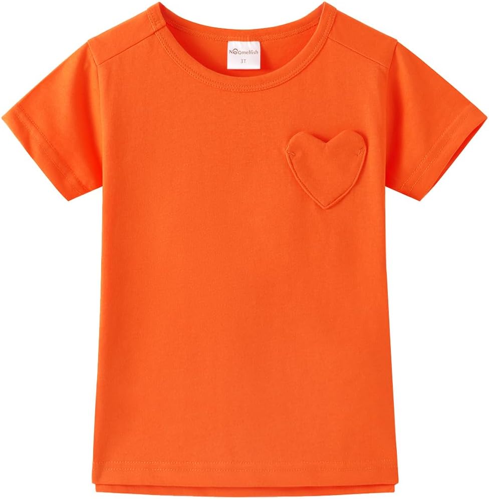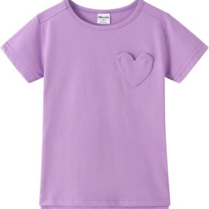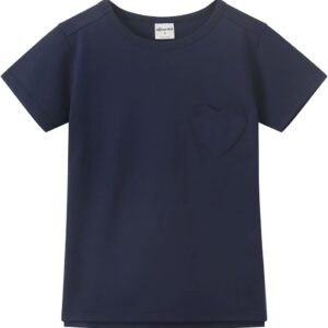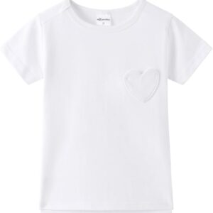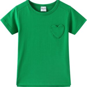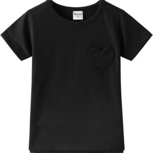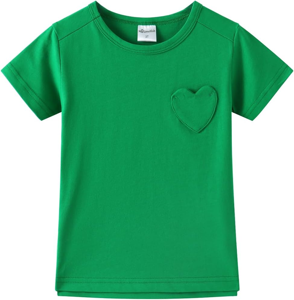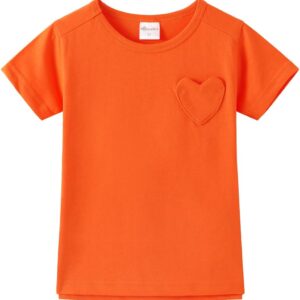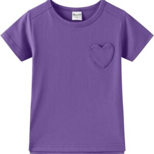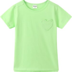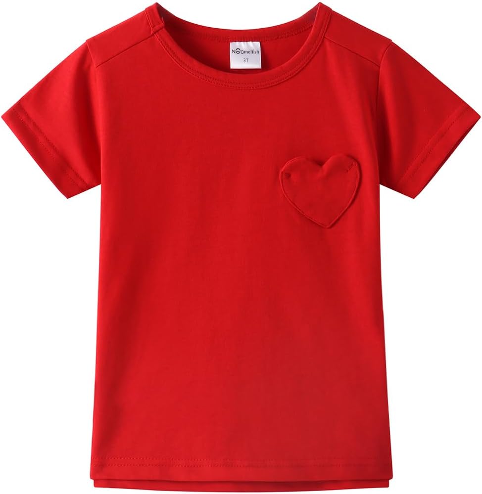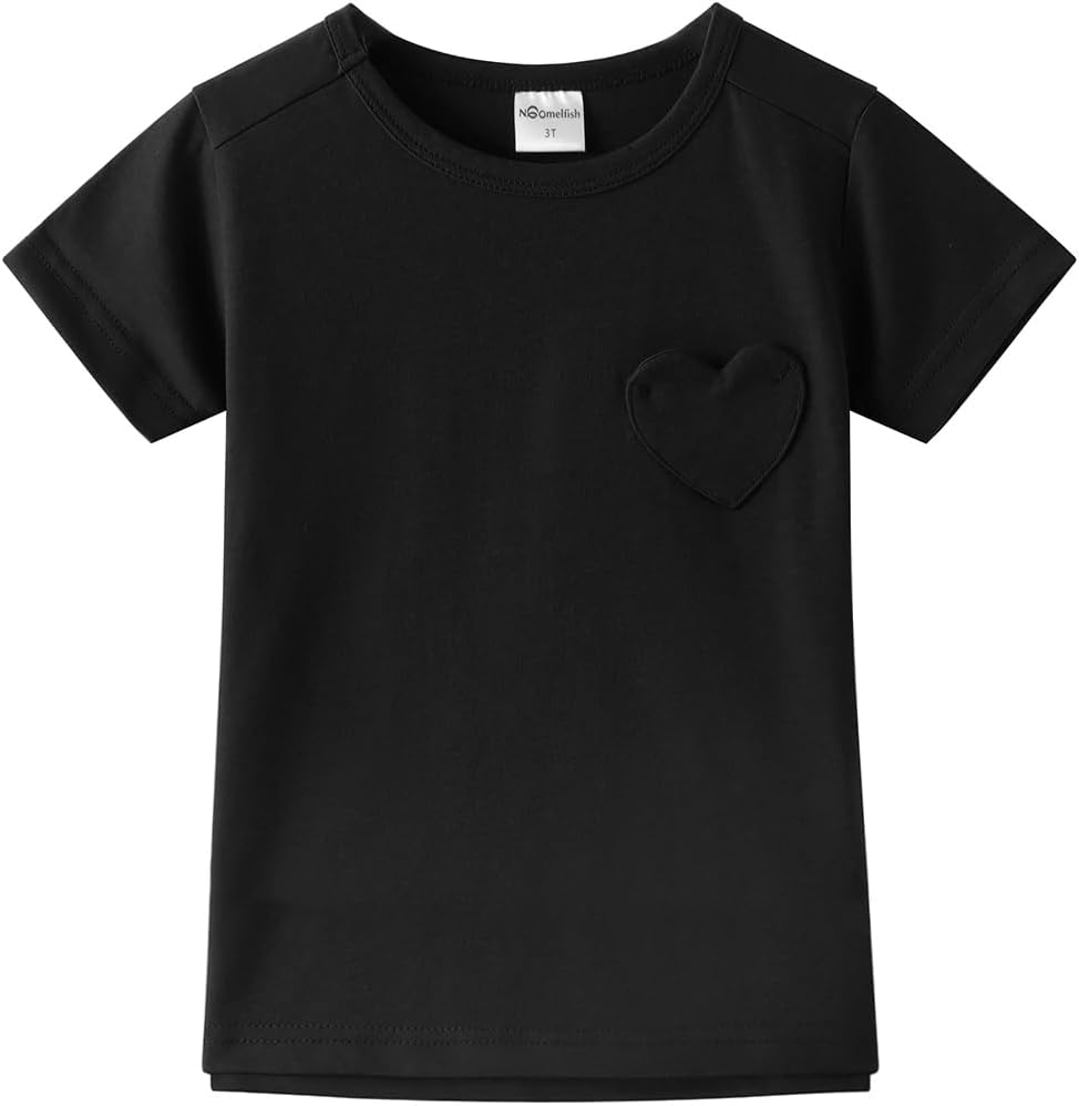 Noomelfish Girls Short Sleeve Heart Pocket T-Shirts Casual Cotton Tee Tops Blouse (5-12 Years)