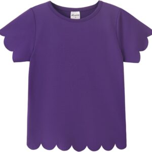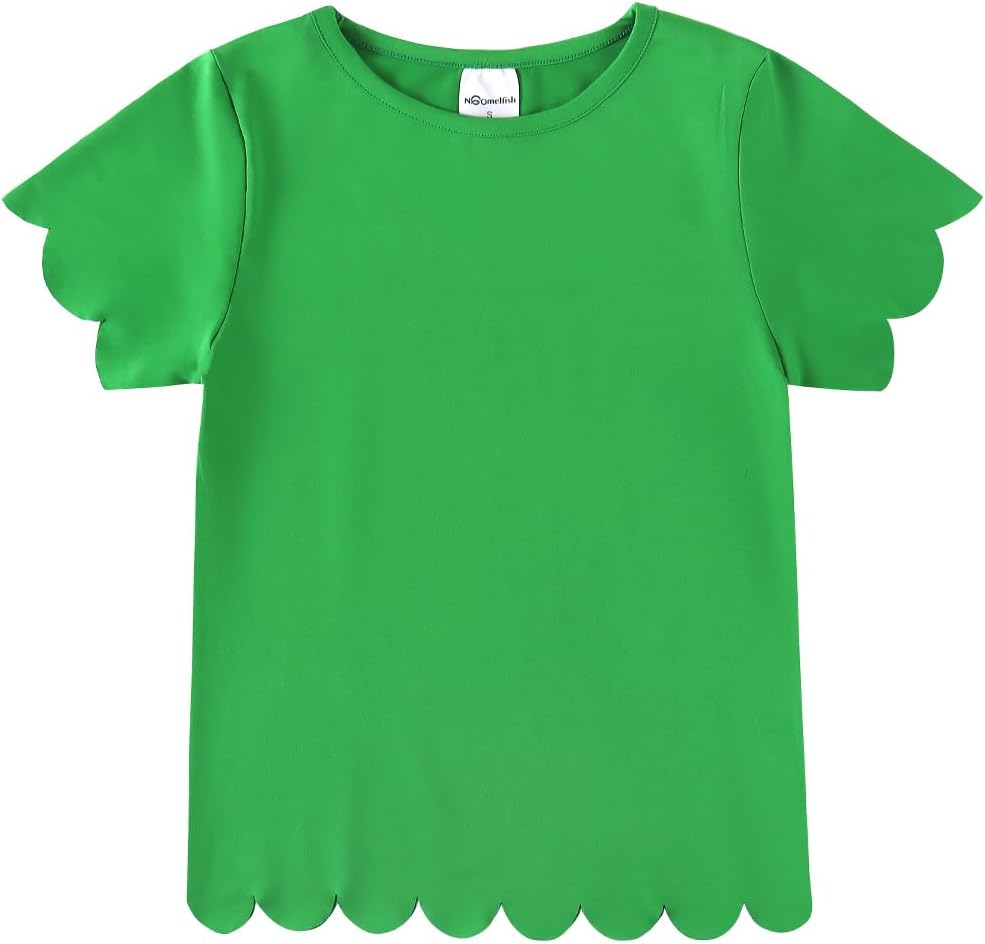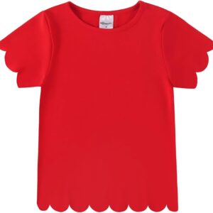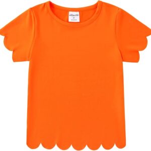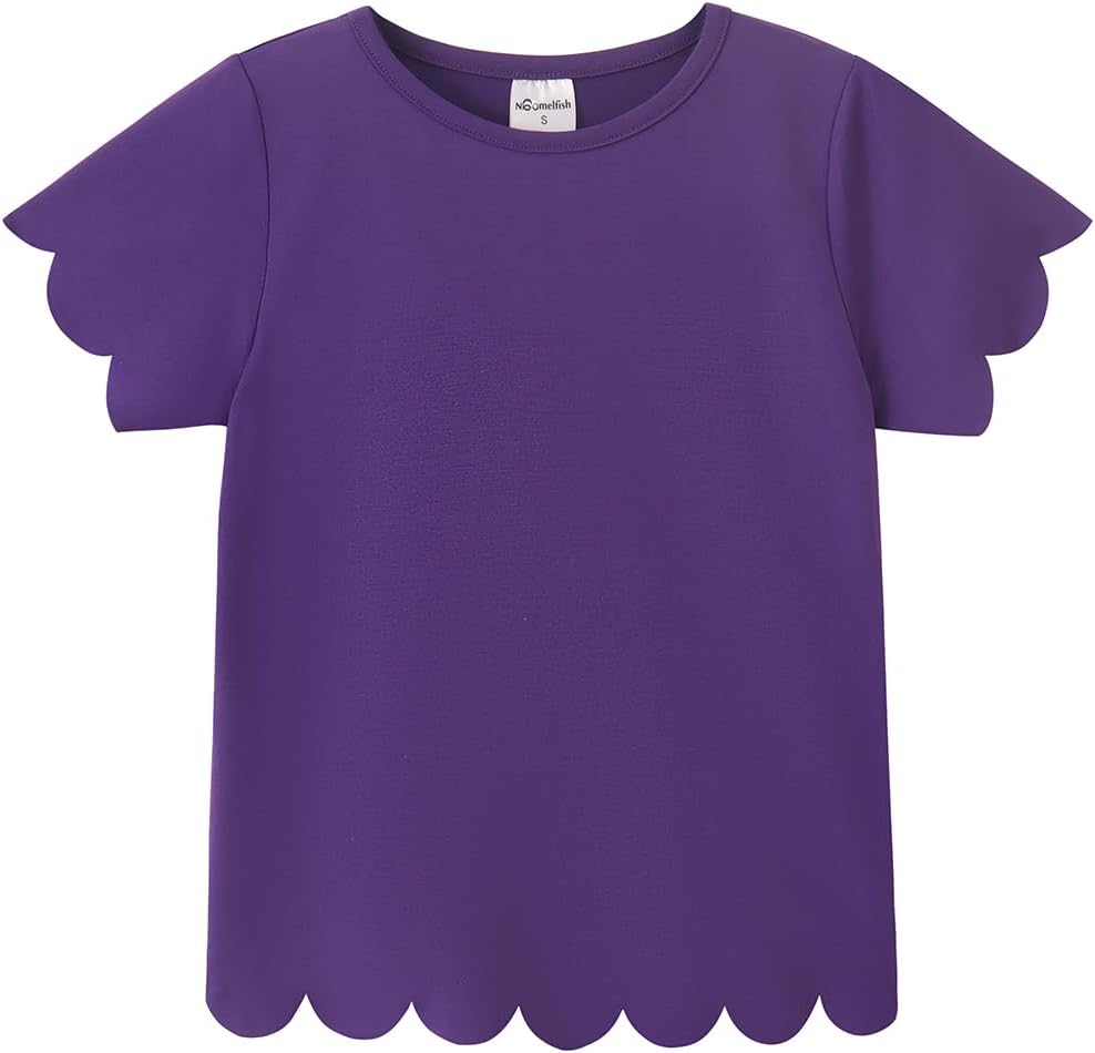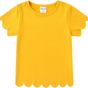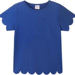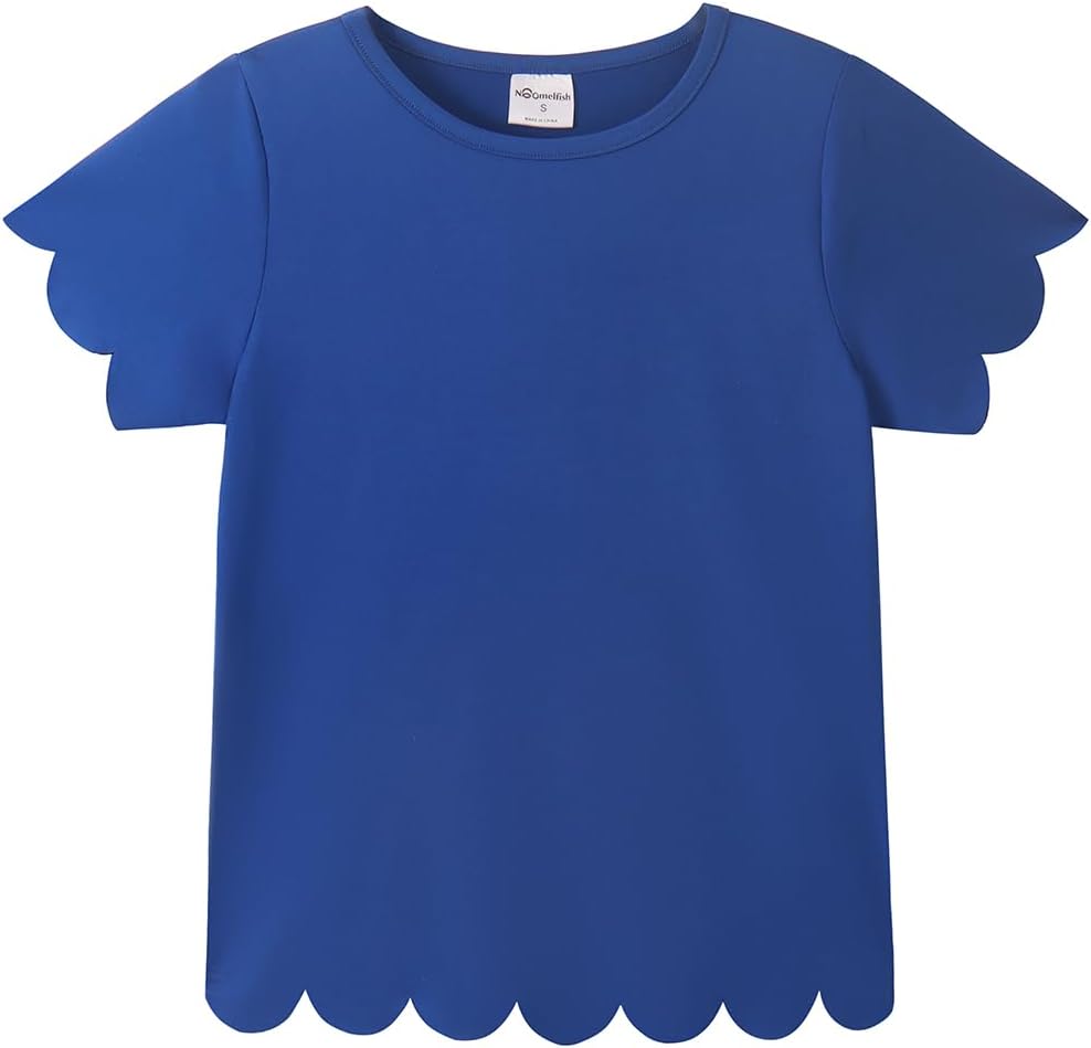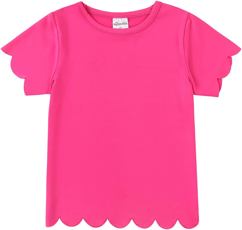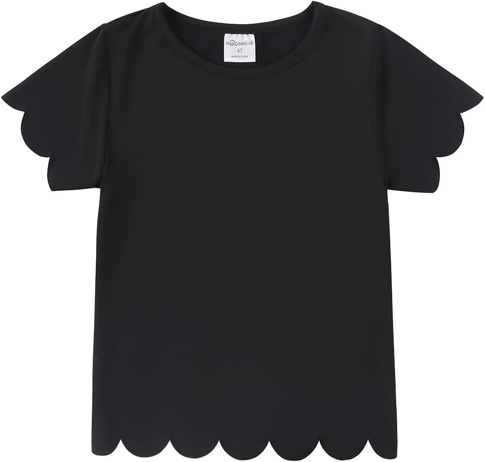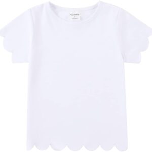 Noomelfish Girls Short Sleeve Scalloped Edge T-Shirts Casual Cute Summer Tee Tops Blouse (5-12 Years)