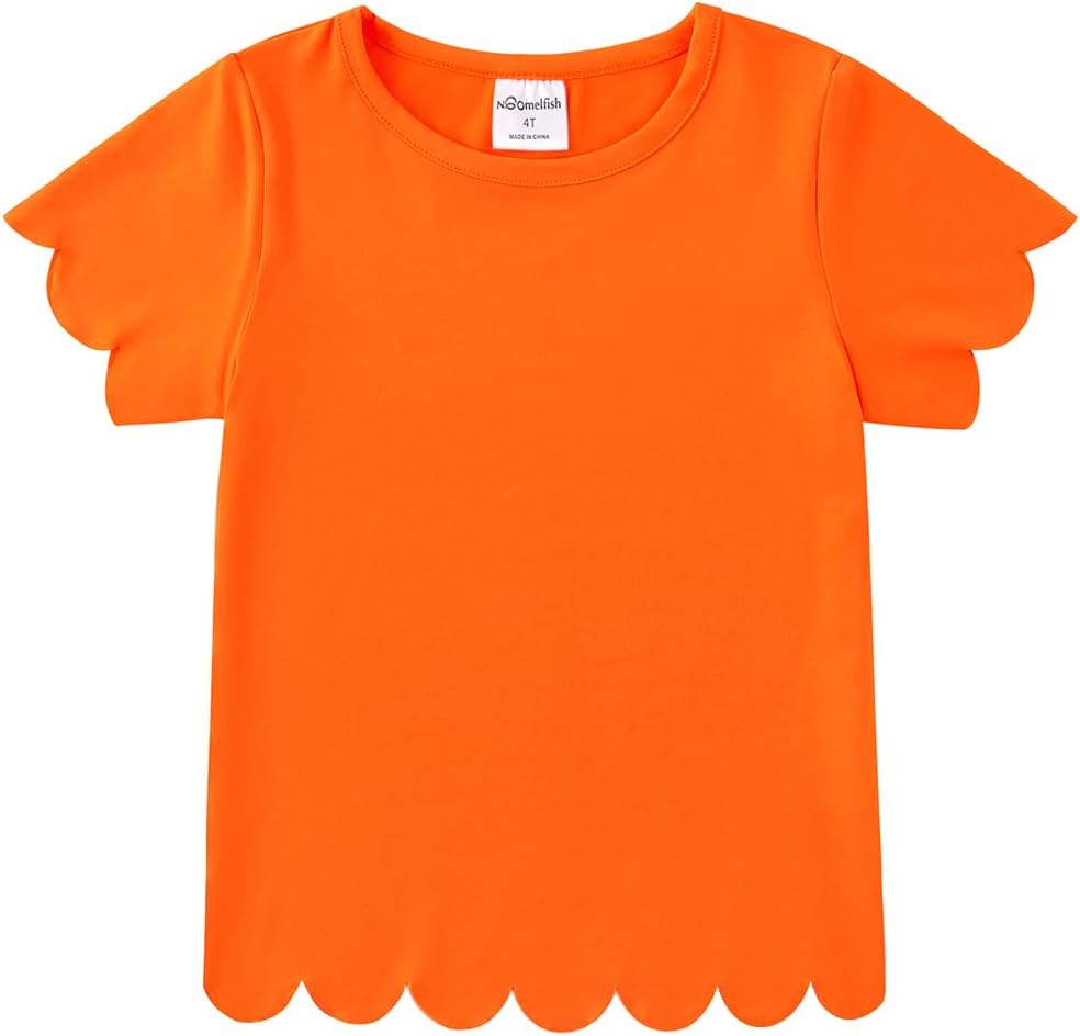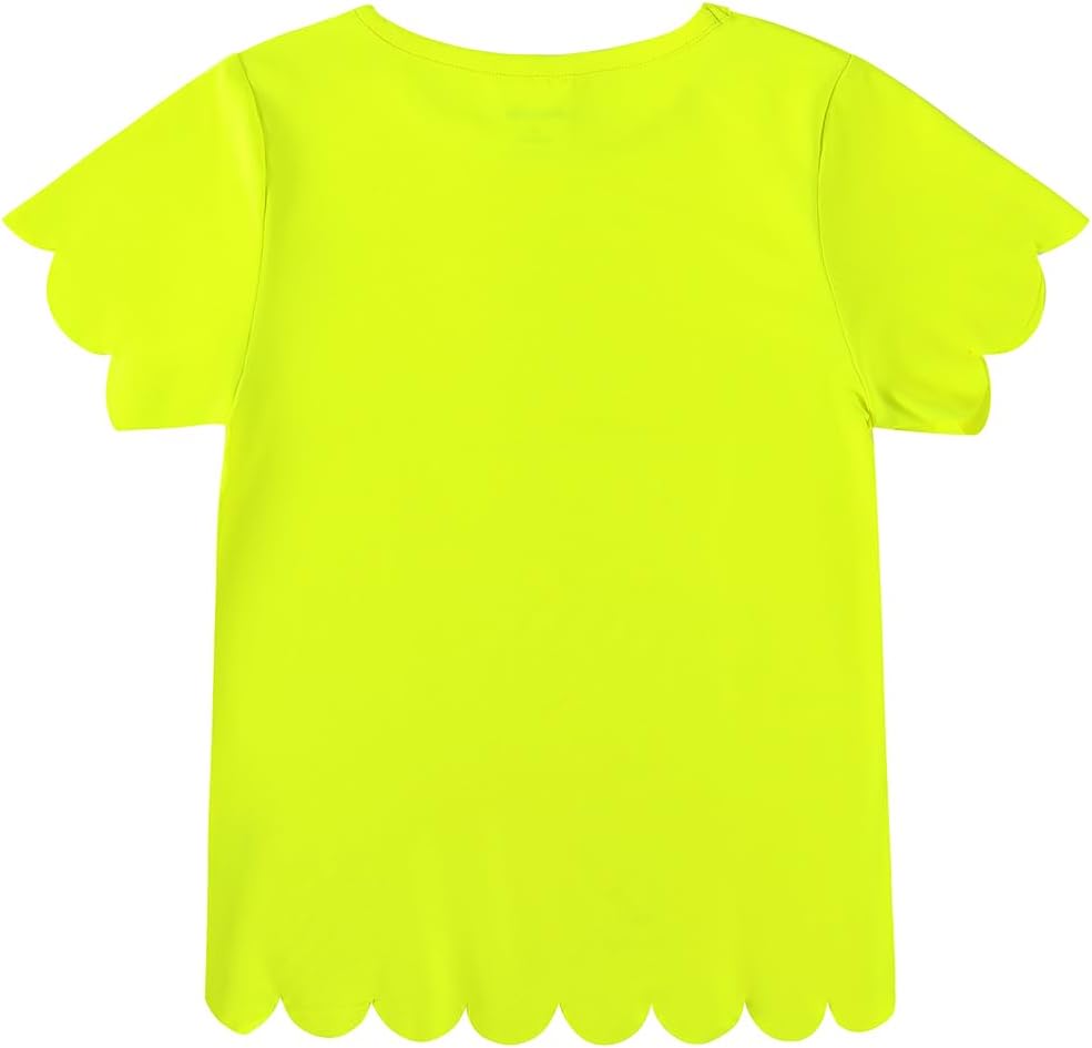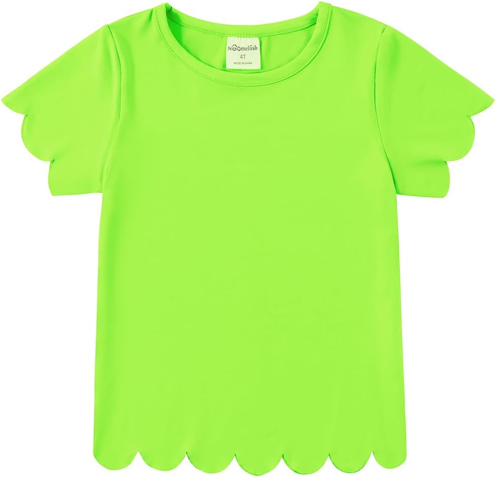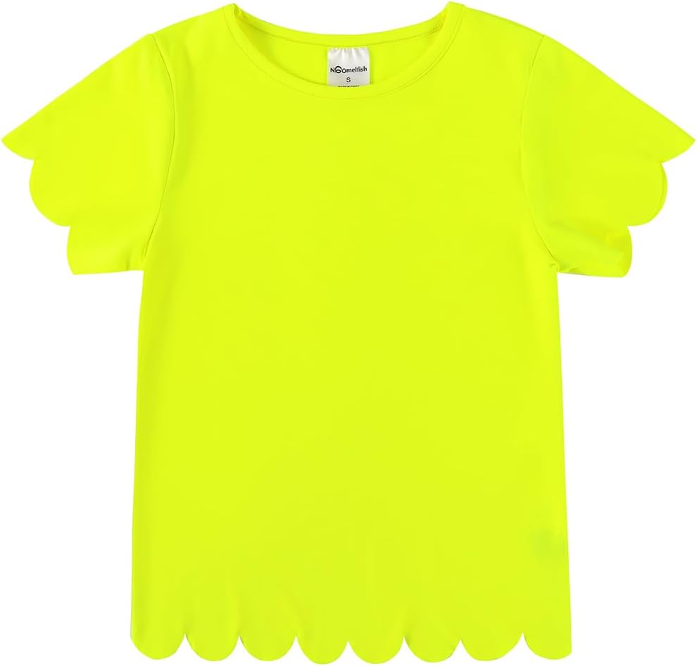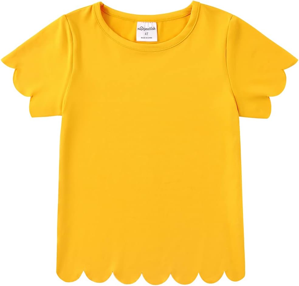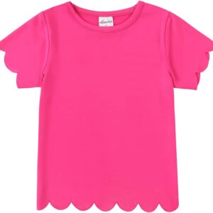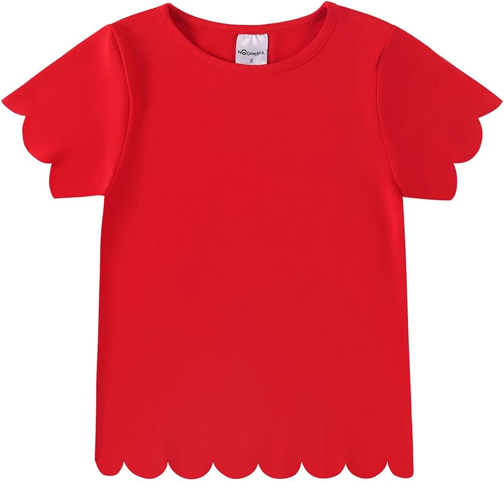 Noomelfish Girls Short Sleeve Scalloped Edge T-Shirts Casual Cute Summer Tee Tops Blouse (5-12 Years)