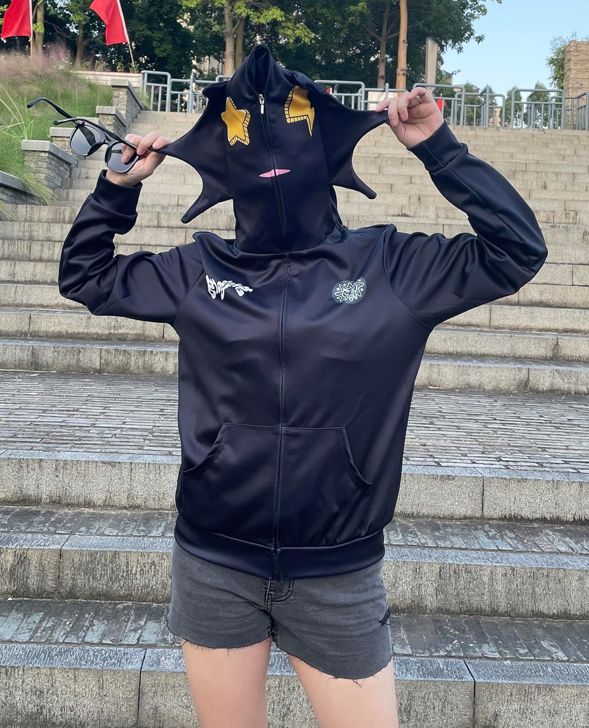 OATSBAS Fun Multi Angle Full Zip Up Hoodie for Men Women y2k Over Face Graphic Hoodies Retro Lazy Style Hoodie