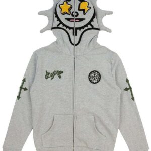 Trendy Y2K Style: Step up your fashion game with this fun multi angle full zip up hoodie for men and women, inspired by retro lazy style and featuring an over face graphic design.