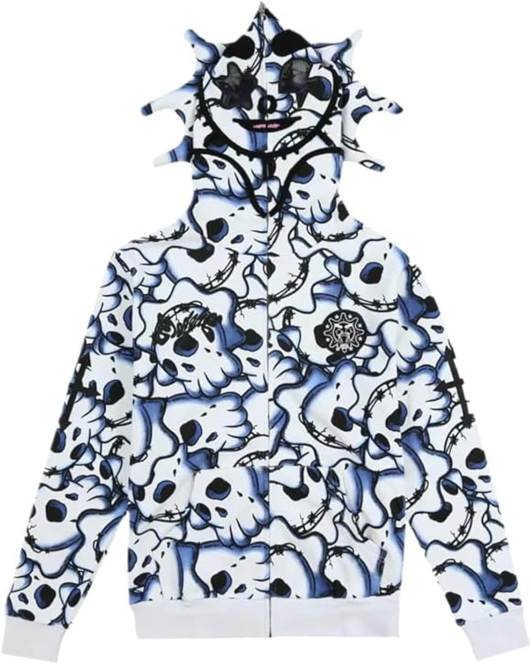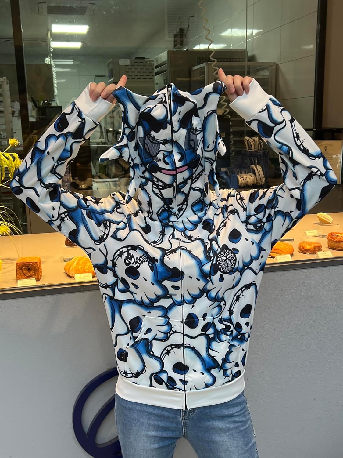 OATSBAS Retro Lazy Style Hoodie for Men Women Fun Multi Angle Full Zip Up Hoodie Oversized Hooded Sweatshirt
