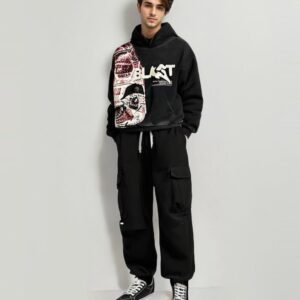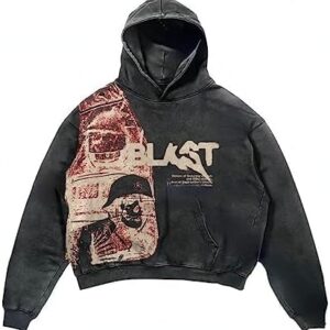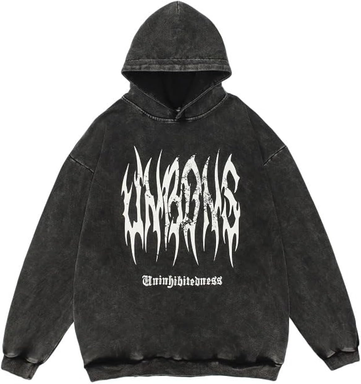Obenie Retro Y2K Hoodie Gothic Casual Alphabet Blast Print Pattern Skull Fashion Hoodie Men Harajuku Men Clothing