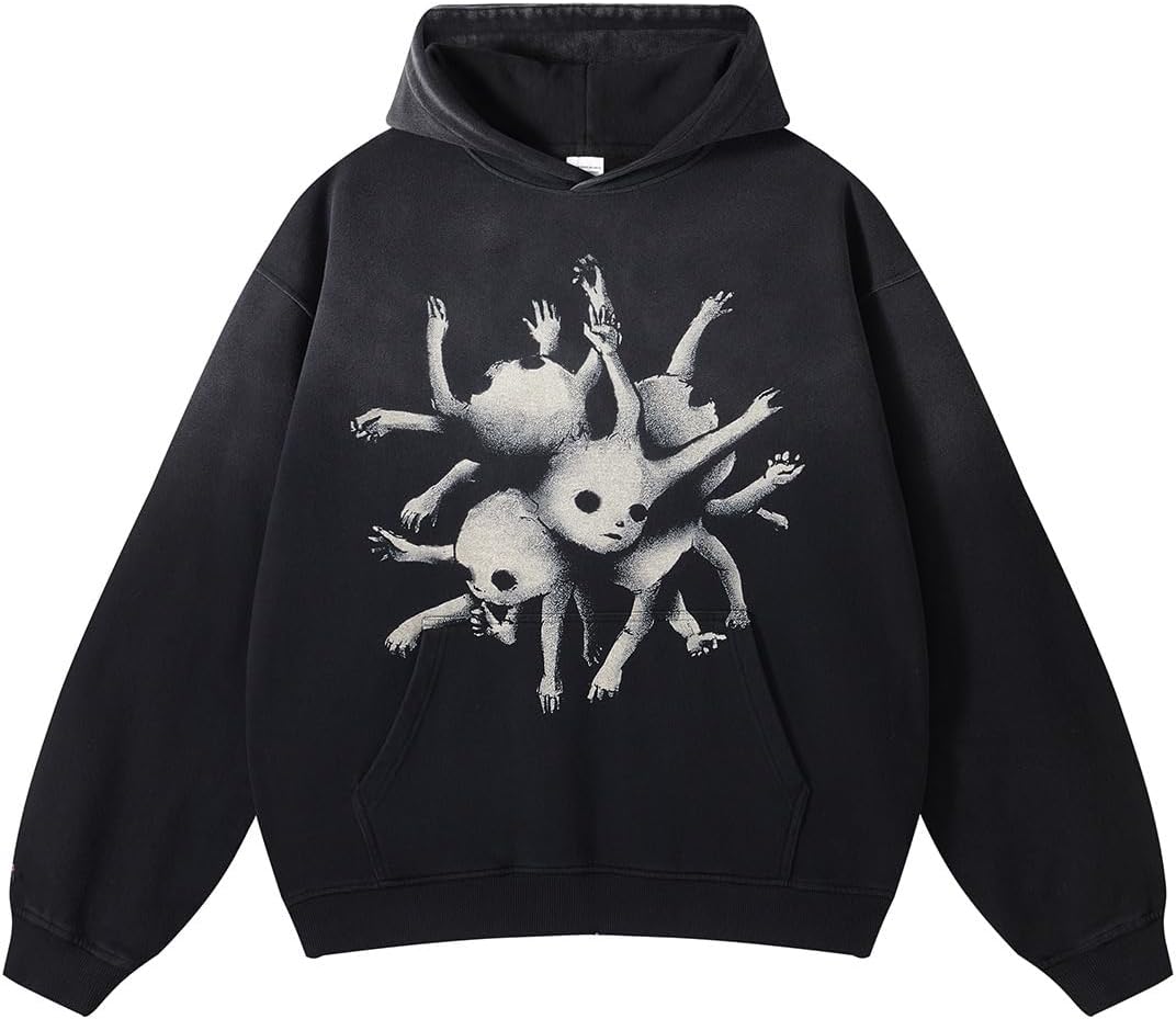 Obenie Halloween Y2K Hoodie Gothic Casual Alphabet Blast Print Pattern Skull …