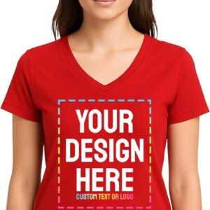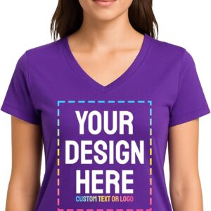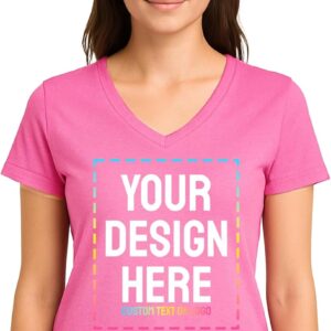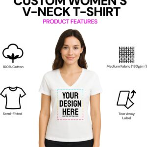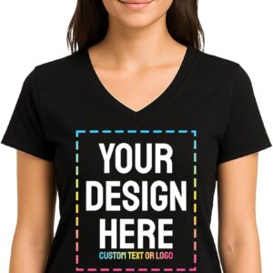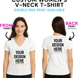 Personalized Women’s V-Neck T-Shirt \u2013 Custom Image & Text, Design Your Own Front & Back Print, Customizable Tee Gift