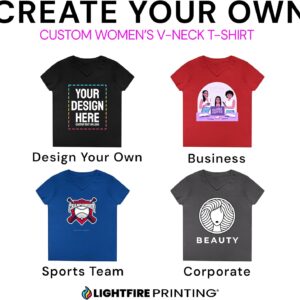 Personalized Women's V-Neck T-Shirt \u2013 Custom Image & Text, Design Your Own Front & Back Print, Customizable Tee Gift