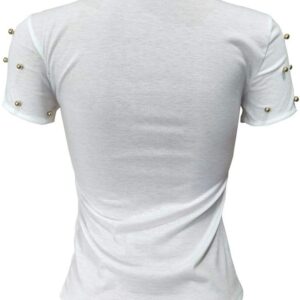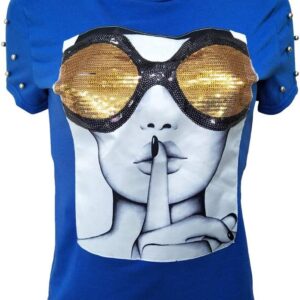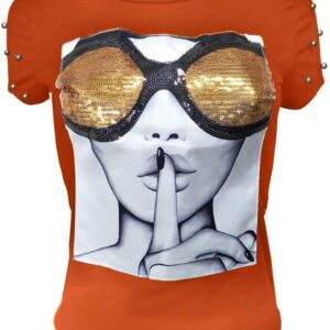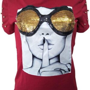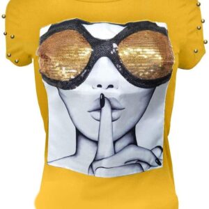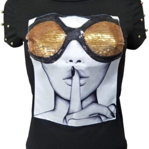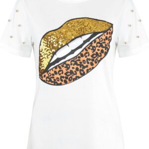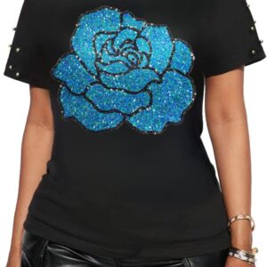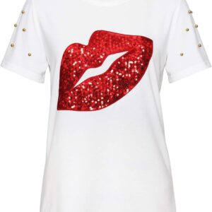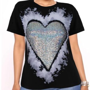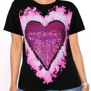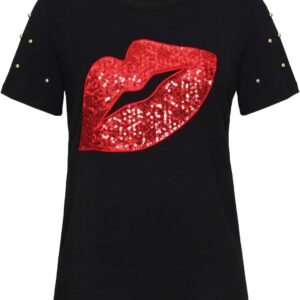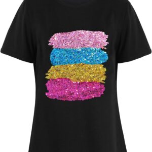 Features: Round Neck, Short Sleeves, Relaxed Fit, Appliques, Casual, Sequin tops for women, Sequined t shirts.