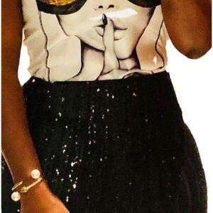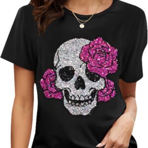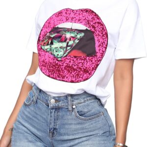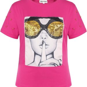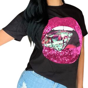 PESION Womens Sparkle Sequined Graphic Tees Blouse