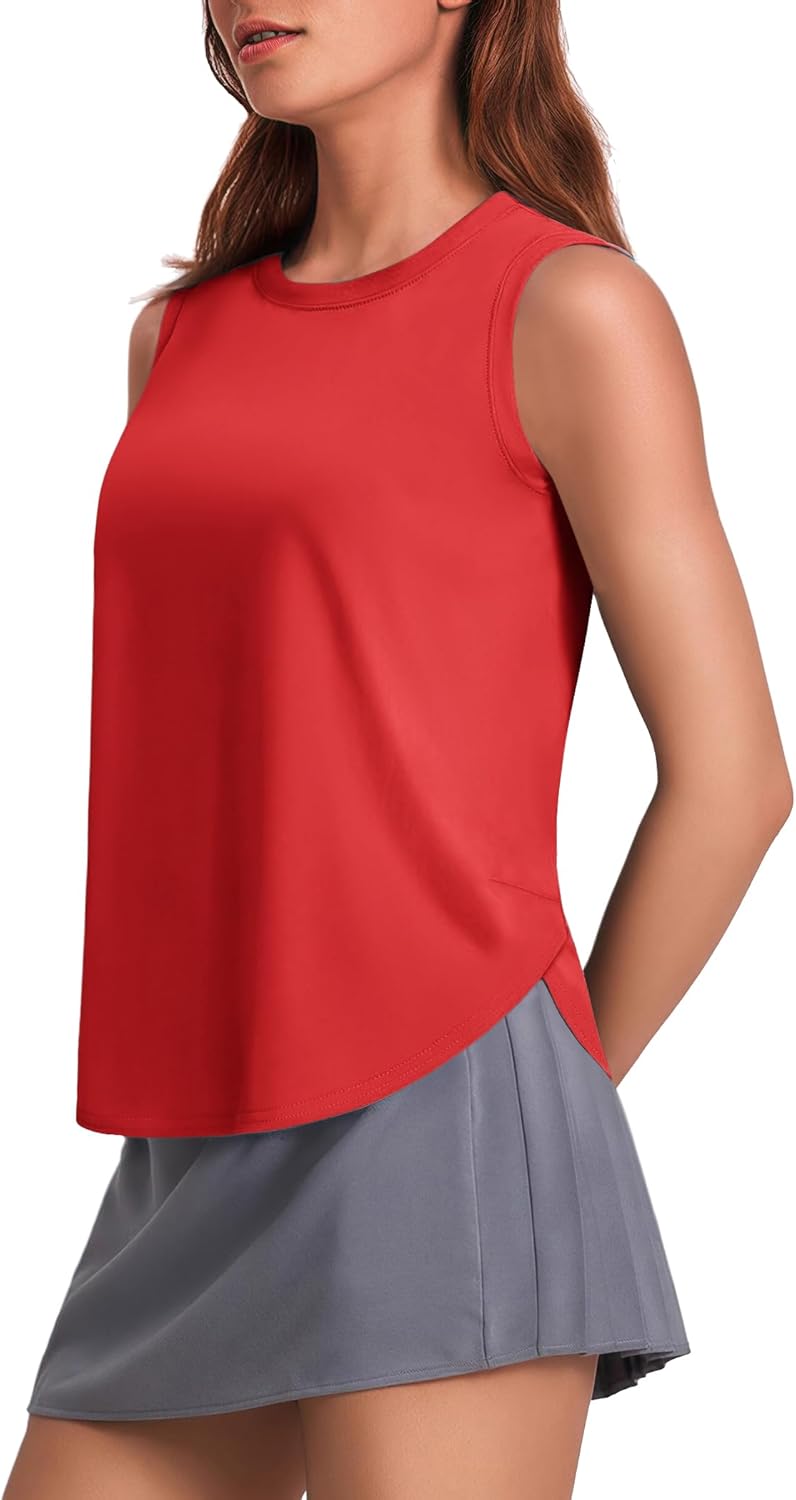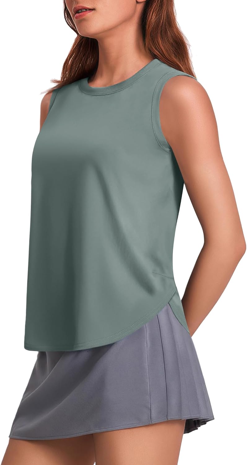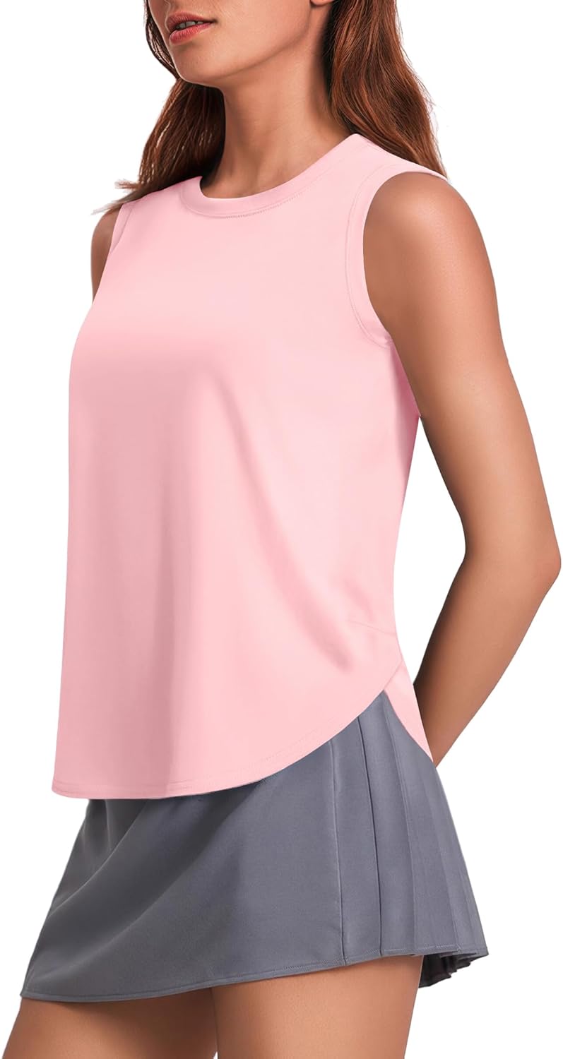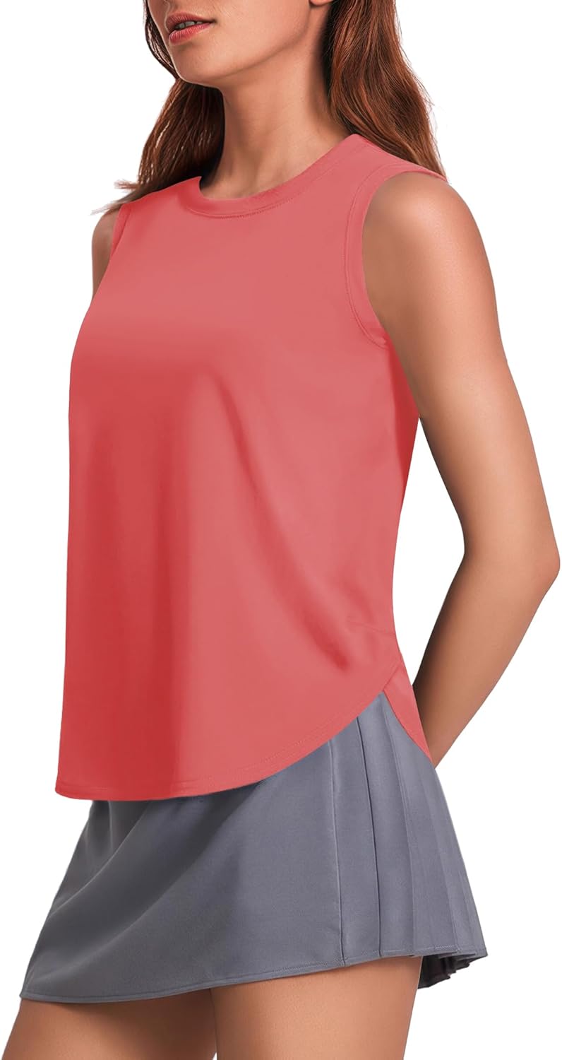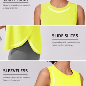 PINSPARK Crew Neck Workout Sleeveless Shirts for Women with Side Slites