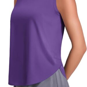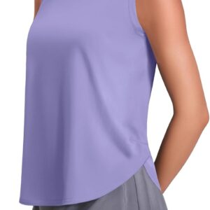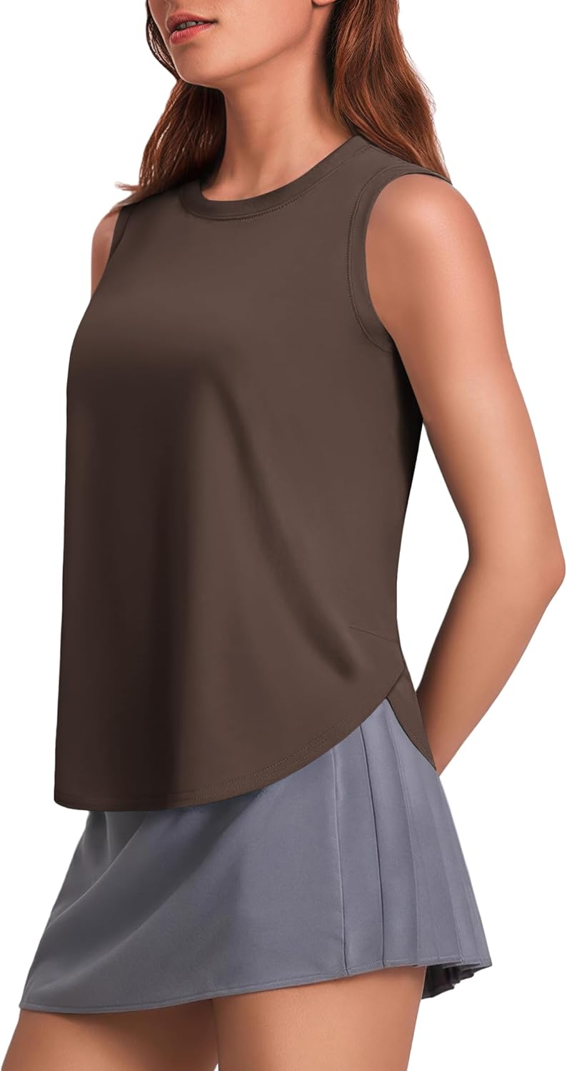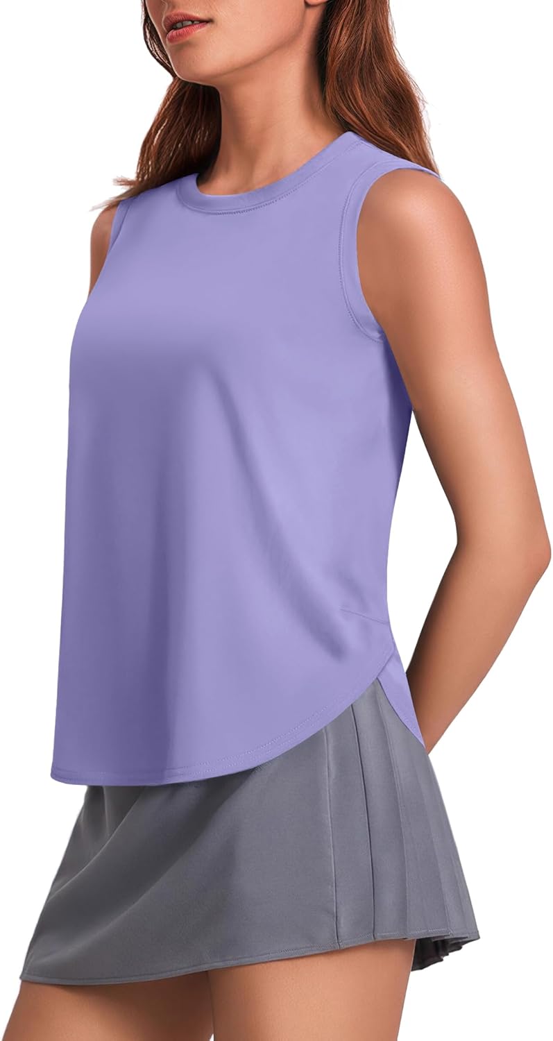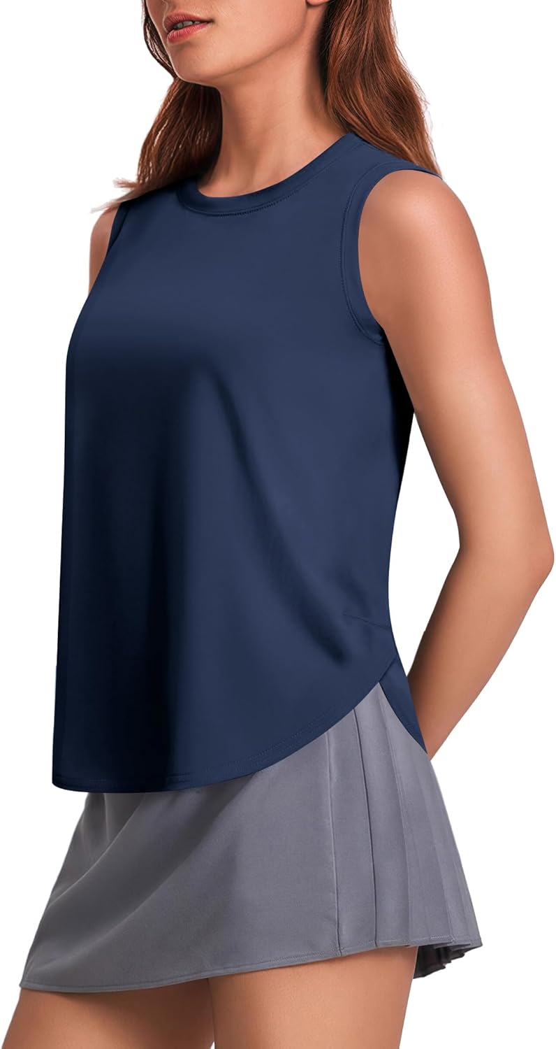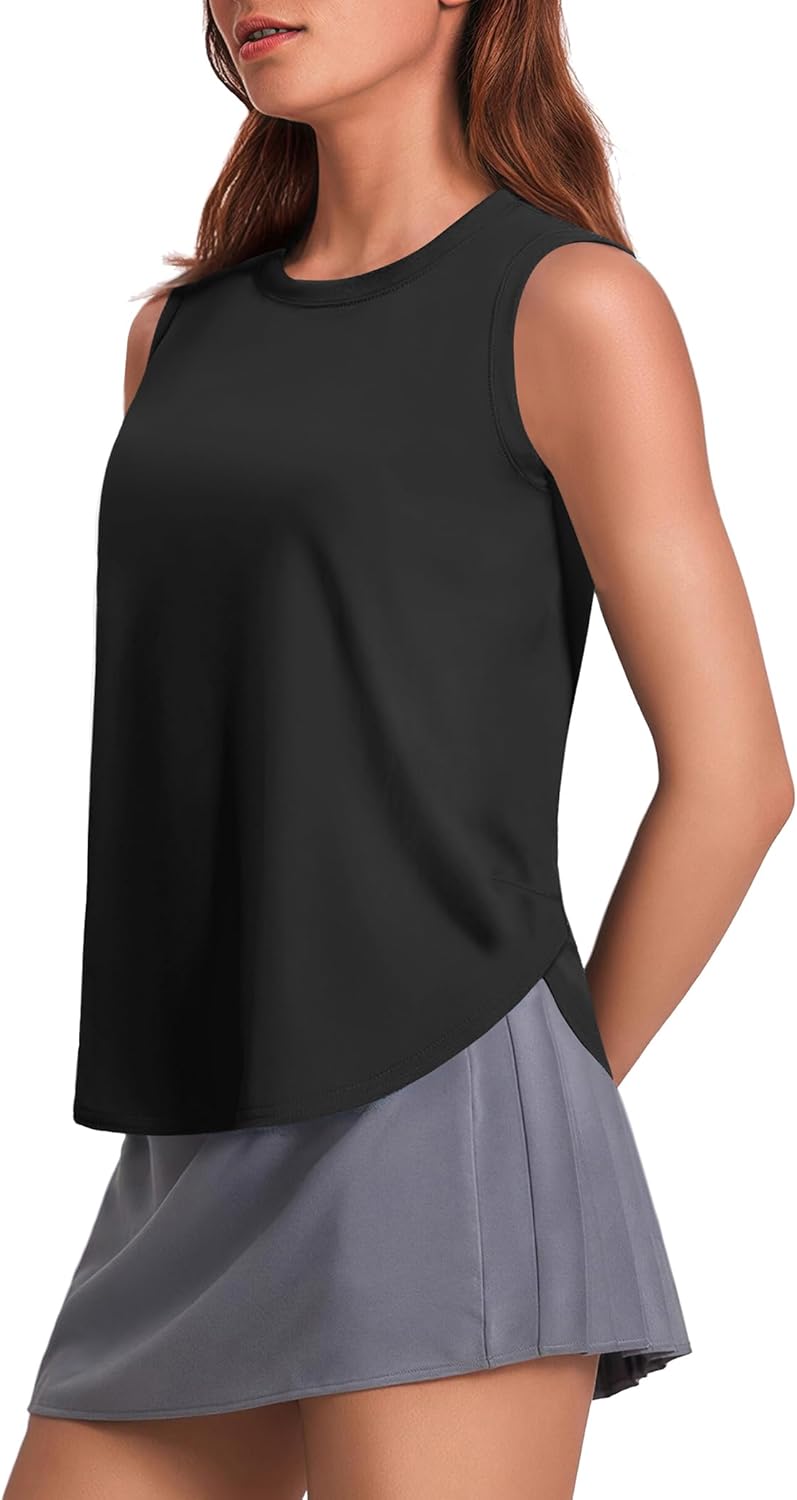 PINSPARK Crew Neck Workout Sleeveless Shirts for Women with Side Slites