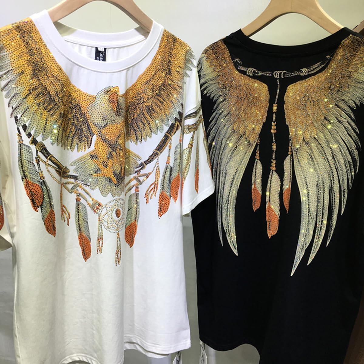 Plus Size Graphic Tees for Women Eagle Rhinestone Printed Tops Loose Fit Mens T Shirts Short Sleeve Oversized Streetwear