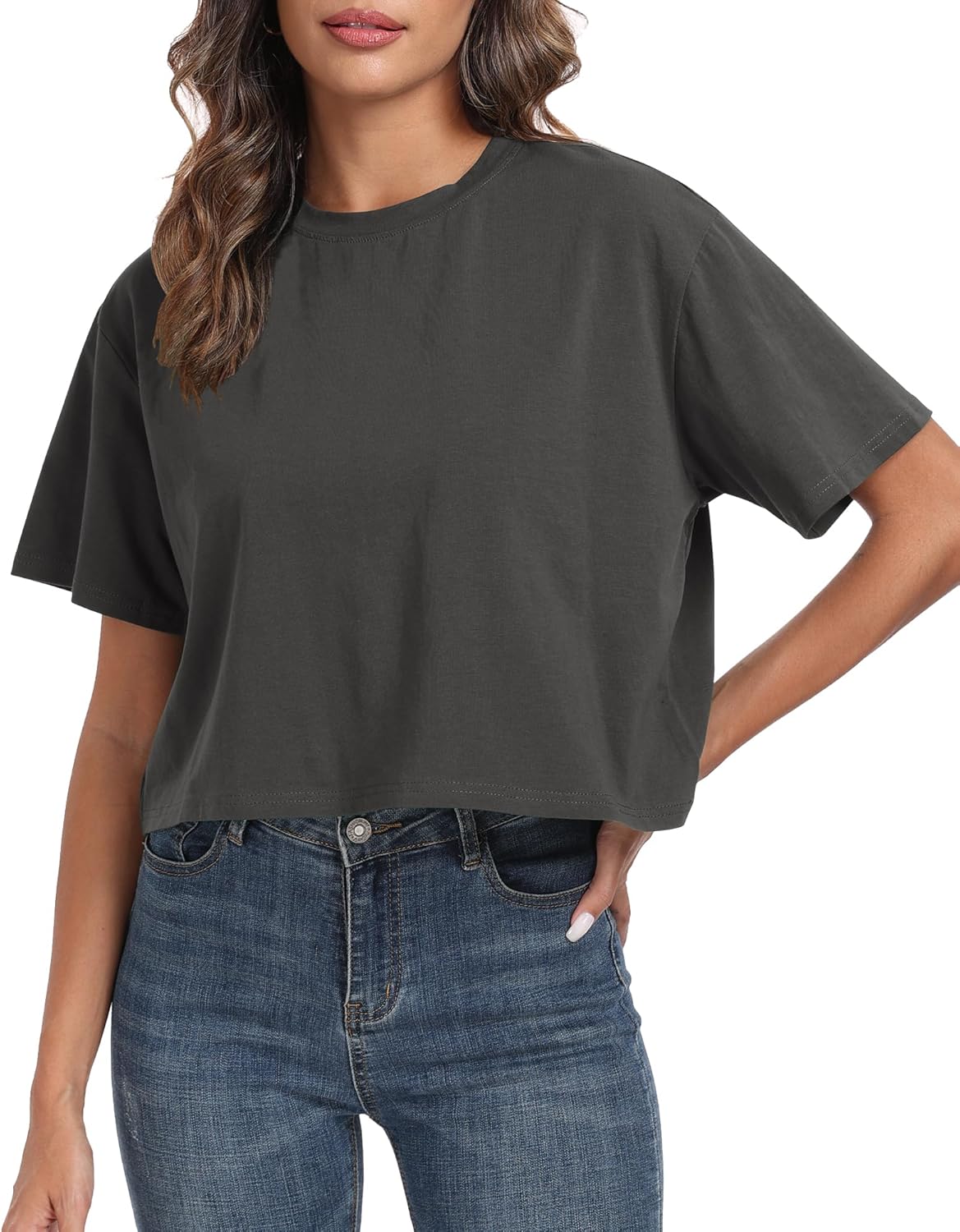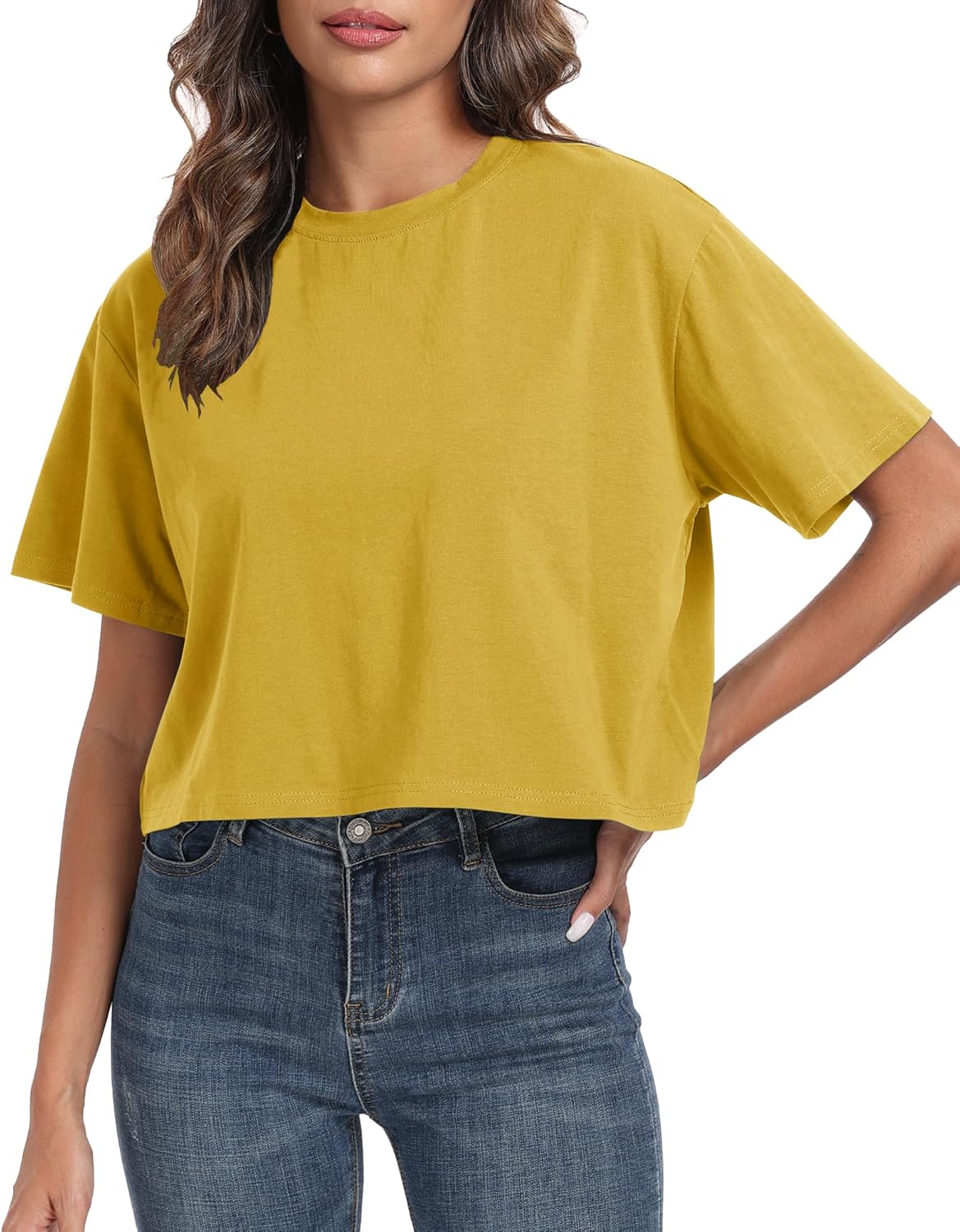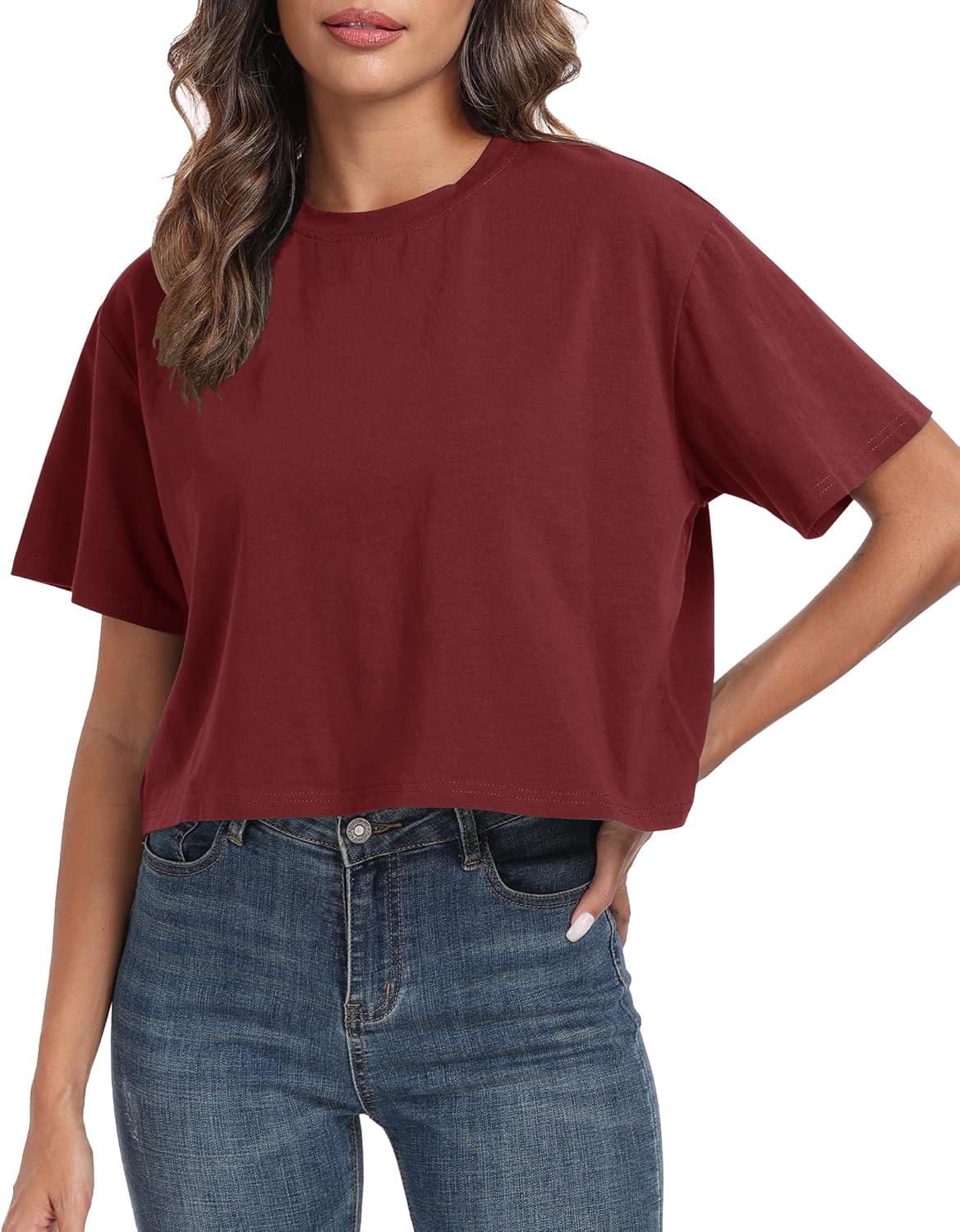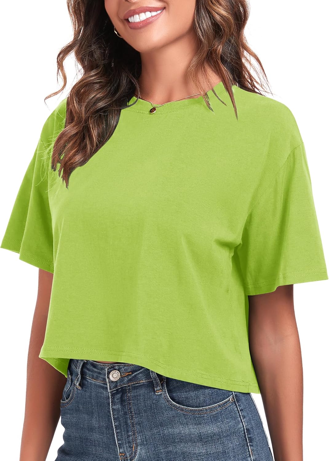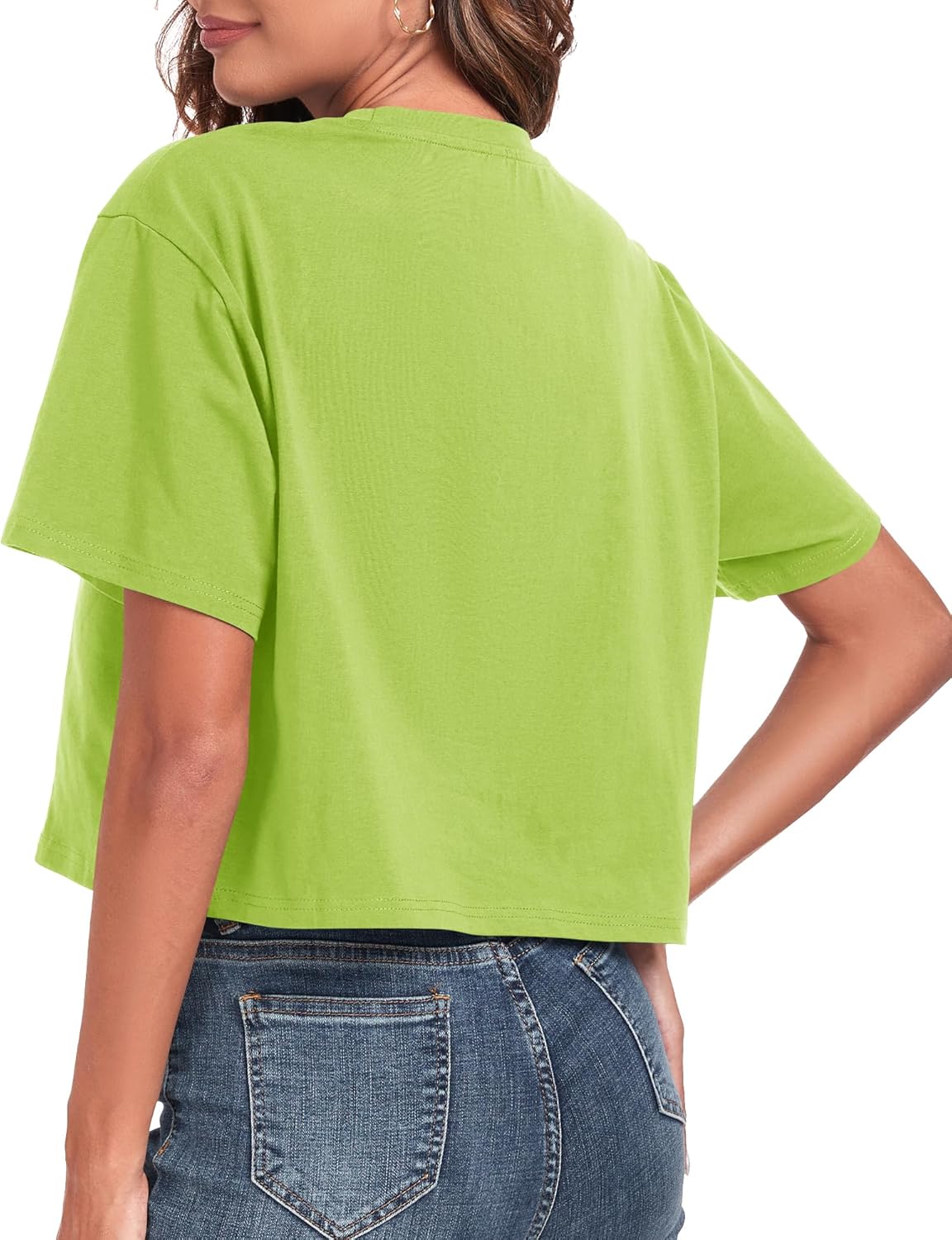 Boxy V Neck Short Sleeve Oversized Crop Tops