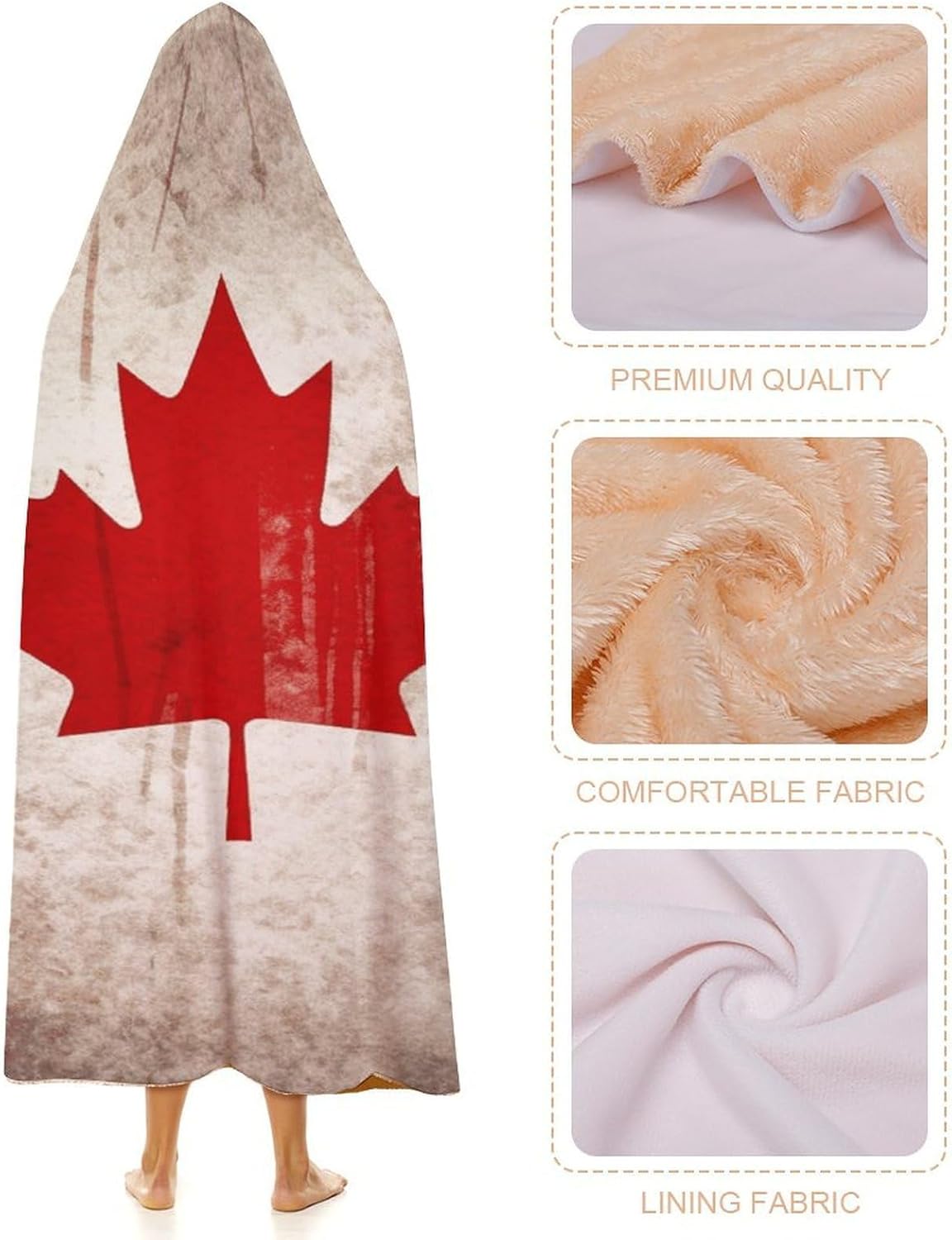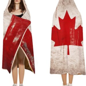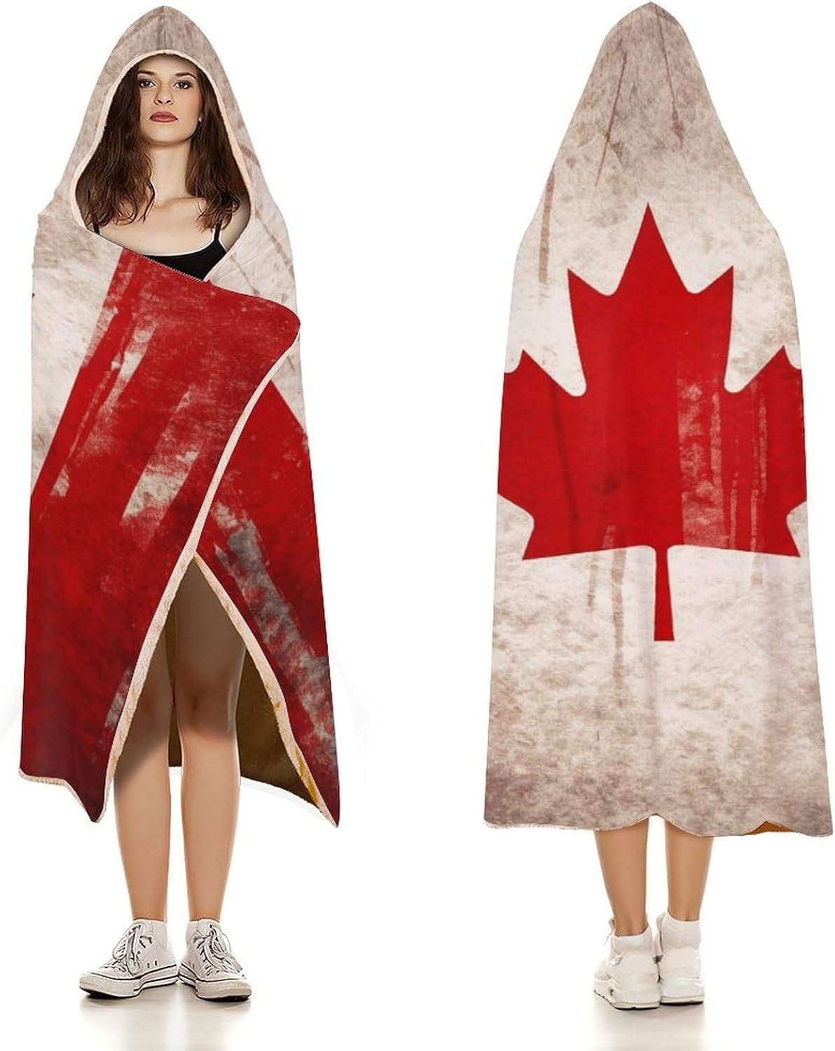 If You Are Interested, Come and Try Retro Canada Flag Hooded Blanket Adult.