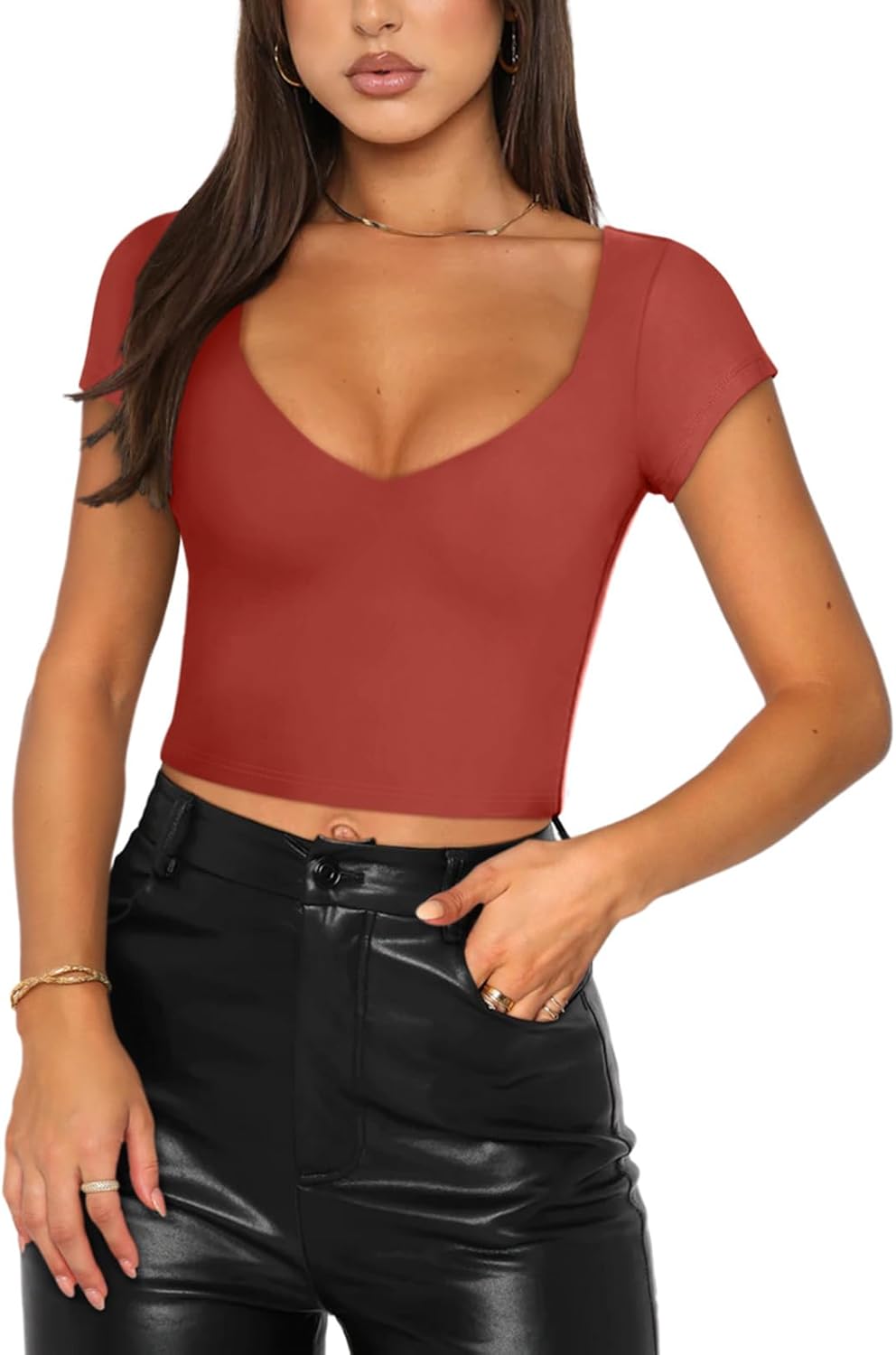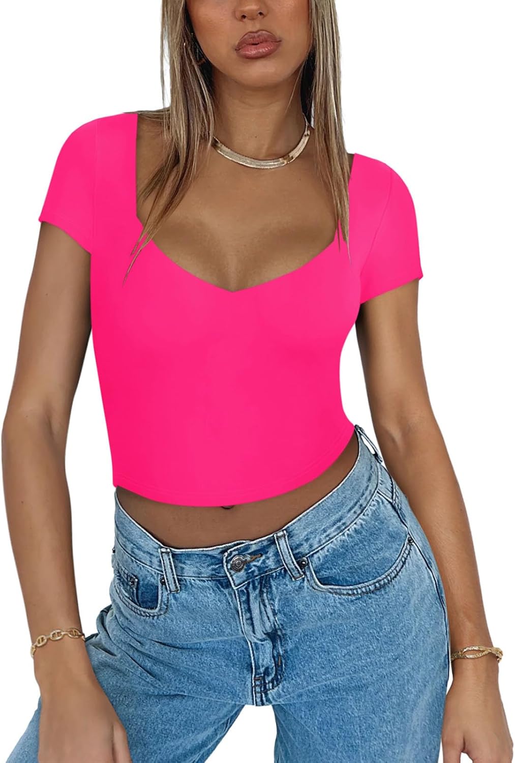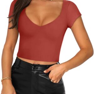 Women's Sexy V Neck Short Sleeve Slimming Going Out Crop Tops