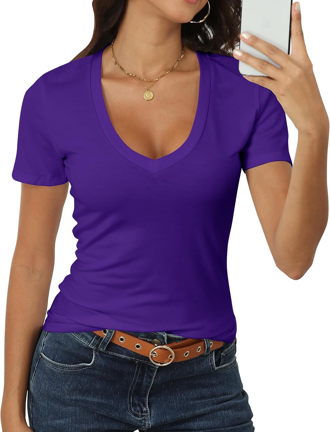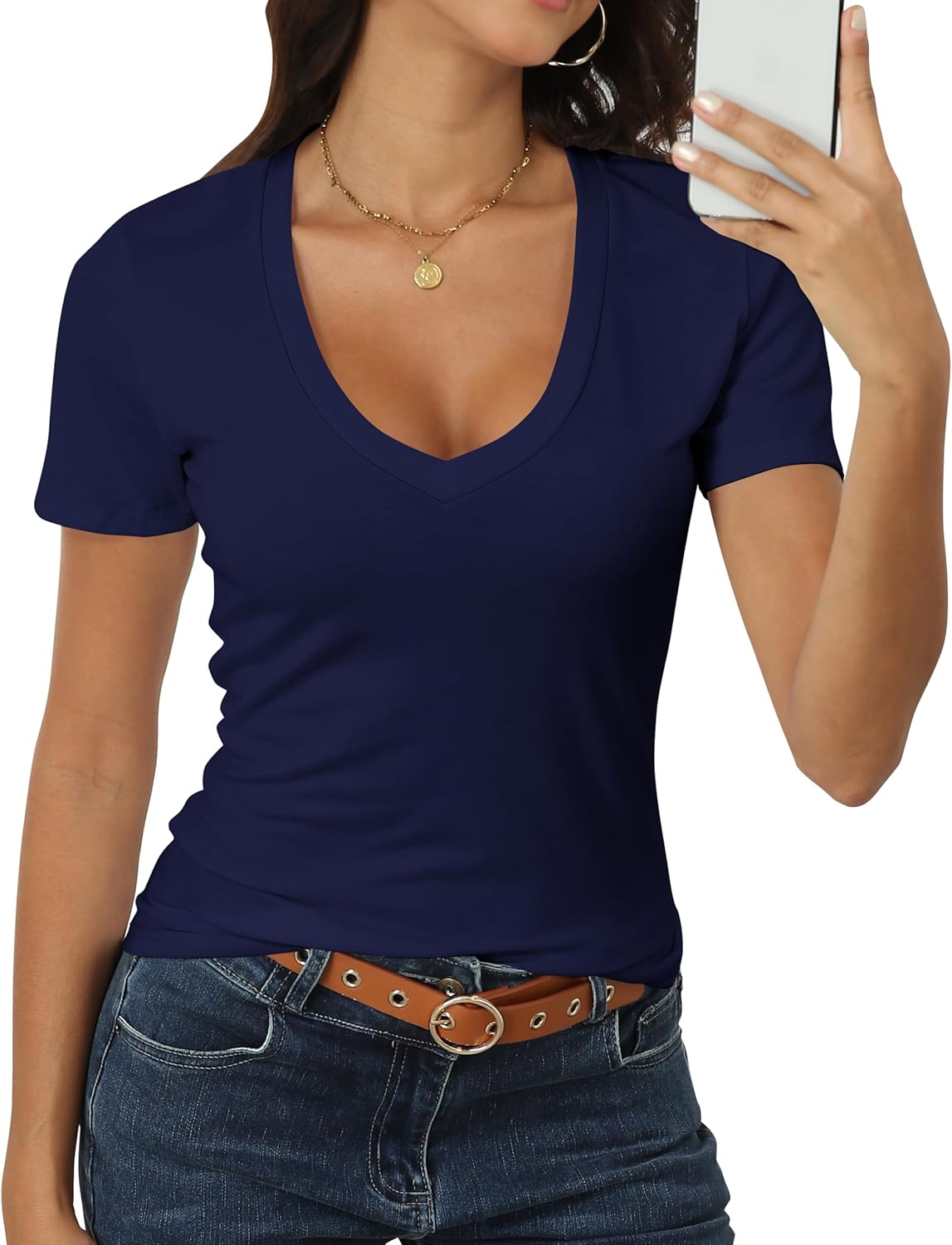 - Features: Sexy Plunging V Neck, Summer Tops for Women, Short Sleeve Fitted Shirt, Casual Basic Tee Shirts, Solid Color Shirts.