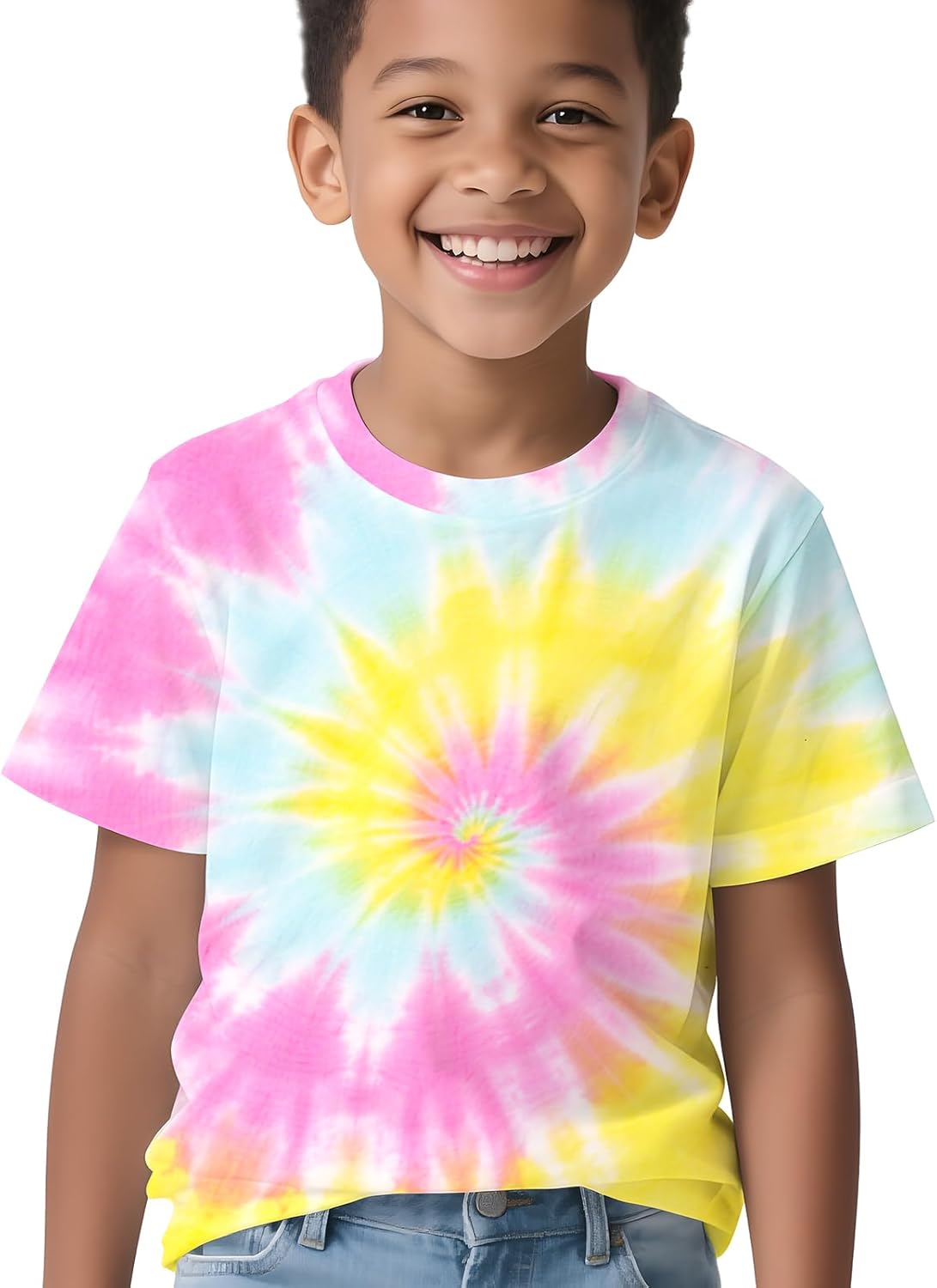 Brighten Up Your Child’s Wardrobe With Our Vibrant And Fun Tie Dye Shirts For Kids! Made From 100% High-Quality Polyester, These Colorful Tees Are Soft, Comfortable, And Designed To Last. Perfect For Boys And Girls, They’re Ideal For Casual Outings, Summer Fun, Or Any Activity That Calls For A Burst Of Color. The Eye-Catching Tie Dye Patterns Add A Unique Touch To Each Shirt, Making It A Stylish And Trendy Addition To Any Child’s Closet. Available In Various Sizes, These Shirts Are Perfect For Kids Who Love Expressing Themselves Through Fashion. Why Choose Our Tie Dye Shirts? High-Quality Polyester: Soft, Lightweight, And Breathable Fabric That’s Gentle On The Skin. Vibrant Tie Dye Designs: Although Tie-Dyed Clothes Can Be Made At Home, The Project Can Be Extremely Messy, So Purchasing A Pre-Made Shirt Is Appealing To Many Parents. Unisex Fit: Great For Both Boys And Girls Of All Ages. Durable And Easy To Care For: Machine Washable And Designed To Withstand Active Play And Multiple Washes. Perfect For Any Occasion: Whether It’S Daily Outfits, A Weekend Outing, Or A Family Vacation, These Shirts Are The Perfect Fit! Your Child Will Love The Comfort, Style, And Durability Of These Tie Dye Shirts – And You’ll Love How Easy They Are To Maintain. Grab Yours Today And Add A Splash Of Color To Your Little One’s Wardrobe!