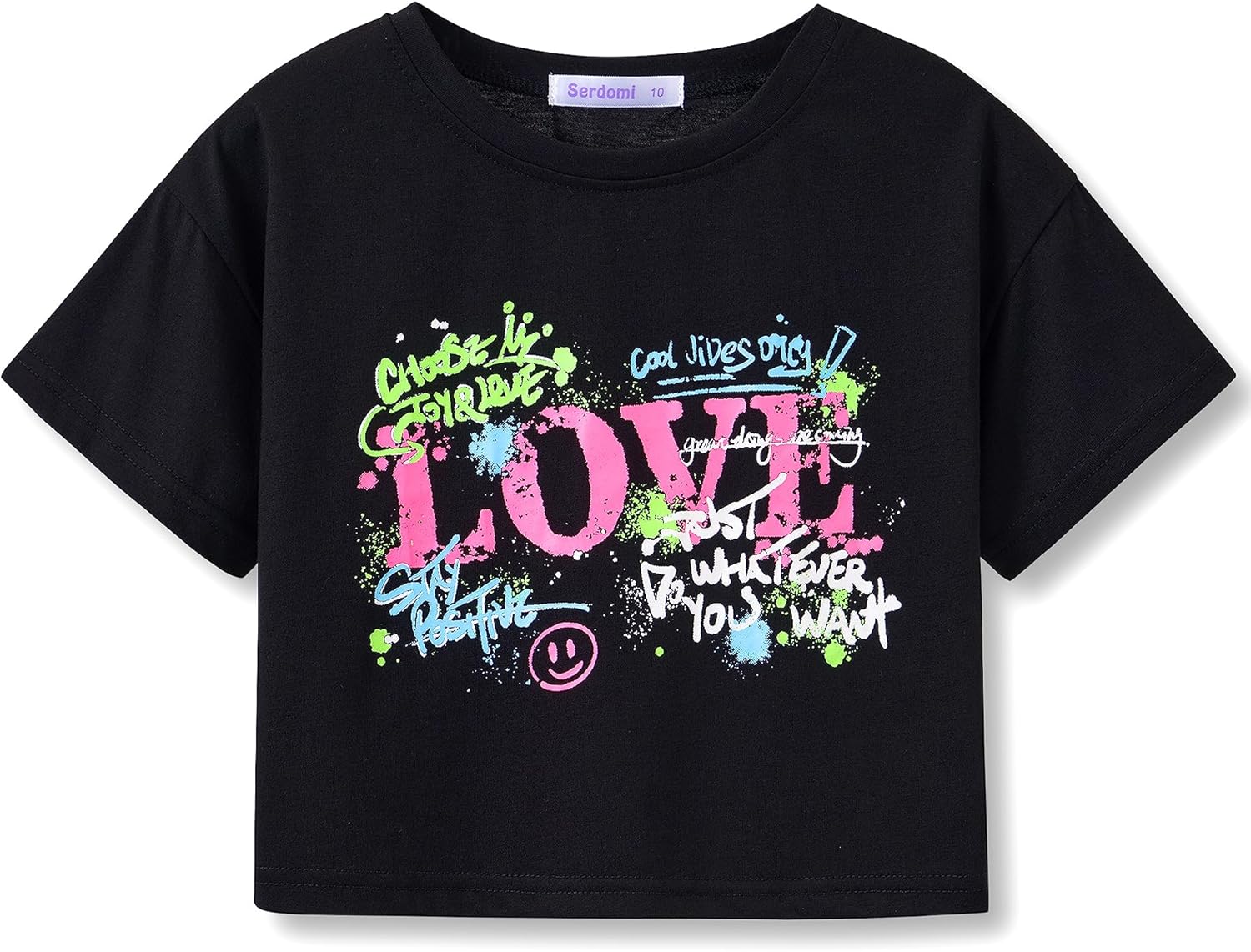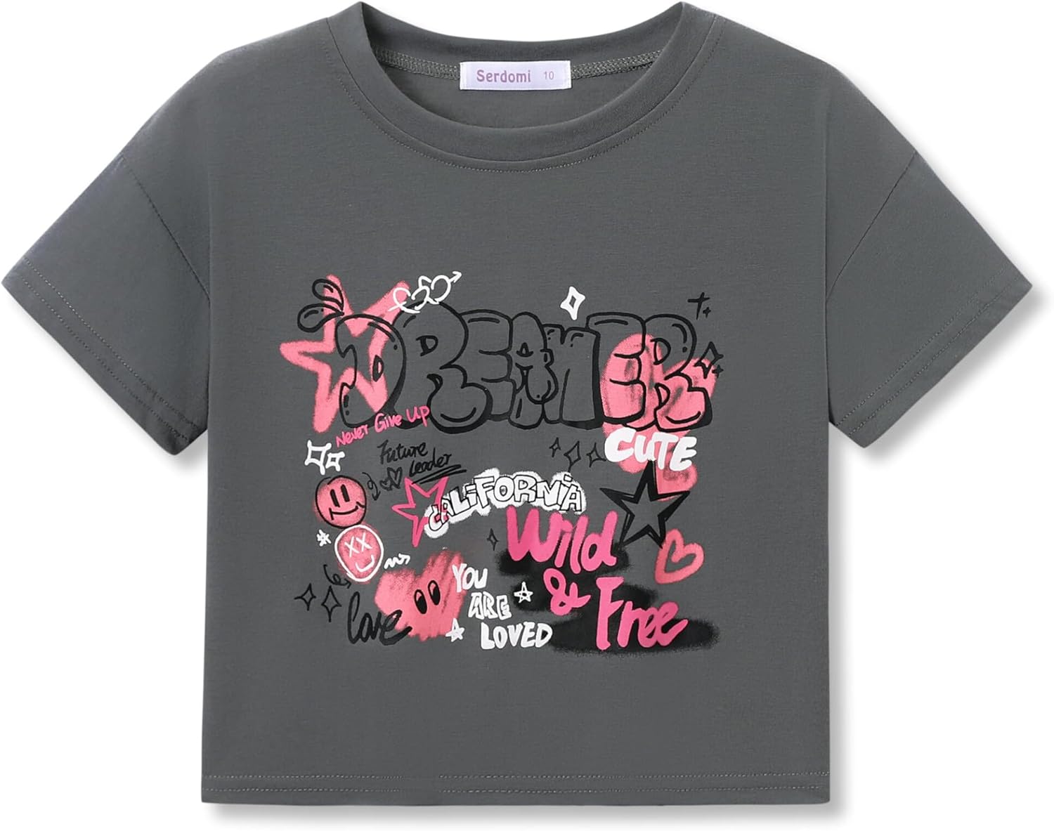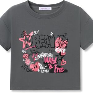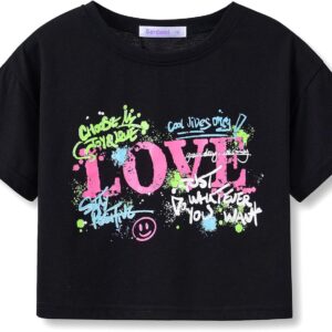 ![]() Serdomi Stylish Graffiti Graphic Crop Top for Girls -Cool Summer T-…
