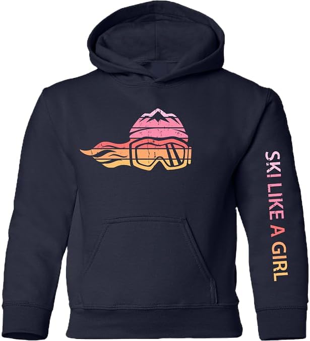 Introducing the Ski Like A Girl Retro Sunset Girls Hoodie, capturing the enchanting colors of winter sunsets with its warm gradient design. This cozy and stylish hoodie features our girl-empowering logo, inspiring young adventurers to embrace their love for the slopes. Perfect for staying warm and fashionable, it’s an ideal choice for après-ski gatherings or winter evening outings.