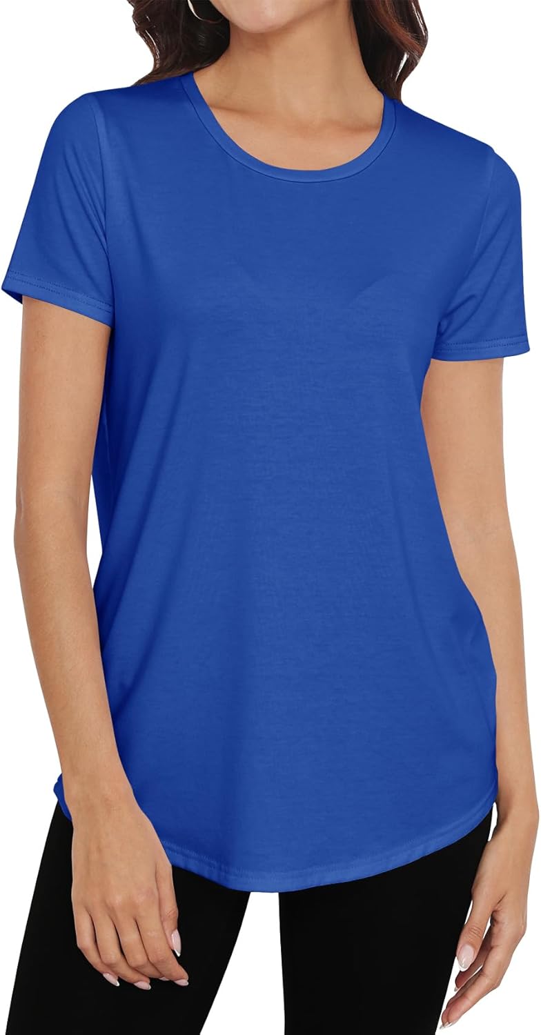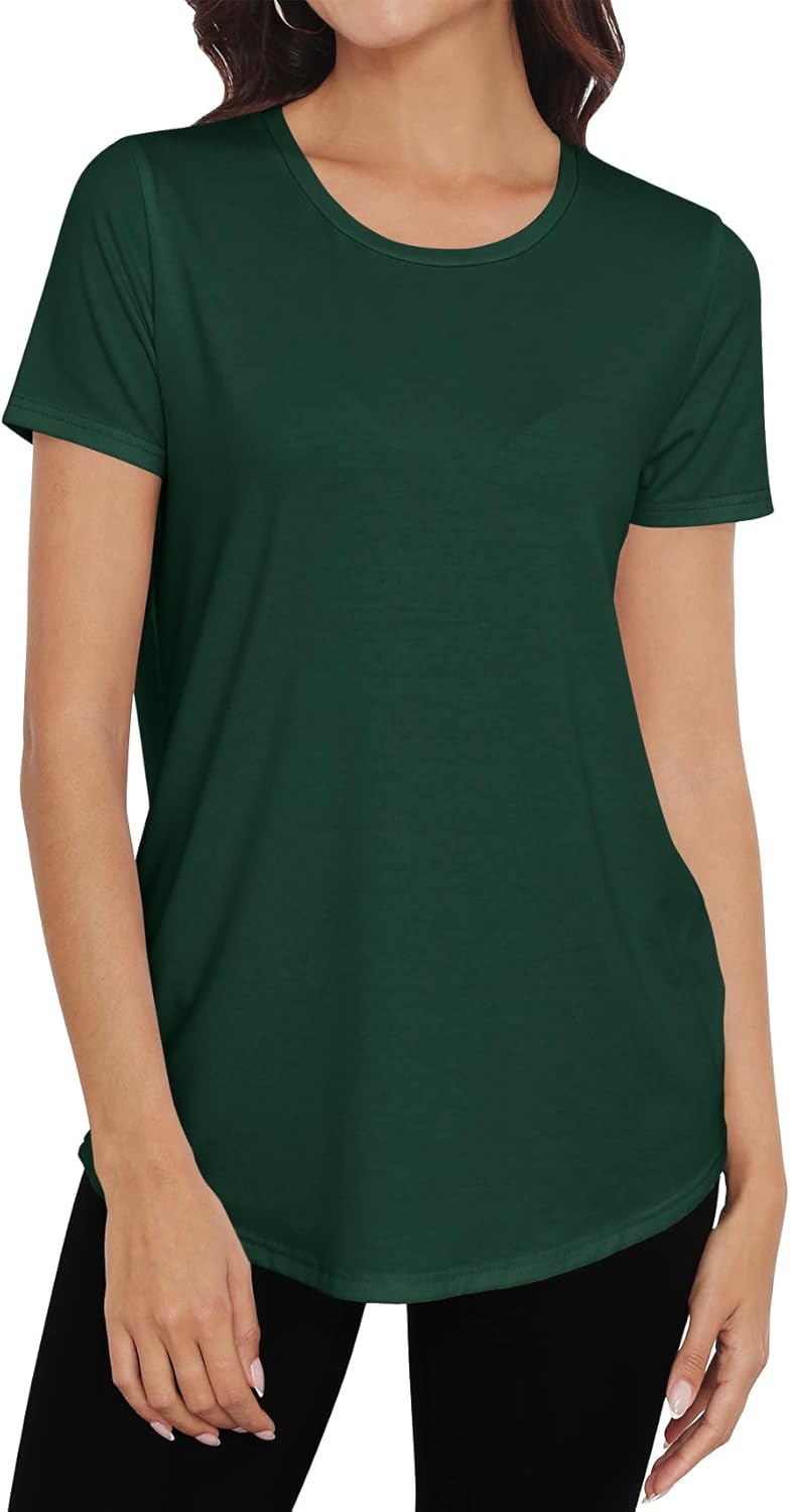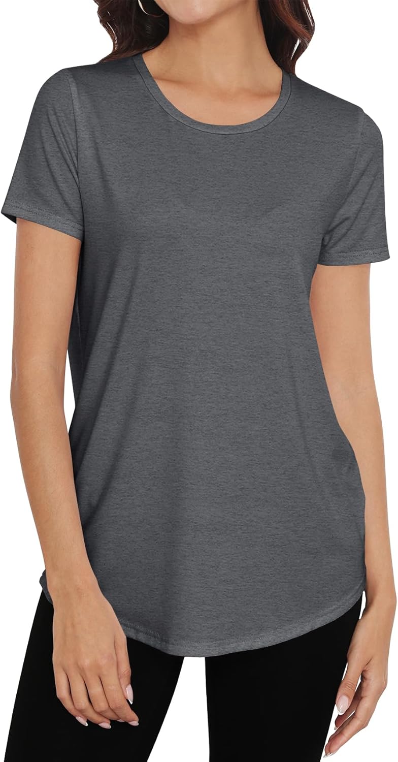 Smile Fish Women Crewneck Loose Fit Tunic Tops Short Sleeve Dressy Casual Summer Long Tee Shirts