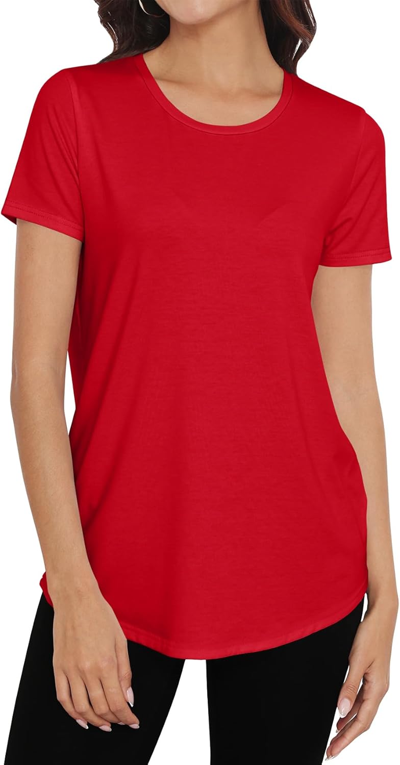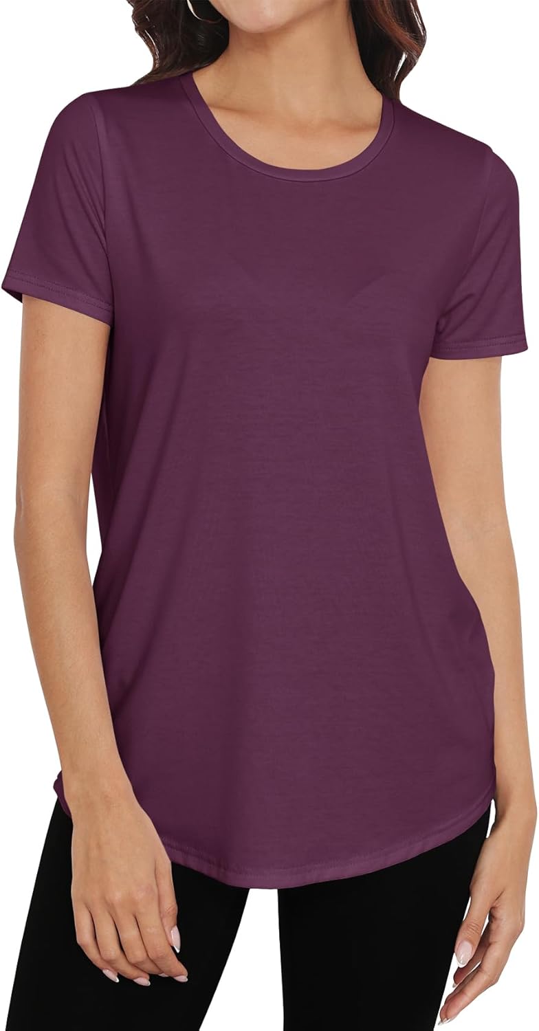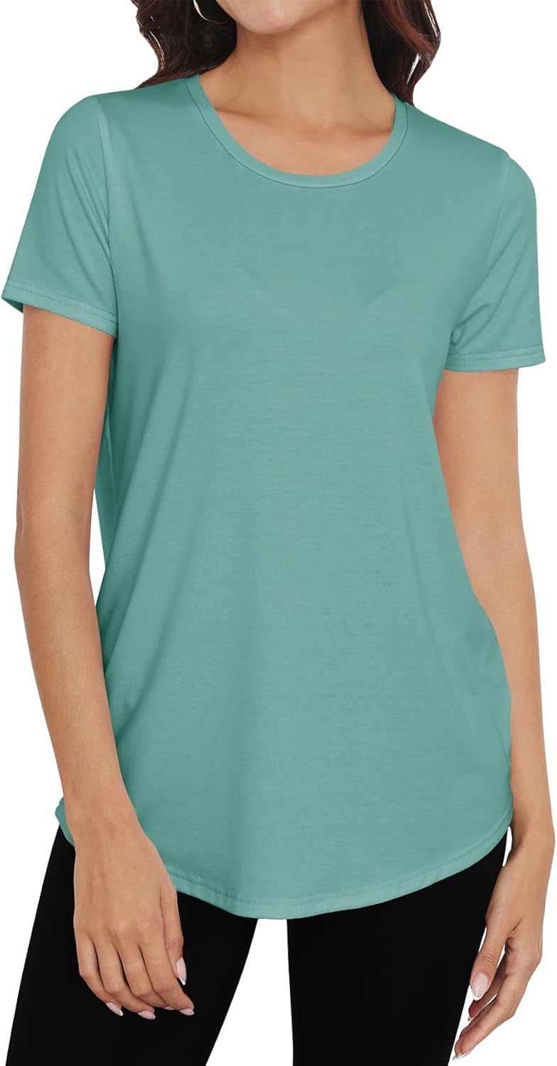 Smile Fish Women Crewneck Loose Fit Tunic Tops Short Sleeve Dressy Casual Summer Long Tee Shirts