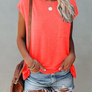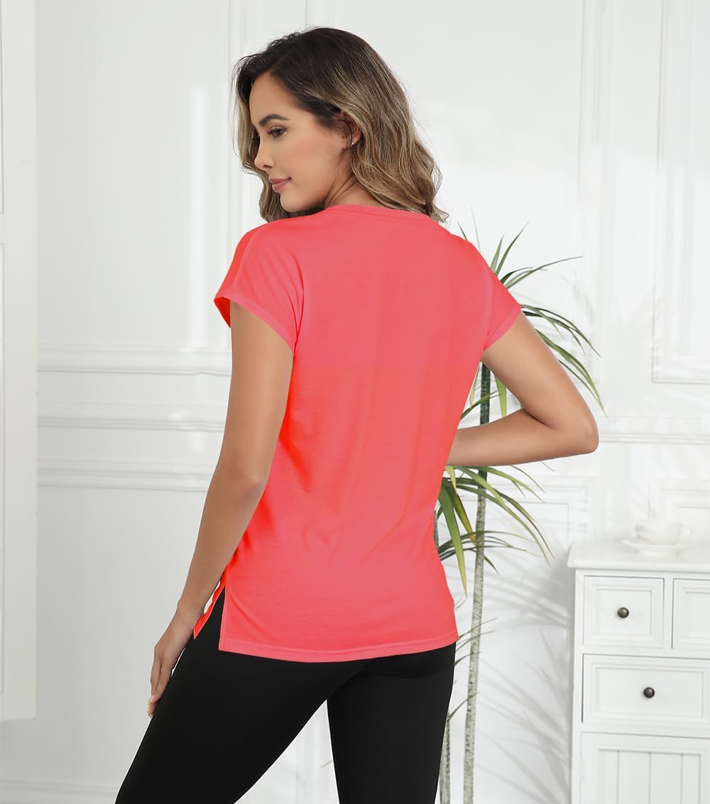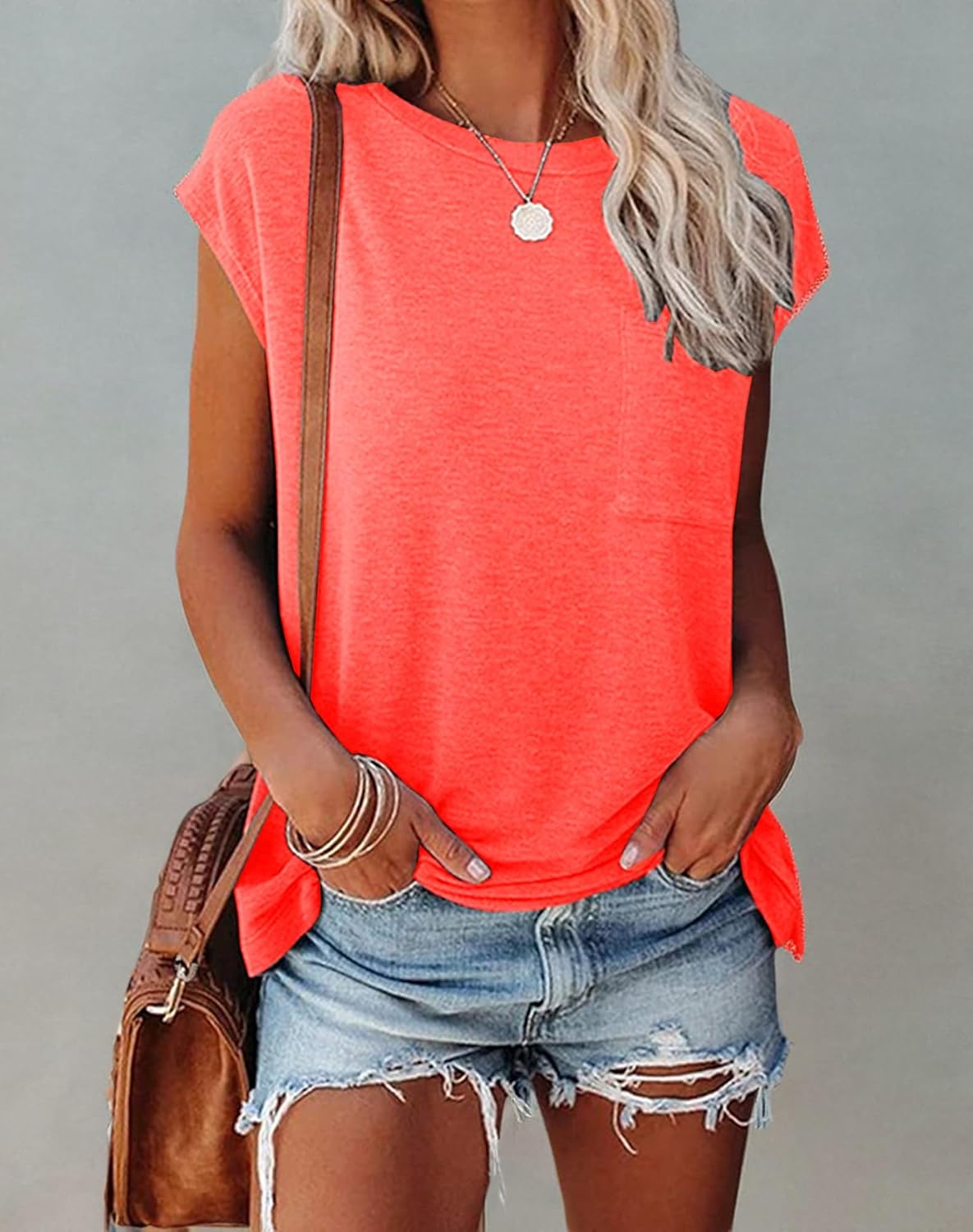 Smile Fish Womens Summer Short Cap Sleeve Shirts Solid Loose Fit Pocket Tunic Tops