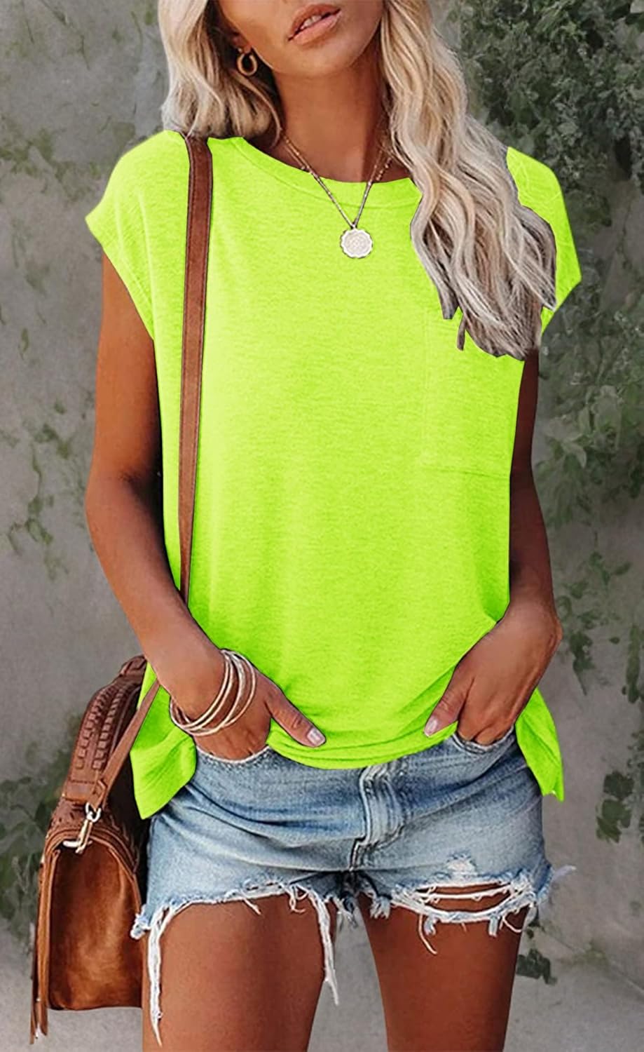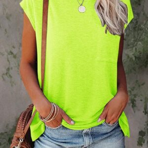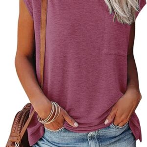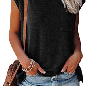 Smile Fish Womens Summer Short Cap Sleeve Shirts Solid Loose Fit Pocket Tunic Tops