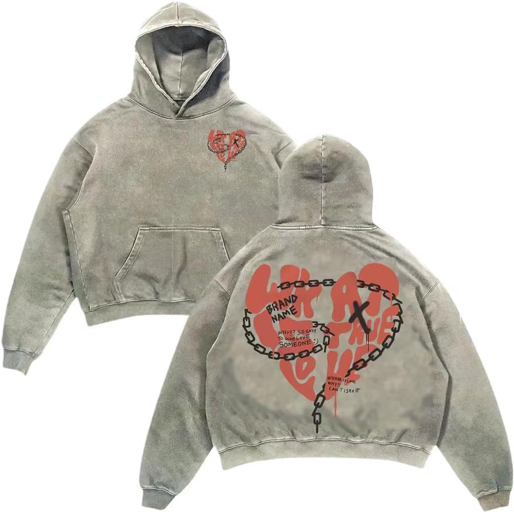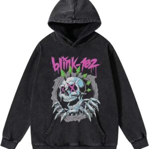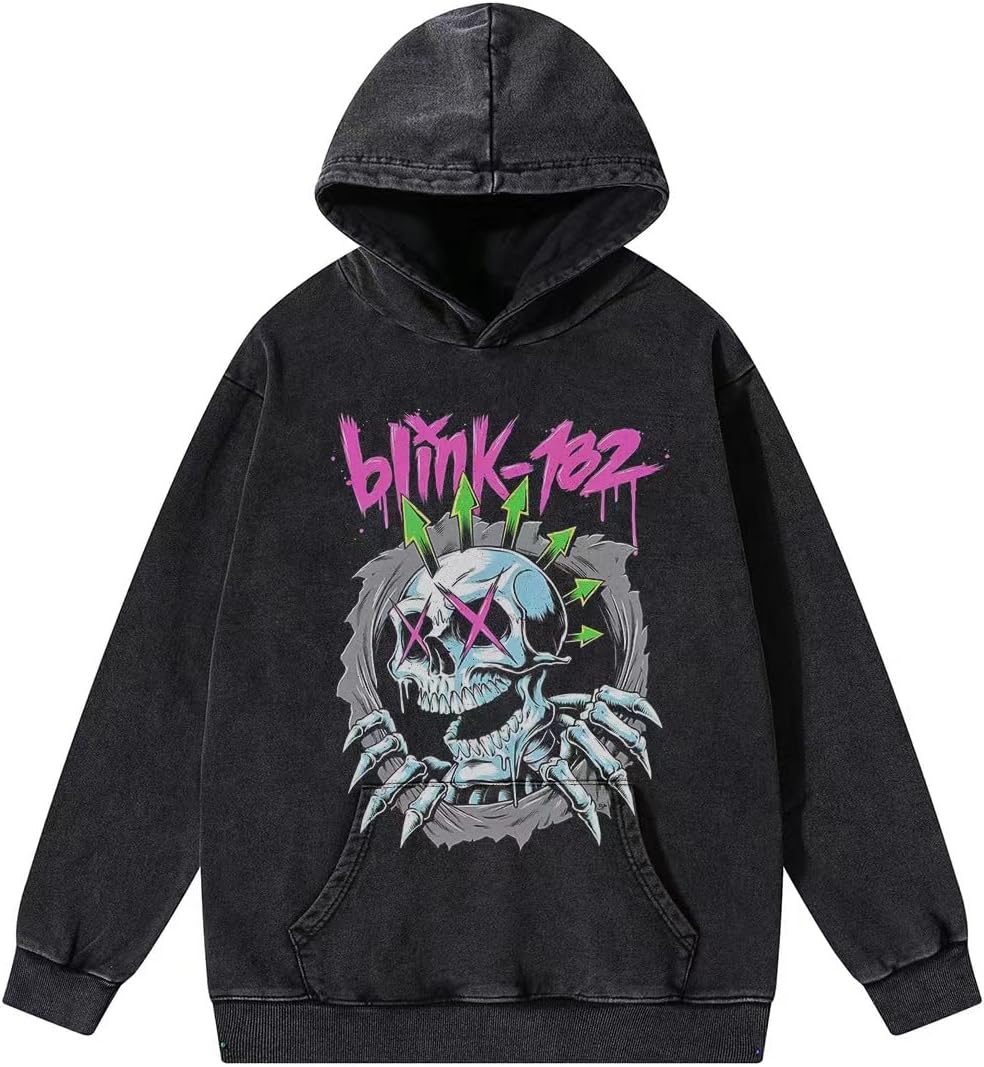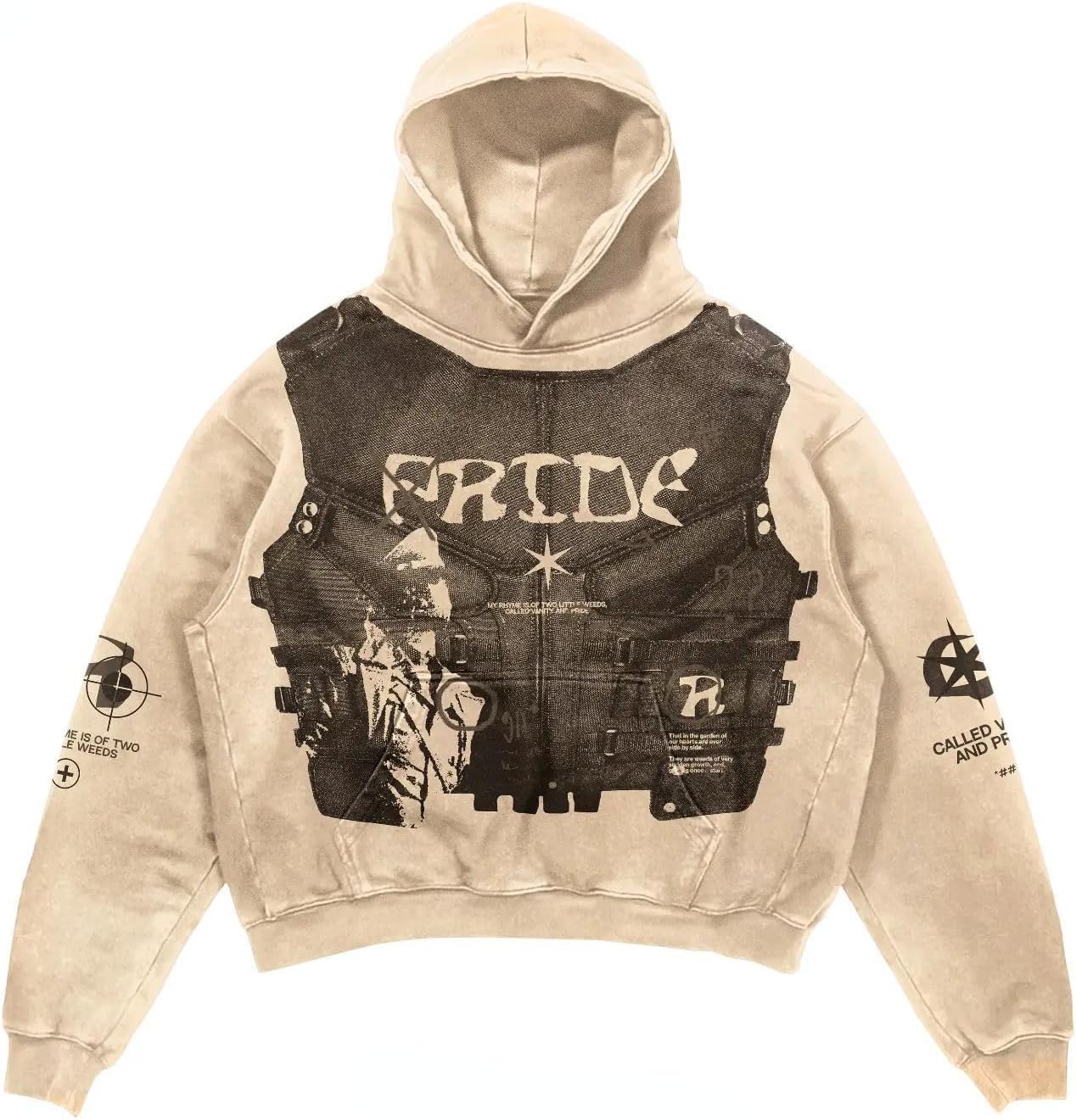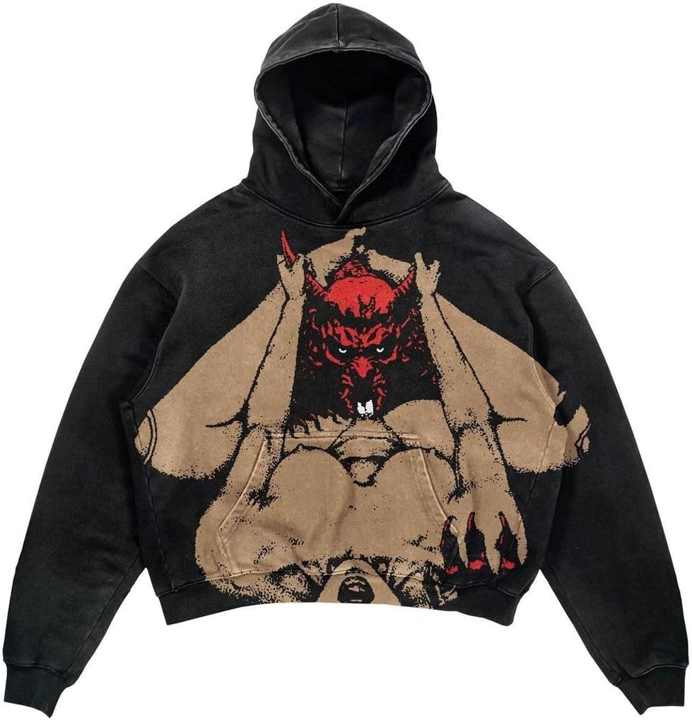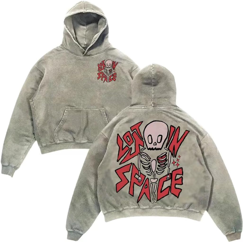 Sudiup Retro Y2K Hoodie Gothic Casual Alphabet Blast Print Pattern Skull Fashion Hoodie Men Harajuku Men Clothing