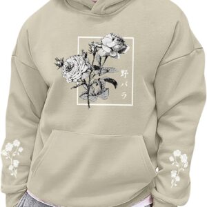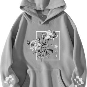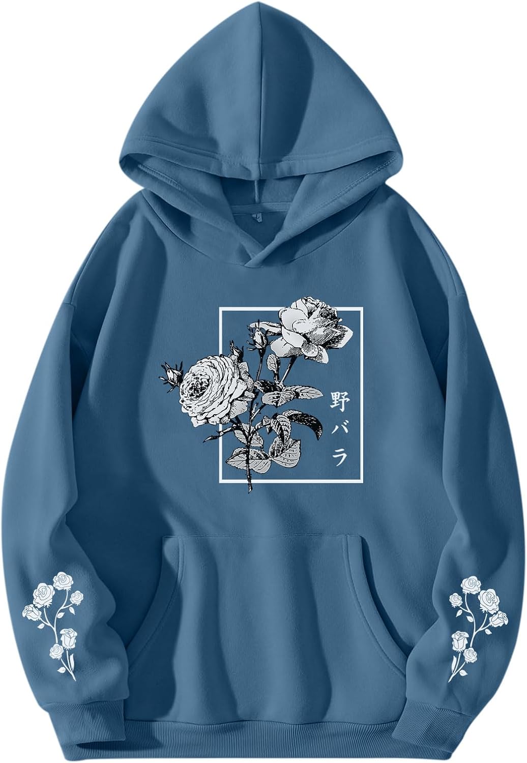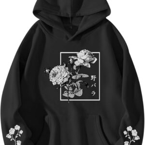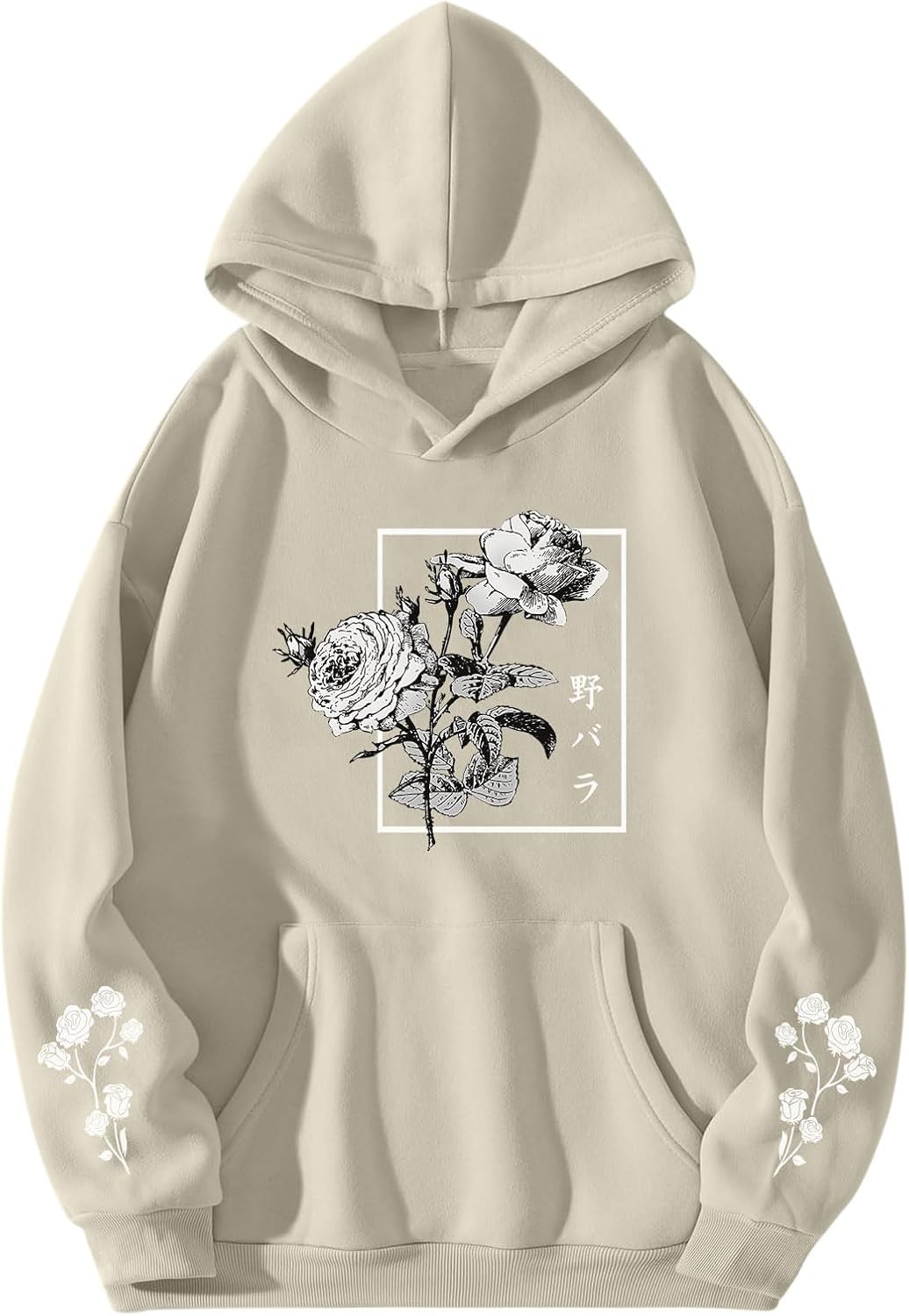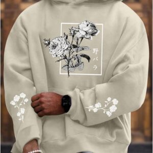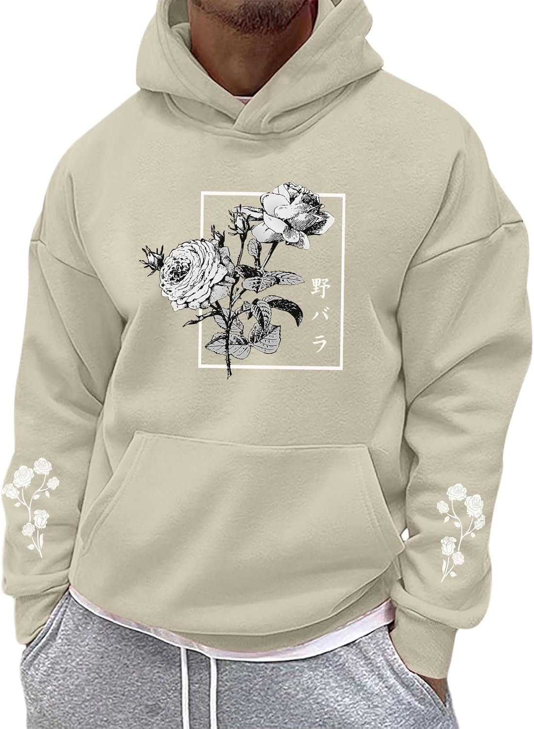 Sulayesh Rose Floral Graphic Hoodie for Men Aesthetic Japanese Cool Hoodies Oversized Trendy Streetwear Pullover Sweatshirt