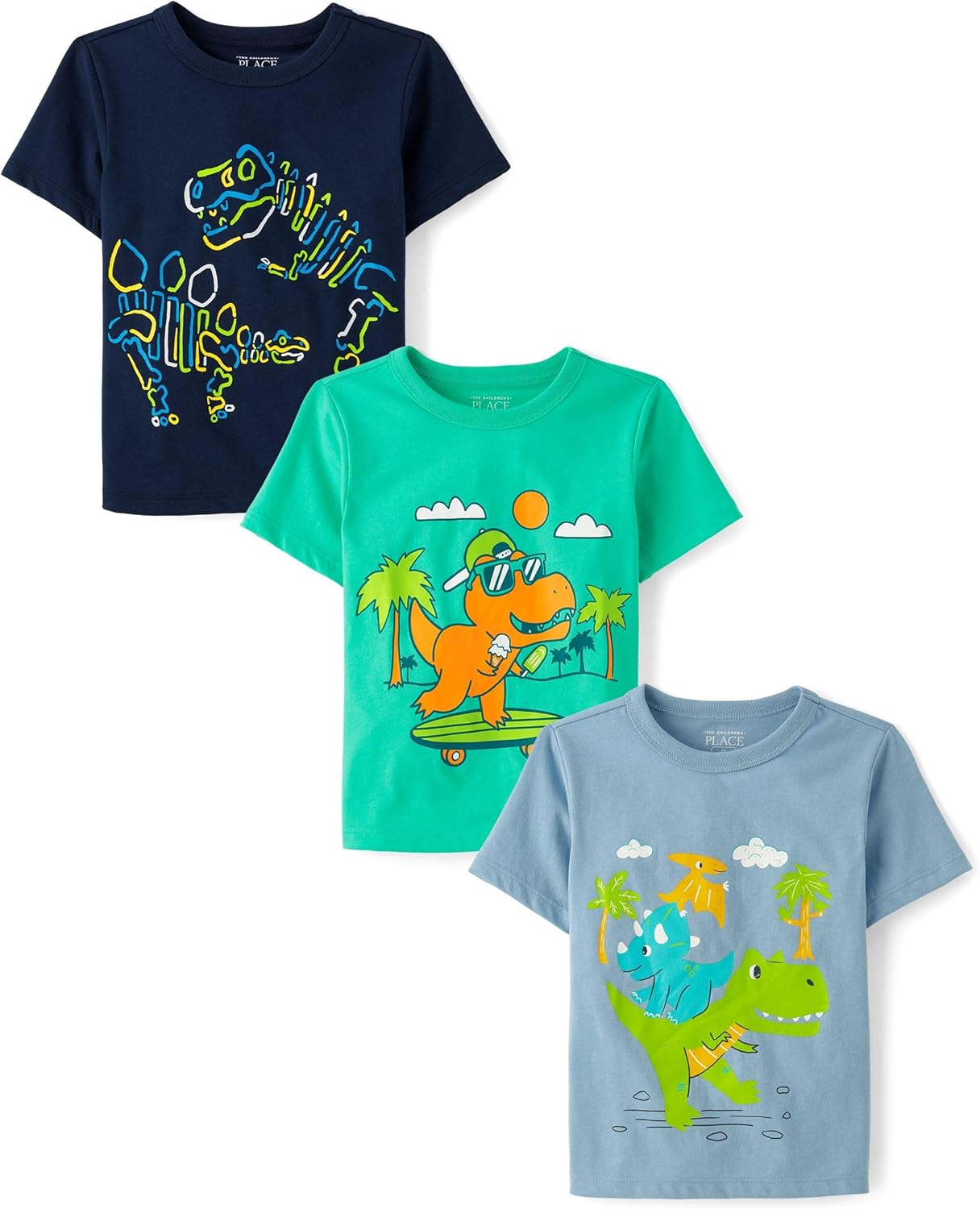 The Children’s Place Baby Boys’ and Toddler Dino Short Sleeve Graphic T-Shirts,multipacks