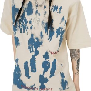 Vamtac Graphic Tees Men Vintage Oversized Y2K Graffiti Print Summer Short Sleeve Streetwear T Shirts for Women