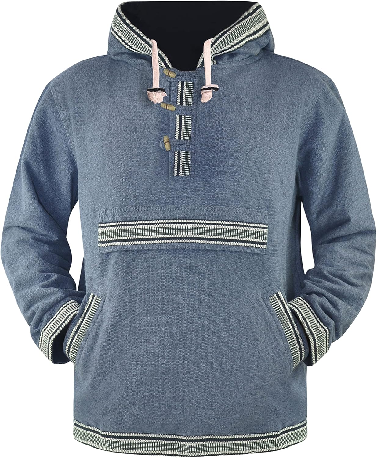 This range of Baja hoodie designs are made from 100% cotton. The fabric of this drug rug hoodie men has a thicker 100% canvas cotton which has been densely woven along the outside. Thinner 100% cotton material on the inside. Perfect for a hike up your favorite mountain!. The Aztec hoodie have a big, comfortable hood, high quality cotton lining, 1 front zipper pocket & 2 side pocket features. For ultimate comfort, these Baja Hoodies have drawstring adjustable waist and a large hoodie feature, which allows you the freedom you need feel cosy and confident in every adventure.